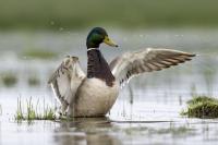 Mallards can be found in almost every water reservoir in our country, from large lakes to little urban channels, water ponds. In ponds in urban areas, especially in winter, they come near you keeping themselves just at your fingertips, when being fed. Speaking of feeding water birds, it ought to be remembered that birds shouldn't be given leftover bread or rolls, etc. That’s for several reasons. Firstly, for the fact that such food is harmful for them. The ingredients contained in our bakery products destroy birds’ livers and are not their natural food. If you want to feed them, a good alternative would be seeds which are healthy for them, but unfortunately you will have to buy some extra (corn, grain). Secondly, feeding birds with leftover bead for a longer time, has a devastating impact on the water reservoir, causing its degradation. Phosphorus contained in bakery products in the spring will be ideal breeding ground for algal blooms, which colonies will make the water “sticky-green”. Consequently, the water will become untransparent. Aquatic plants, deprived of light, will start to die, not producing life-giving oxygen that is necessary for the other inhabitants of the reservoir. The process of decaying initiated this way will fill the reservoir with hydrogen sulfide. These are, in short, the effects of uncontrolled bird feeding, whose final effect will be degradation of the reservoir and depriving animals of their natural habitat. Untreated wastewater discharges into the natural environment, which have taken place during the past years, adding even a greater amount of phosphorus-containing compounds into the environment, which, in various ways, get into Polish lakes, have lead to the situation, where majority of these water reservoirs need reclamation works or at least taking some preventive measures to stop lake degradation. That’s just a little digression when speaking of bird feeding. Going back to the mallard and its size, it has a wingspan of about a meter, and a weight not exceeding 1.5 kg.
