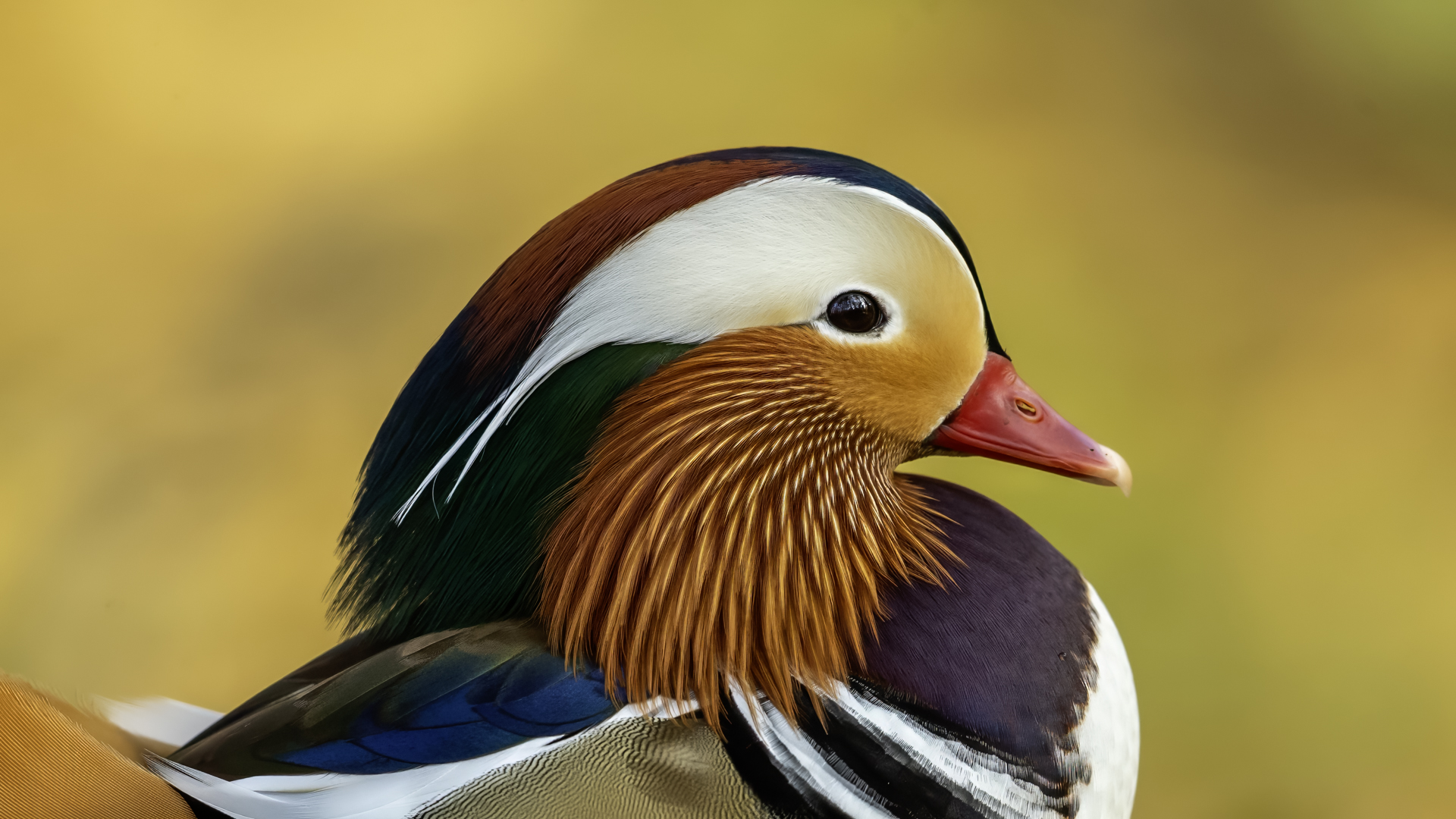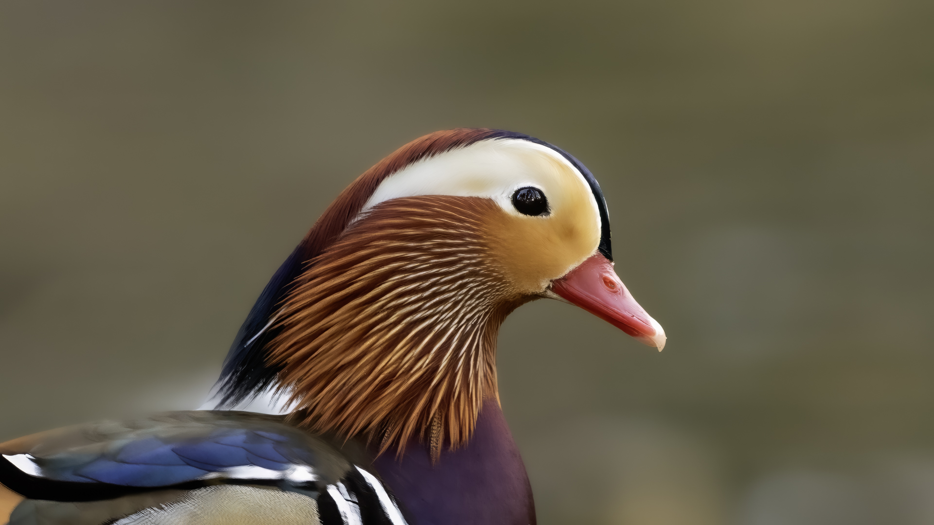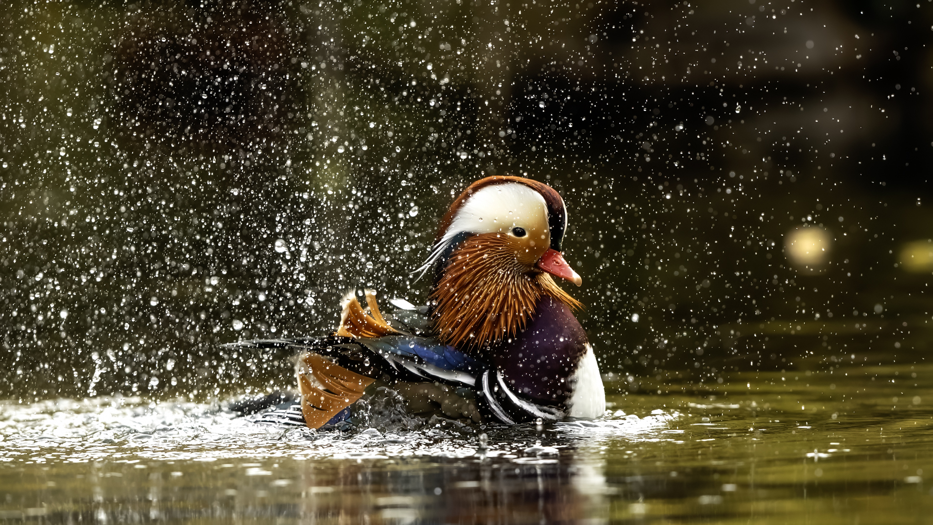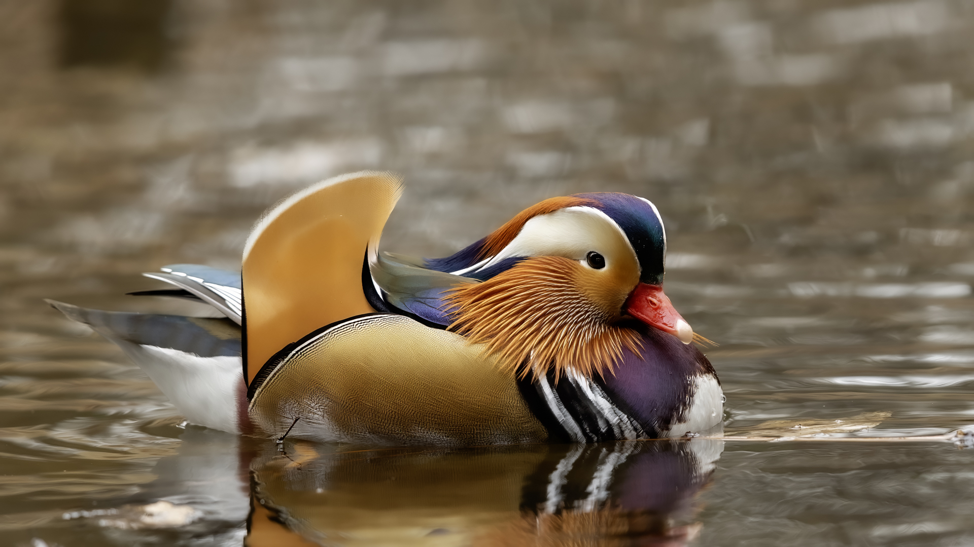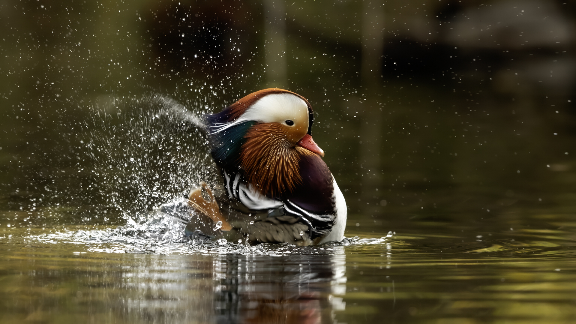 The mandarin duck does not belong to the group of our native species. Taking so many photos of this colorful bird in our country is perhaps possible only in the Royal Lazienki Gardens in Warsaw. Although they are fed in winter, and the hosts of the park do not let water freeze, the ducks are free and half-wild. An interesting thing is that the mandarin duck is an arboreal duck. This means that it nests in tree hollows, sometimes at the height of a dozen plus meters. This is significant as the young in less than one day after hatching must jump from such a great height and get to water to have their first meal. It’s the mother duck that strongly urges them to perform this first and seemingly daredevil jump. Mandarin ducks reportedly came to Łazienki Park all by themselves, and their population is still increasing. They are undoubtedly a true adornment of our parks, although their natural place of occurrence is Eastern Asia (China and Japan). The mandarin duck is a medium-sized duck. It has a weight of about 0.5 kg, and a wingspan of about 70 cm.