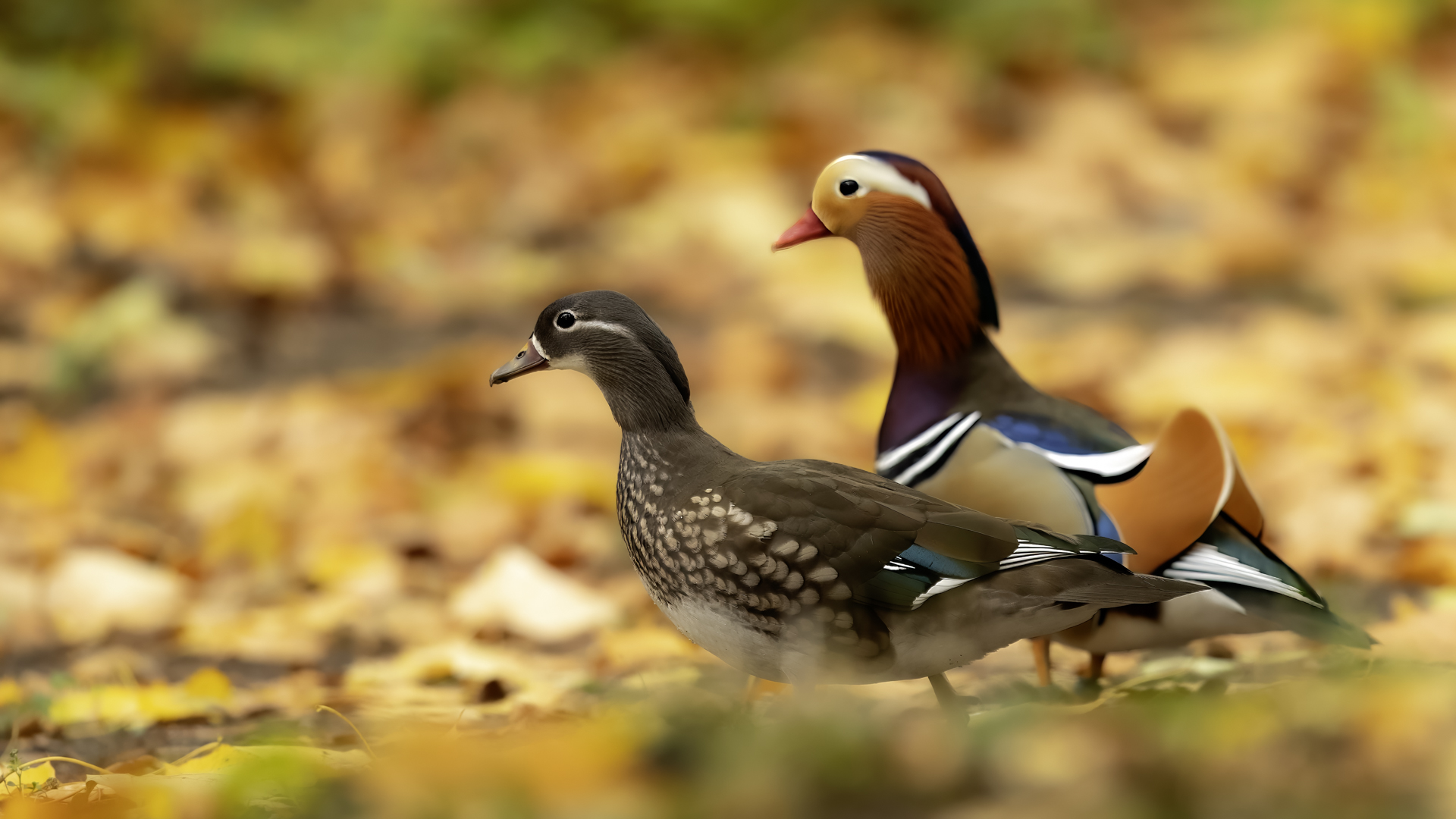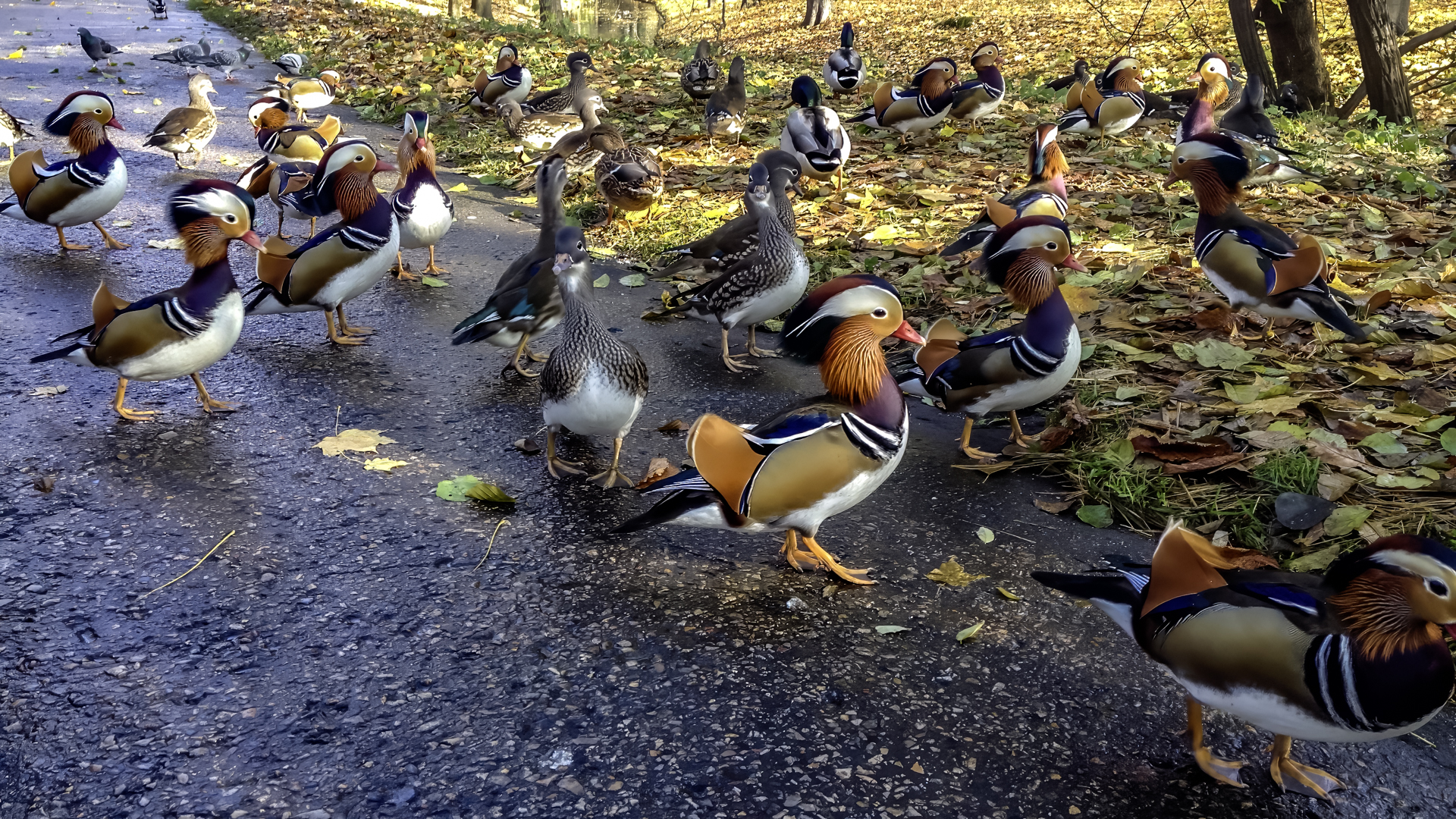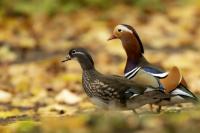 Autumn visit to Łazienki Park (Warsaw's Royal Baths) resulted in creating the gallery of a new species on my website – the Wood Duck and in rebuilding the existing gallery of the Mandarin Duck. First photos of the duck were taken in winter 2012. I came back after almost a year and I noticed some changes. The first was that the mandarins were more daring and the whole flock was coming up to people. The second, that their number increased. Who knows, if the conditions suit them so that it is no problem for them to raise their offspring without any interference, they will become a decoration of the park not only in Warsaw Royal Baths but also on other water bodies. I think that there is a slow progress in their expansion. In winter 2012 when I was in the ZOO in Poznan I saw a couple of mandarins on a large external reservoirs. On one of them water was not frozen and there I saw the Mandarin Ducks. For sure I'll check if they are there in winter 2013/14. Anyway, the autumn light conditions, golden color of environment had impact on creating a number of portraits of these beautiful filigree ducks, that were added to my gallery. This time there were so many ducks that it was difficult to find clear frame. Mandarins due to their coloration, behavior, belong to the species to which we are happy to return in the open air sessions. The same applies to me, and since finding them in the Warsaw’s park is no problem at all, the gallery will be developing. Who knows, maybe the next pictures will show the population from Wielkopolska.