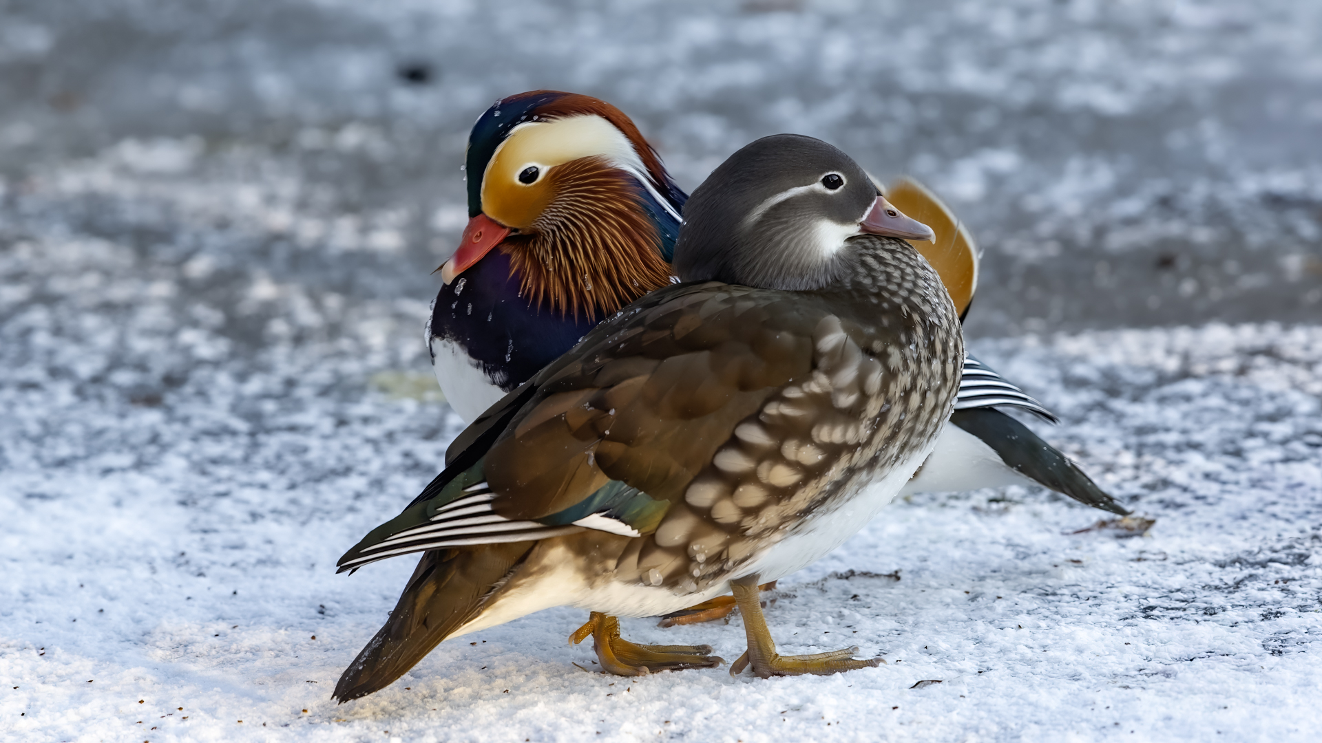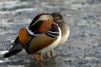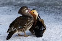 In February this year, being on a winter walk in the New Zoo in Poznań, I had the pleasure to observe couple of Mandarin Ducks in the biggest pond of the garden, on the unfrozen part. Therefore, the first commentary to this species got a little old and the invasion of the new species progresses. In my opinion, it's a shame, that it takes so long. As there is no other duck in the world which would be so colorful and its behavior and size do not indicate that it could have any radical influence on our ecosystem. I think it will turn out as with Common Kingfishers. If there are severe winters which cause the waters to freeze then a significant part of the species can not survive in them. All hope then lies in the big city parks, zoos, where preventing the ponds from freezing and feeding will guarantee their survival. It is interesting that although the winter isn't severe, there was a White-tailed Eagle flying aroung tens of meters above my head and Grey Herons, Tufted Ducks and Eurasian Coots were in the pond. Such a predator in almost urban area is quite unusual, especially, that Warta and many neighbouring lakes were not frozen. Is that a sign of the assimilation of the species?