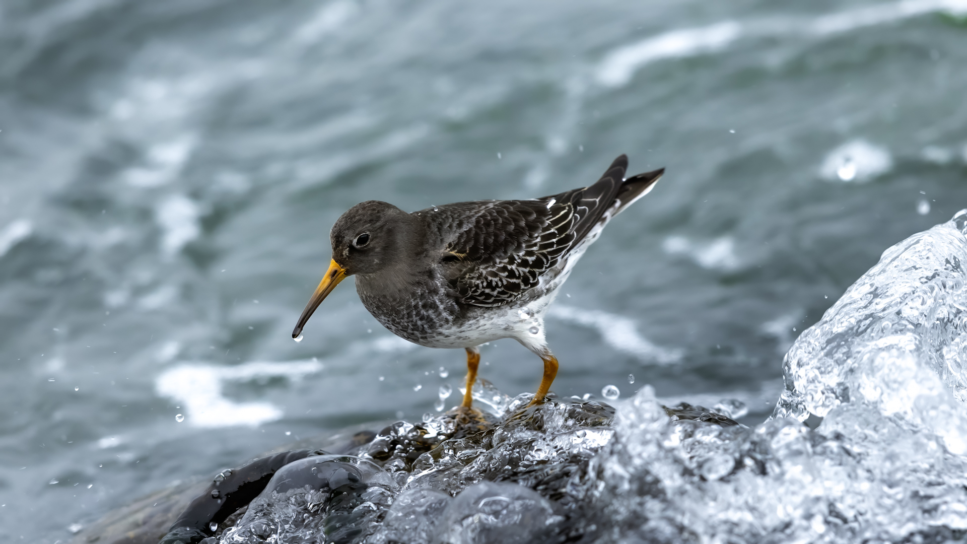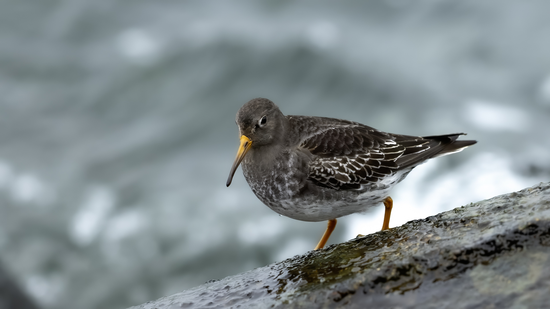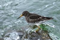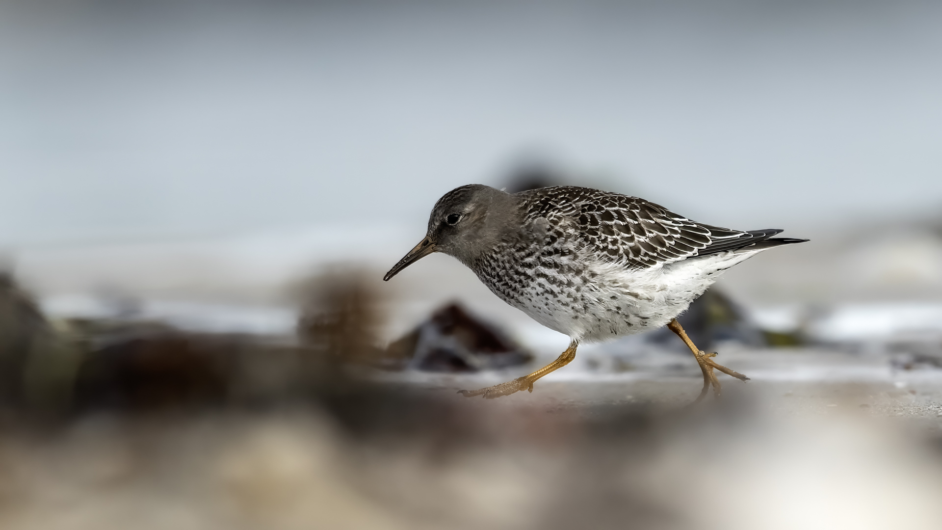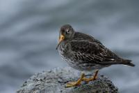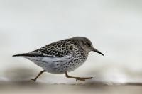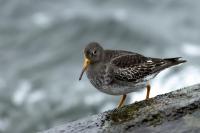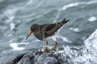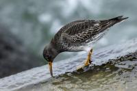 Another winter expedition in the Bay of Puck area resulted in creating the gallery of new species, including the Purple Sandpiper. Was it really winter expedition? Although there are a few days left until the New Year comes, but the temperature was above zero all the time, what was quite peculiar for this time of year and more typical for spring. The wind was strong, so strong that it was better not to leave alone a tripod with a telephoto lens. Walking towards the breakwater on the Hel we met a soul-mate - ornithologist with an observation telescope. He, with a smile on his face, immediately informed us that on the breakwater he had spotted two purple sandpipers. The distance was too long to take satisfactory photos, but I have already created the first documentary image. We went to the breakwater and much to our delight sandpipers did not care about our presence. By reducing the distance from several tens to 5-8 meters the quality of pictures changed radically. Sandpipers feed on tiny invertebrates that live at the shore or just on concrete breakwaters. I wish I could take the pictures in this first scene, because the effect of colorful sand particles would intensify aesthetic impression even much more (see the sanderling’s gallery). But I do not want to be fretful, as purple sandpipers are among the birds which come flying to our country in very small number. They live in northern Europe, the coast of Greenland and North America, and northern Siberia. Purple sandpiper’s weight is about 100 grams, with a wingspan of about 40 centimeters. They penetrated very carefully the recesses of the breakwater fortifications, in search of food. Every now and then they jumped from one piece of the bank fortifications to another. Unfortunately, it was not always convenient to take pictures. I managed to take several interesting shots, especially when waves hit on the breakwater and splashed water around sandpipers. Taking into account that this is an opening gallery and that this species occurs so rarely in Poland, the result, at least to me, is very satisfying. It also should be said that this is already the fifth species of sandpiper published in my gallery. There are so many photos that they probably reflect the nature of environment in which this species occurs and its behavior, what is always important to me when animals are presented. Ok, let’s stop talking, I invite you to the gallery.