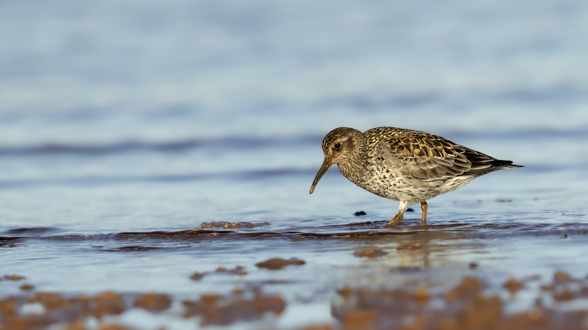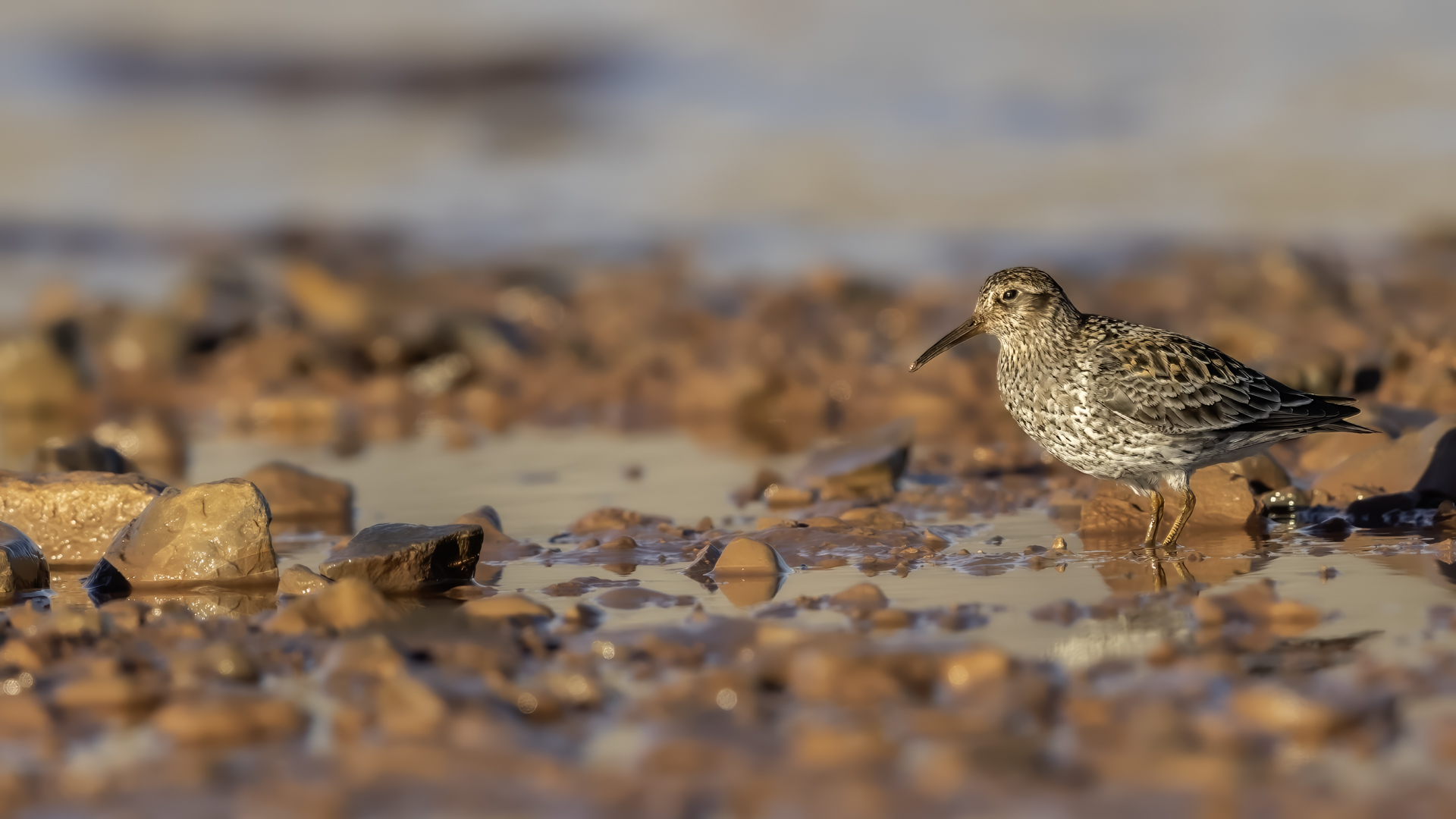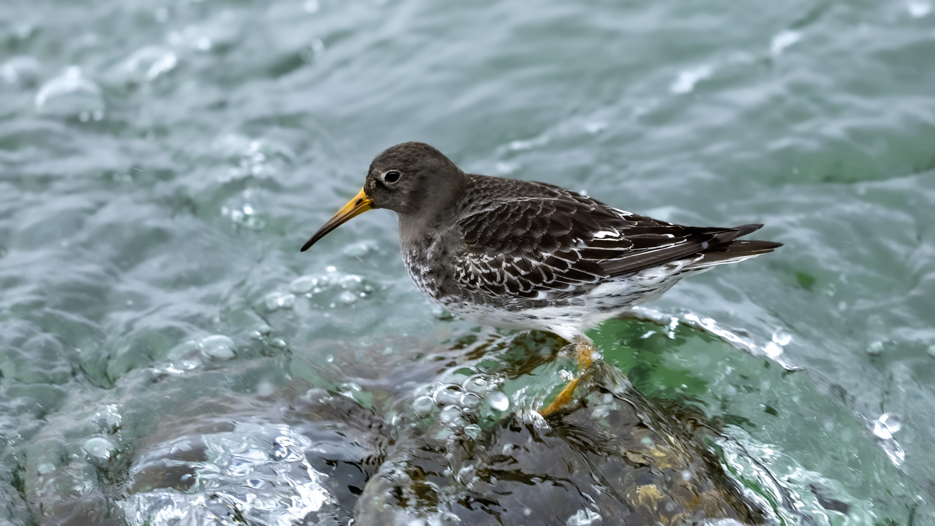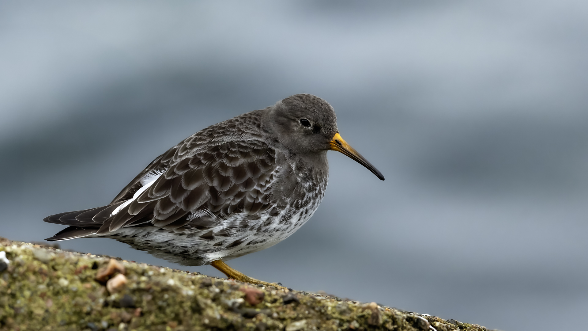 Another winter expedition in the Bay of Puck area resulted in creating the gallery of new species, including the Purple Sandpiper. Was it really winter expedition? Although there are a few days left until the New Year comes, but the temperature was above zero all the time, what was quite peculiar for this time of year and more typical for spring. The wind was strong, so strong that it was better not to leave alone a tripod with a telephoto lens. Walking towards the breakwater on the Hel we met a soul-mate - ornithologist with an observation telescope. He, with a smile on his face, immediately informed us that on the breakwater he had spotted two purple sandpipers. The distance was too long to take satisfactory photos, but I have already created the first documentary image. We went to the breakwater and much to our delight sandpipers did not care about our presence. By reducing the distance from several tens to 5-8 meters the quality of pictures changed radically. Sandpipers feed on tiny invertebrates that live at the shore or just on concrete breakwaters. I wish I could take the pictures in this first scene, because the effect of colorful sand particles would intensify aesthetic impression even much more (see the sanderling’s gallery). But I do not want to be fretful, as purple sandpipers are among the birds which come flying to our country in very small number. They live in northern Europe, the coast of Greenland and North America, and northern Siberia. Purple sandpiper’s weight is about 100 grams, with a wingspan of about 40 centimeters. They penetrated very carefully the recesses of the breakwater fortifications, in search of food. Every now and then they jumped from one piece of the bank fortifications to another. Unfortunately, it was not always convenient to take pictures. I managed to take several interesting shots, especially when waves hit on the breakwater and splashed water around sandpipers. Taking into account that this is an opening gallery and that this species occurs so rarely in Poland, the result, at least to me, is very satisfying. It also should be said that this is already the fifth species of sandpiper published in my gallery. There are so many photos that they probably reflect the nature of environment in which this species occurs and its behavior, what is always important to me when animals are presented. Ok, let’s stop talking, I invite you to the gallery.