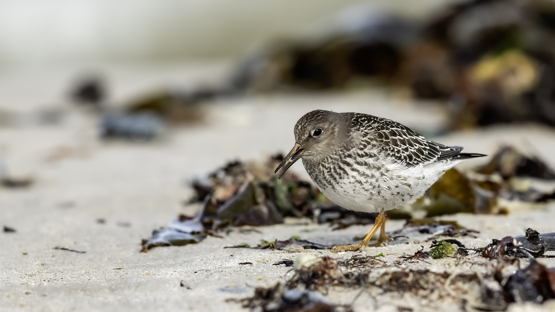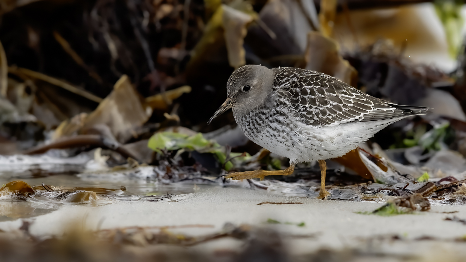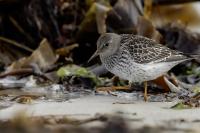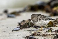 When I was at the seaside, on my way to a place where I was going to photograph seals, I stopped for a moment and took some photos of the purple sandpiper and the common ringed plover feeding among all those bits and pieces which the sea had thrown out to the beach. That was my only encounter with these birds in Iceland. The photos in the startup gallery of this species show birds sitting on a breakwater, so the pictures taken later, on a colorful, sandy beach introduce a new, interesting variety to the previous gallery.