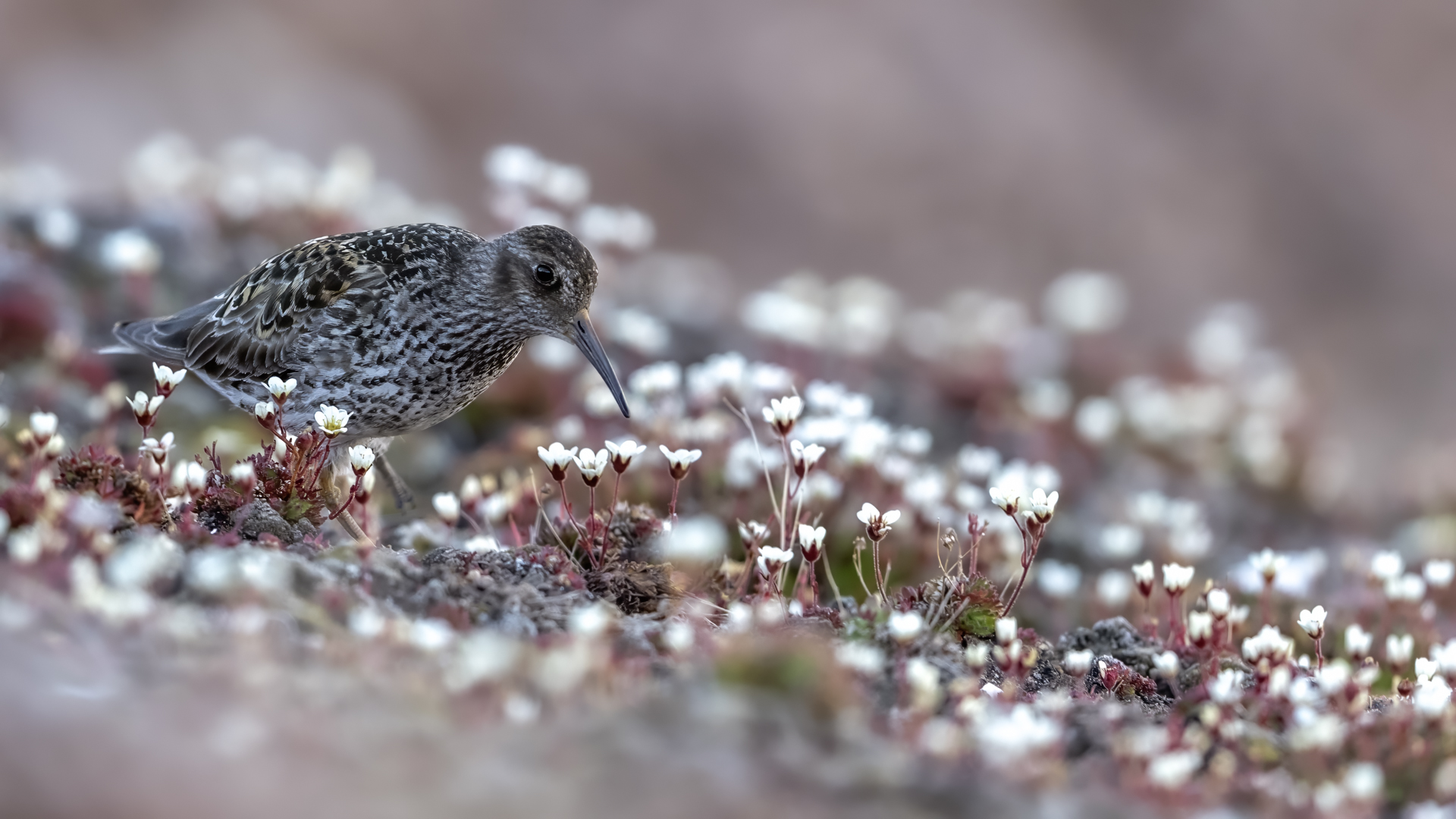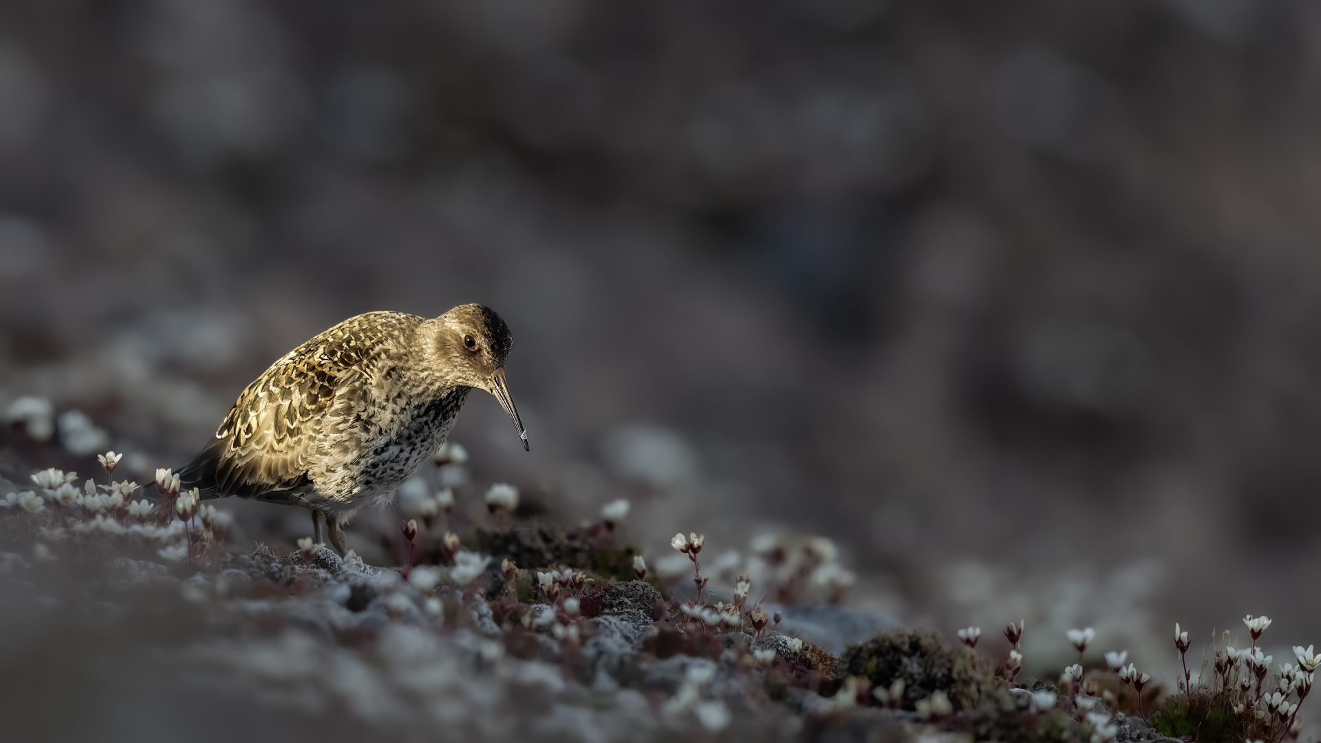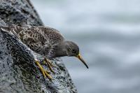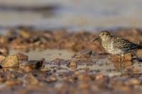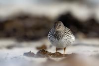 Apart from the dunlin it is the most common sandpiper in Svalbard. It was a big surprise for me, because I hoped that among other birds feeding on the seashore there would be other species in such a place - and there we had nothing more! When on an uninhabited island we were looking for the thick-billed murre colony, a purple sandpiper took off from beneath our feet. The bird did not move too far, it ruffled up its feathers and moved slowly as if it pretended to be wounded. We already knew why it was like that. We frightened the bird away from the nest where a young purple sandpiper had just born. It was yet in an eggshell. Unfortunately, there were no photos from this watching, because it was only a few degrees above zero and it was raining. We quickly moved away, and then the caring parent returned to the nest as soon as we departed for several meters.