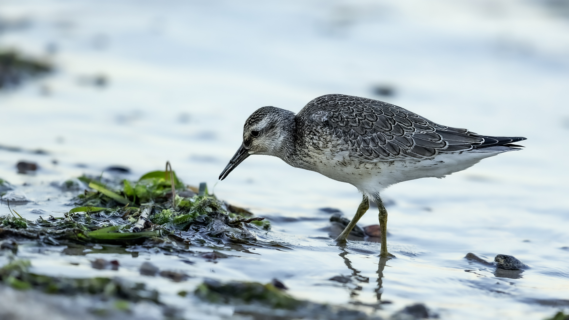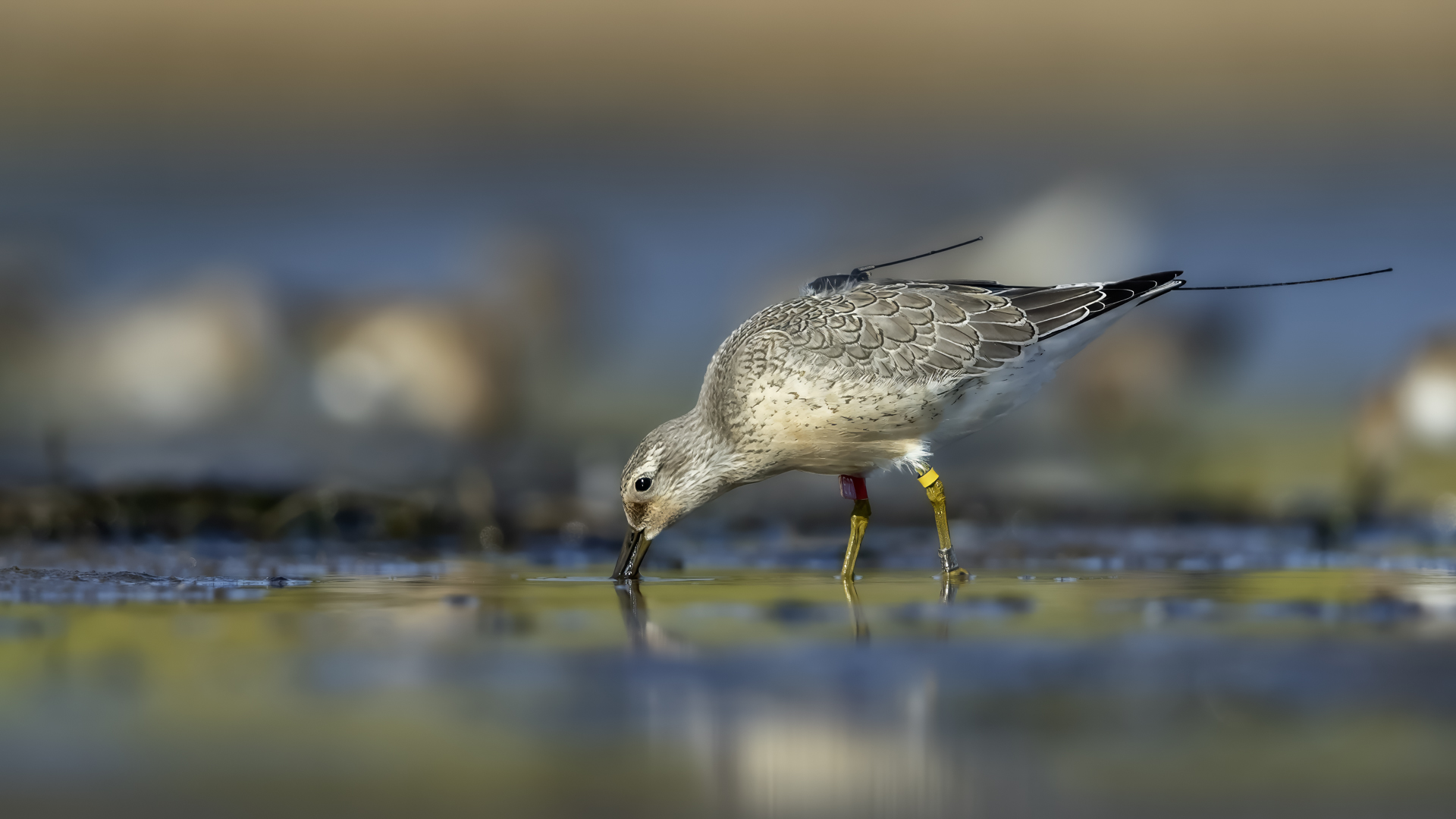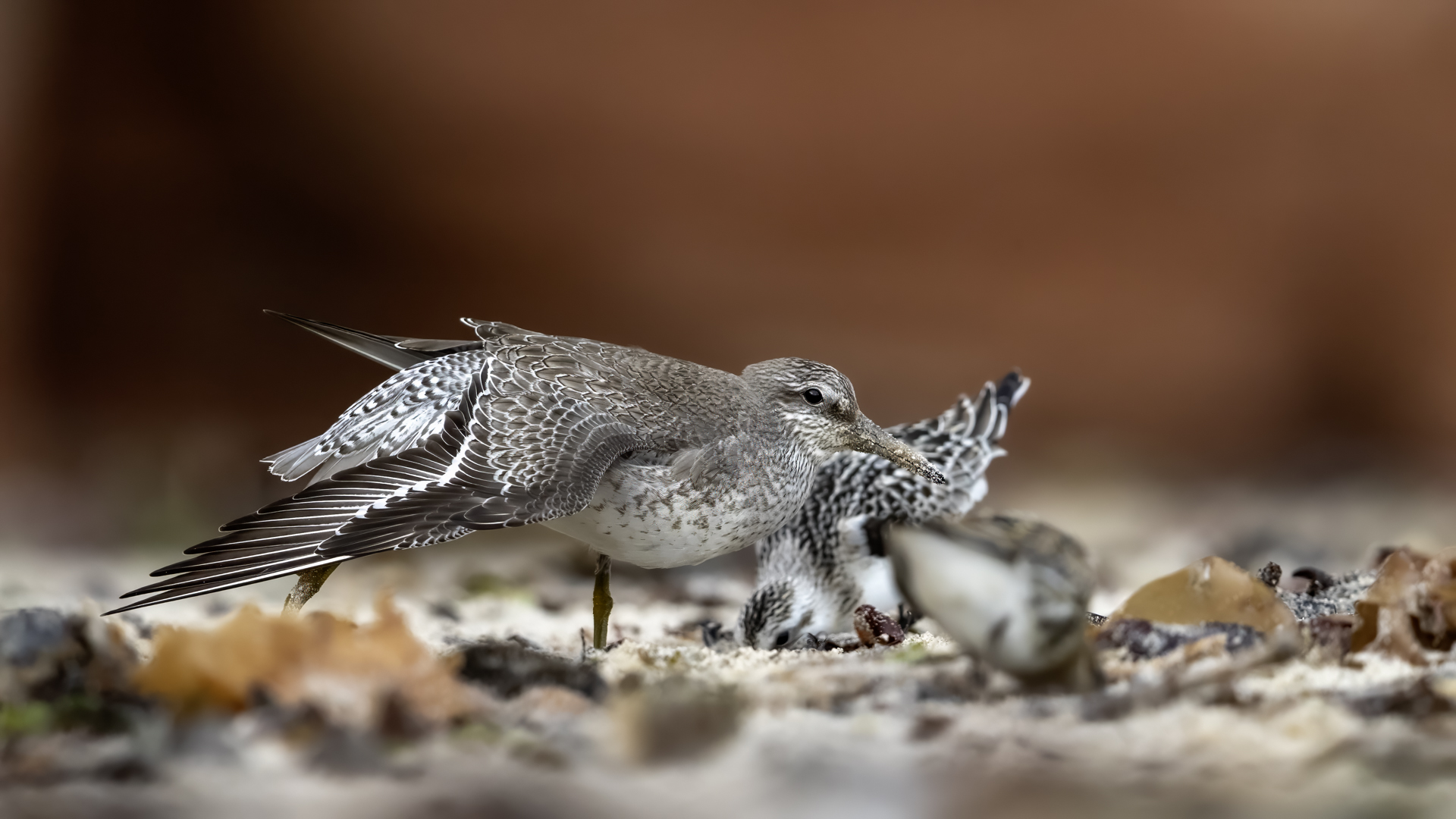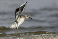 I have added some dynamic pictures of the red knot. Birds preying on the seashore took flight from time to time, only to return to the same feeding place after a while. Thanks to this, dynamic shots of sanderlings, bar- tailed dowits and red knots were created.