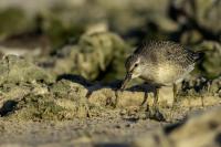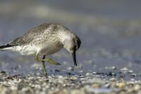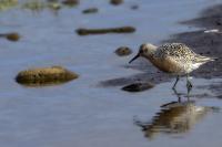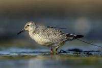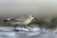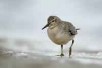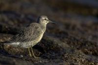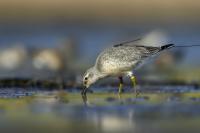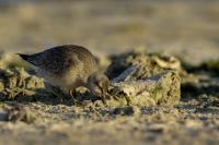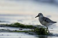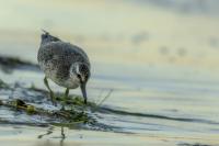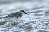 I admit that when I was getting up at 5 am in August in Swinoujście to go to the seaside with the camera I was quite skeptical about what I could photograph. The holiday season in a place like that means people on the beach practically around the clock. But without trying I will have no pictures for sure. When coming to the beach I could confess my fears proved correct, even so early you could count a dozen people. A novelty for me was that when I slowly approached closer to the plants thrown out of sea during the night I could see a cluster of tiny birds feed on the leftovers. It was surprising that they accept people walking by the sea (within few meters). Annoying thing, however, was that If I had not been there other people, particularly some older women would pass without noticing feeding birds. But if they are interesting for someone to photograph them, then they are worth taking a look at, very carefully indeed. Women passed treating me as if I were invisible and came up closer and closer, so that scared off everything that could pick up the flight. Despite my respect for the elderly, I cannot understand why they behaved like that and I do not know if it was an ordinary carelessness or malice. Anyway it wasn’t nice of them. Fortunately, the birds returned, but because of the growing number of people on the beach there were fewer and fewer birds. After 9 o’clock it was hardly anything to photograph. But never mind, the outdoors session was successful. Birds let me approach close enough to take some good photos that I could publish in the gallery. The lighting conditions at the rising sun were perfect. I was fully satisfied because of the fact that I was able to photograph the new species -dunlin, red knot, turnstone and ringed plover. Not only the new species but also of a satisfactory quantity and quality. Too bad that the ringed plovers soon abandoned this place because of the walkers. It is a long time I have not not managed to take pictures of the representative of the genre, and they aren’t satisfactory either in quality or shots. This comment will be common for photos added to the gallery in August, during that session. There are several reasons. The most important fact is that the whole session lasted several hours when birds were continuously disturbed, and as a result I was waiting and waiting for them returning. In such conditions, it is difficult to tell stories about the natural behavior of the species. Just like with the sounds of birds. Although the microphone was turned on all the time but after listening you could only wring your hands, or better ears. There was recorded everything, apart from the sounds of birds. The sounds of the port, the ships, walkers’ conversations, dog barking ... It is a pity, even far from perfection sound but recorded on my own is better to listen in correlation with pictures of the species than downloaded from another source of sounds. Short description, sound, photos, it's almost a movie, complete report of communing with nature. My diary. But it is not a market. What and how we can capture is always a lottery. This time the effect of several hours’ activity, without camouflaging, couching was stunning. Welcome to my galleries: Dunlin, Red Knot, Ruddy Turnstone and Common Ringed Plover. The red knot, like the ruddy turnstone is seen in Poland during its migration. The red knot lives in North Asia and winters in North Africa. The weight of a red knot does not exceed 180 gram, with a wingspan not exceeding 50 cm.