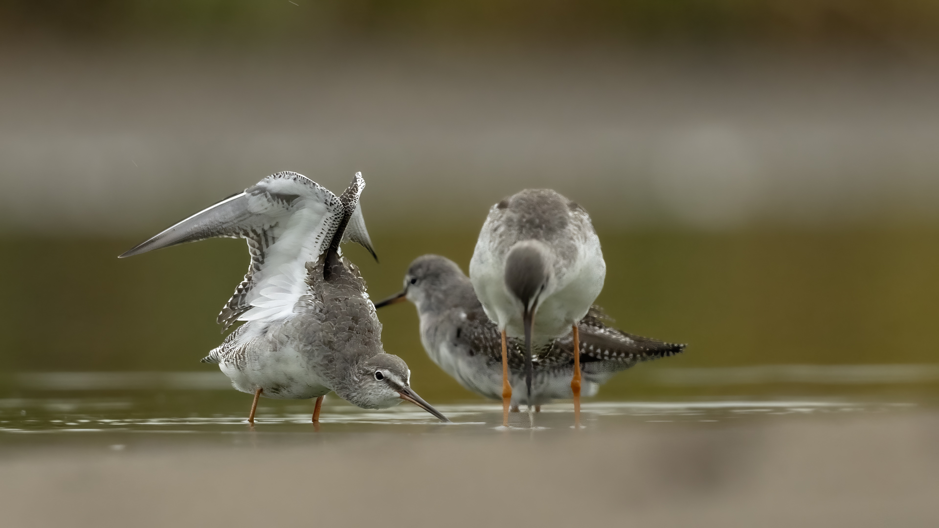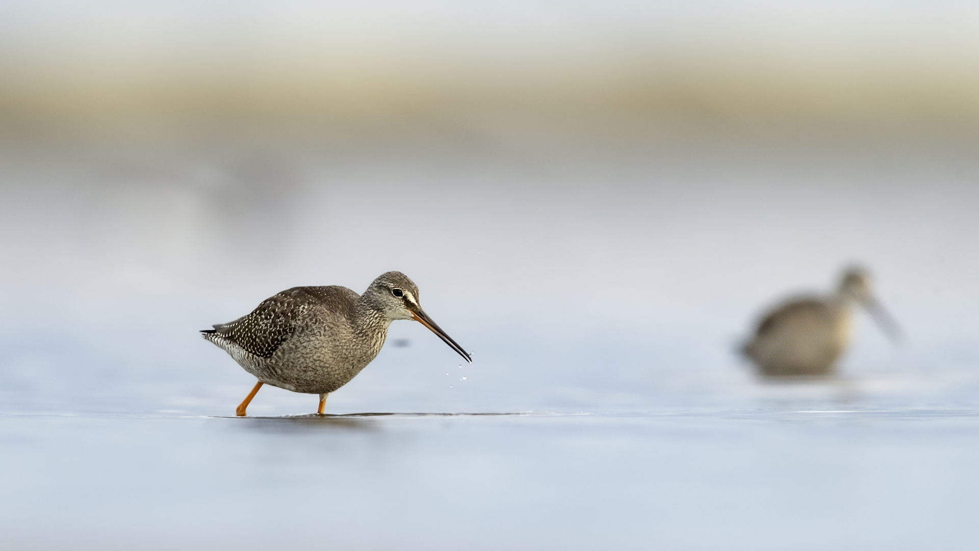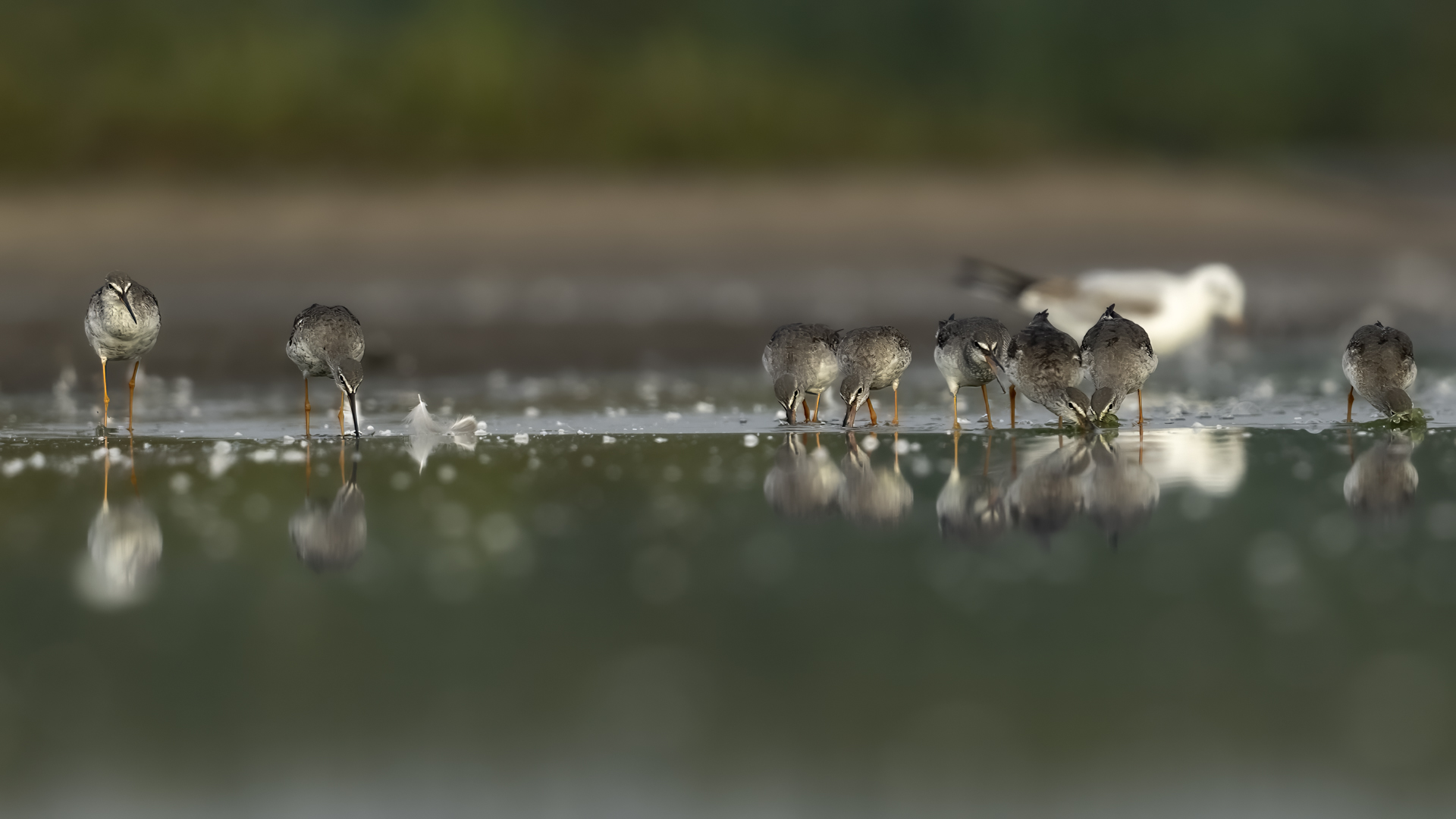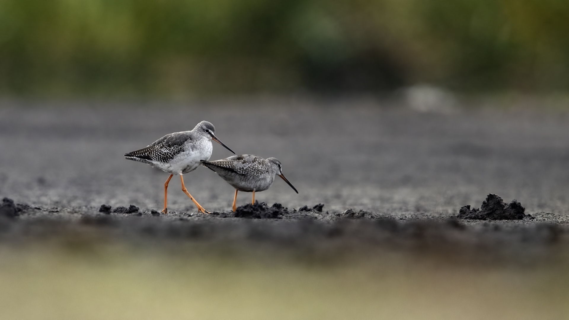 Another short, coincidental encounter. This time I had planned to photograph the Eurasian curlew, but I ended up taking pictures of the common shelduck and the spotted redshank. Redshanks rose from the ground not to come back to the previous feeding ground. The spotted redshank has a wingspan of about 60 cm, and a weight of 100-200 gram.