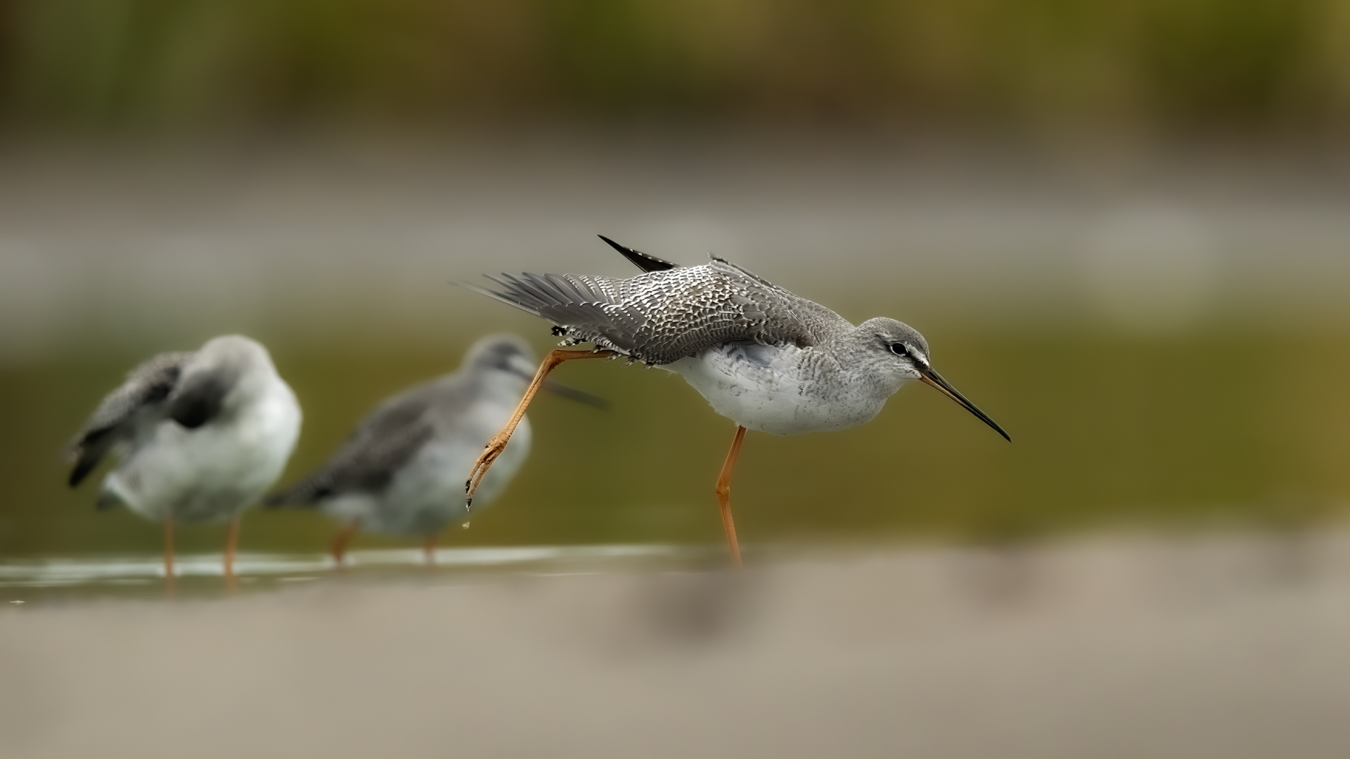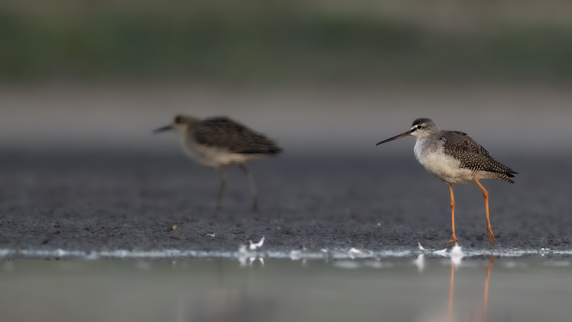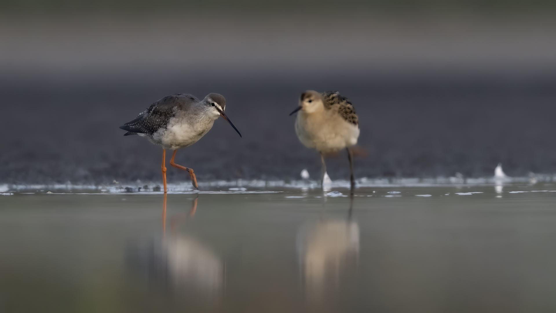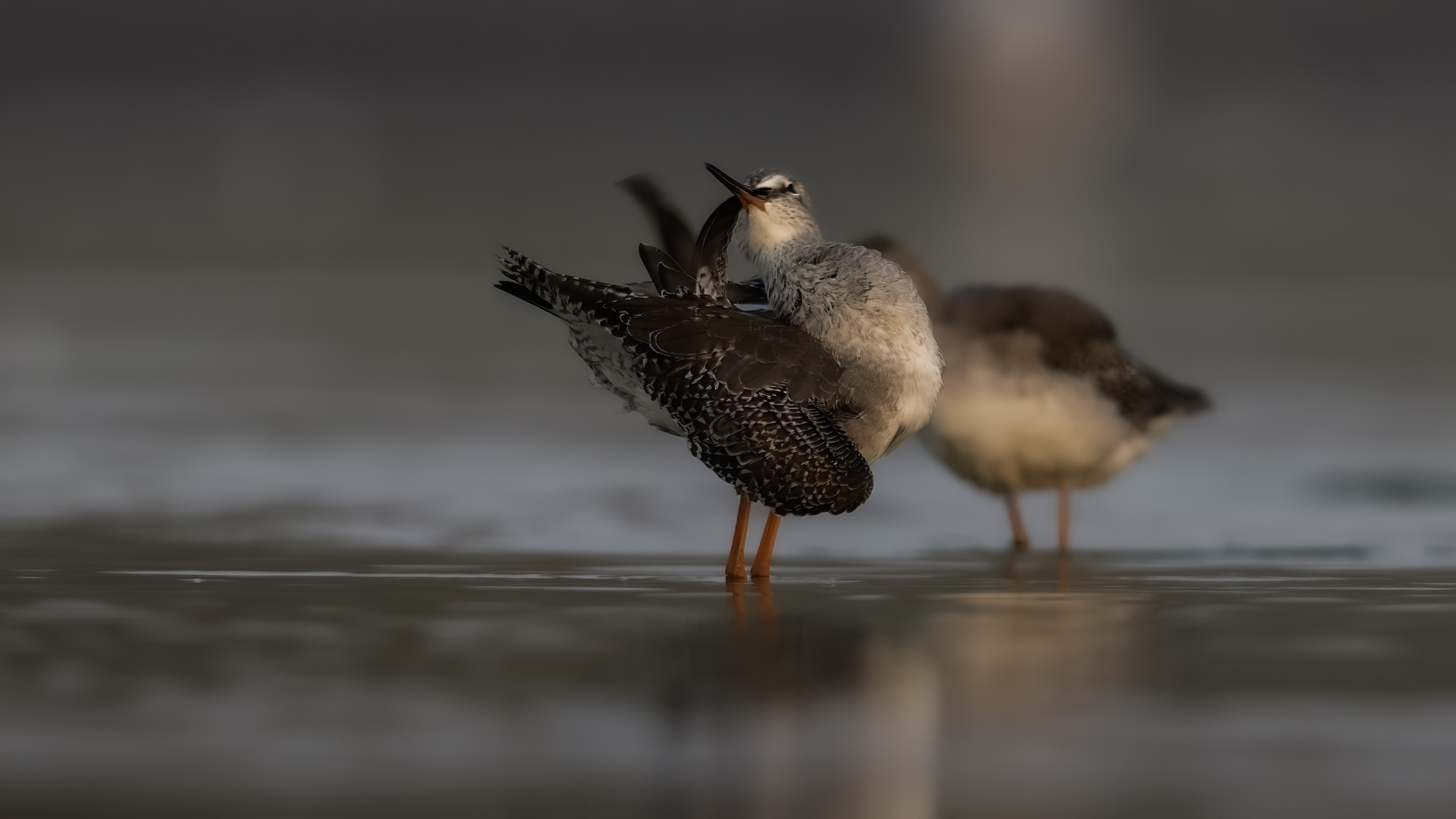Another short, coincidental encounter. This time I had planned to photograph the Eurasian curlew, but I ended up taking pictures of the common shelduck and the spotted redshank. Redshanks rose from the ground not to come back to the previous feeding ground. The spotted redshank has a wingspan of about 60 cm, and a weight of 100-200 gram.