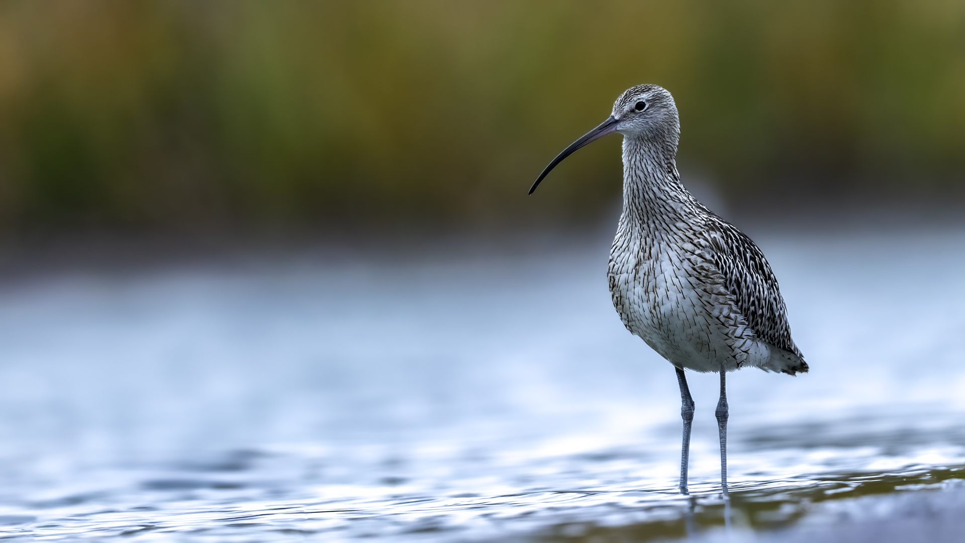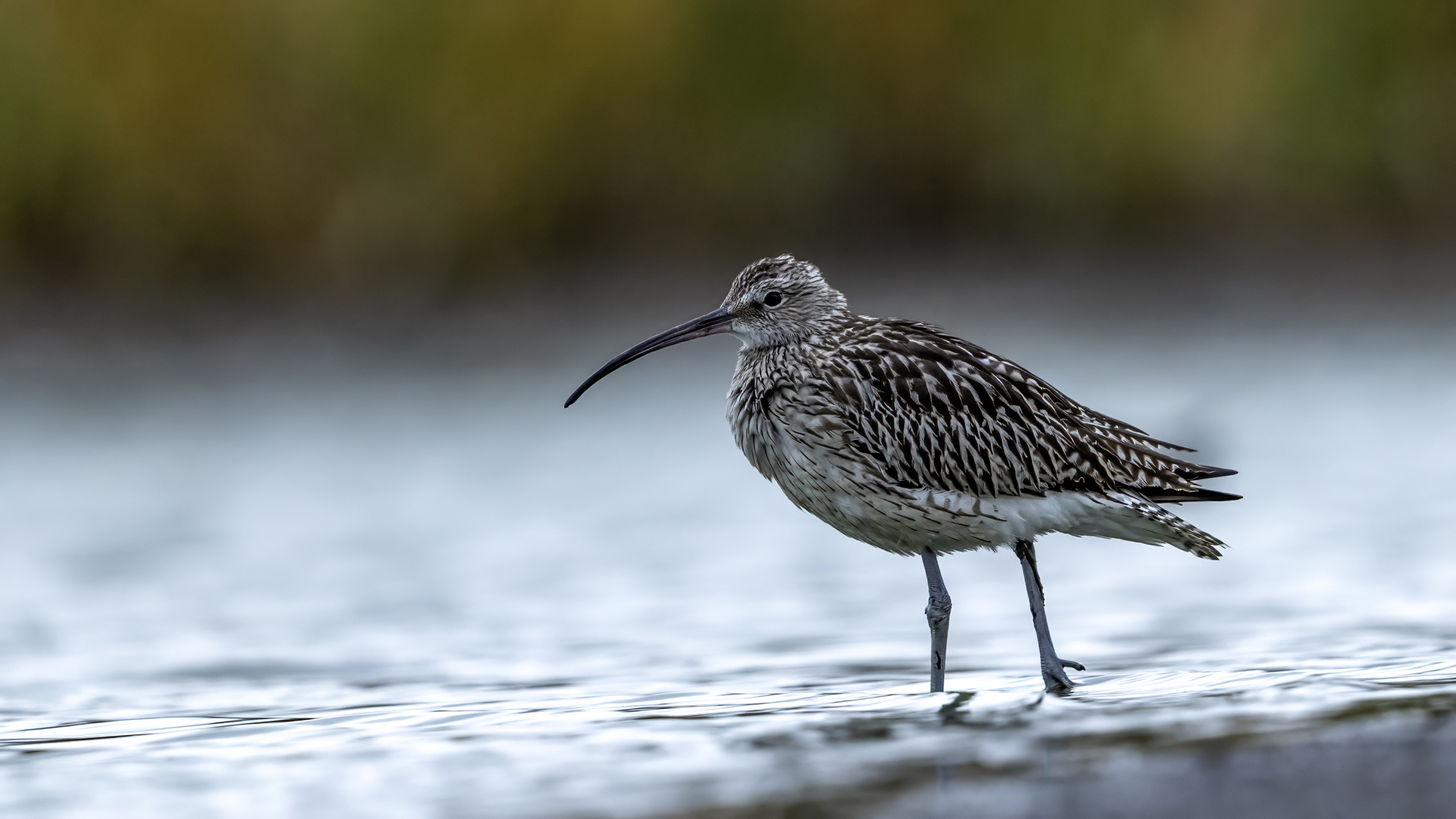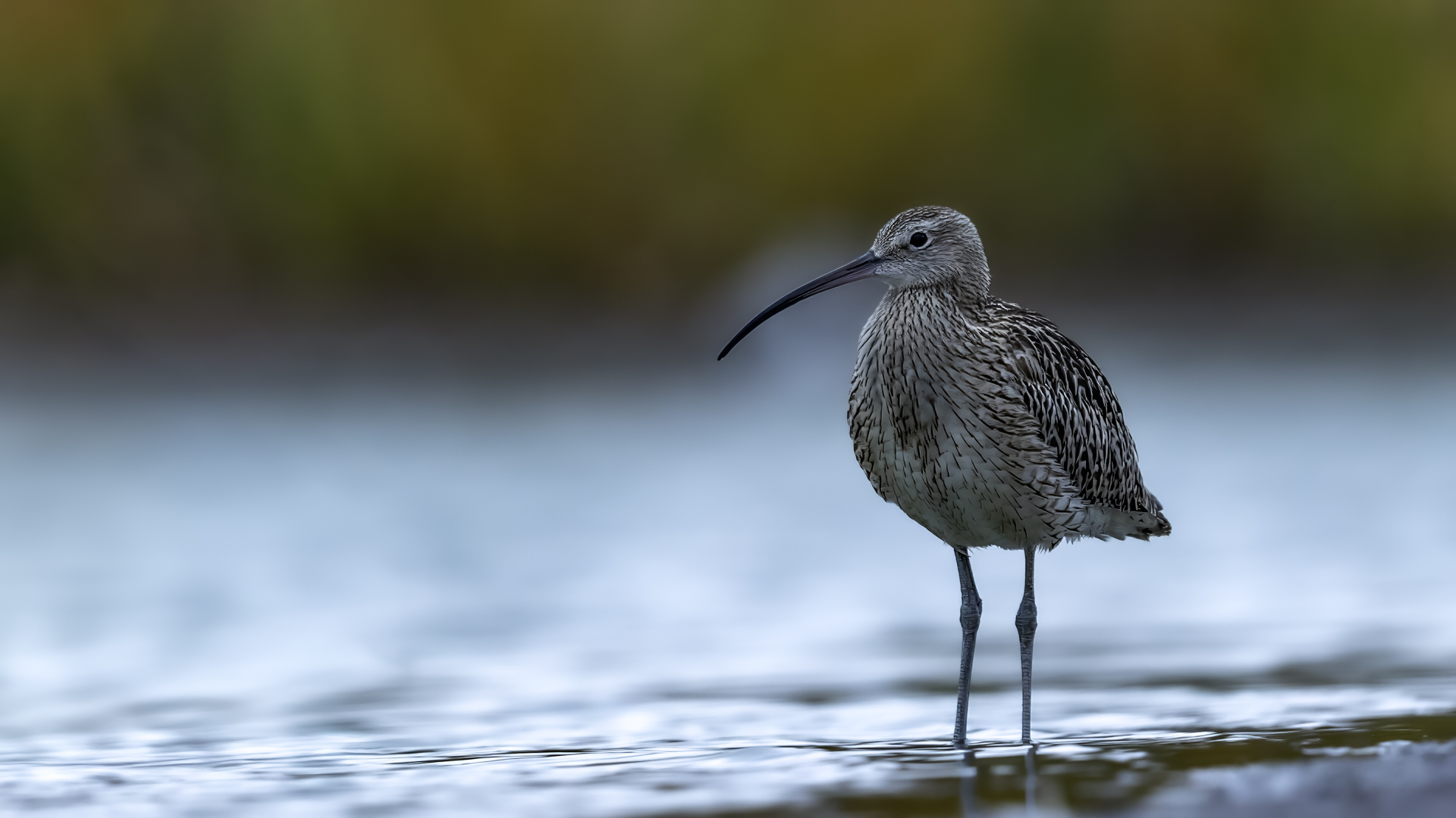 Our previous attempts to photograph Eurasian Curlews were always related to dawn, in the morning. And, since the scenario of the birds' behavior always repeated itself and it was difficult to get photos in good light, something has to change in our operation. I decided to sit in the shelter from noon to dusk. I wonder if Curlews frequent the reservoir during the day and feed on it. To find out you have to watch from the shelter and check. As I planned so I did. Already on the very approach to the shelter a pleasant surprise. Several charadiiformers dabblers took flight at the sight of me. As it turned out a very short one, because they made a small circle and sat between me and the shelter few dozen meters away. The first pictures were taken just like over our sea during the autumn bird migration. This lasted a minute or two, because it is necessary to enter the shelter, because it is for the Curlews that I came here. For a few hours of waiting in the shelter, almost only the diarrheas appeared in front of the lens: the variable, the curlew and the sandpiper. During those few hours of waiting, I had a whole range of light and weather variability. From steel-contrast sunshine to a rainy downpour to, at the end of the day, a beautiful soft yellow light. In this light, the Gray heron, one of my favorite species, joined the ranks of photographed birds. Interesting photos of all these mentioned species are produced, so this text is common to all the mentioned species. Well, at a rather unusual time, a lot of interesting photos were created, introducing enough changes in the galleries to hit all the photographed species to the news on my website. For the first time in my life I photographed charadriiformes from shelter. They were almost all the time with me. Around 6:30 pm, the light was low enough that I decided to stop photographing at this point. After packing up for a while, I leave the chat room walking in the shallows towards to the car. Suddenly I hear a familiar voice, which for several days has always announced the arrival of Curlews. Birds always landed with making their characteristic sound. I turned around and they are! All seven of the Curlews, by now birds that had been observed for probably over a month. They landed on an island far away from me. A commemorative documentary photo emerged, which I added, for the time being, to the end of the Curlew gallery. The birds stay there exclusively from dusk to dawn.