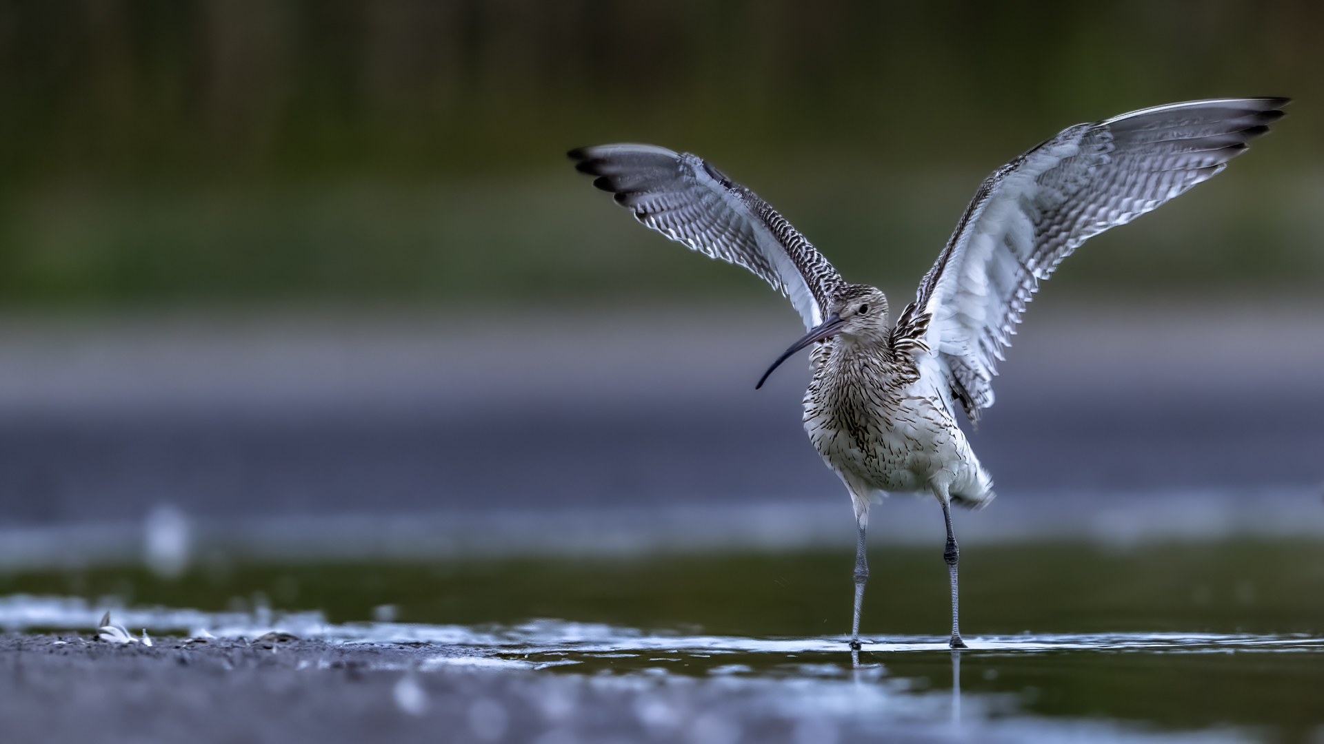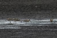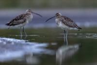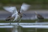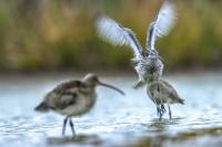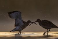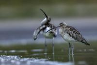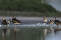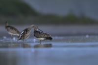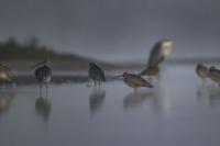 Finally, a few random photos in the EuroasianCurlew gallery are supplemented by much more interesting photos, but not yet definitively forming a gallery of very good status. This time the time commitment was considerable, because such an opportunity could not be missed. And there it was, an invitation to the waterfront shelter, where the curlews appear. Halina thanks and regards ( link ). Several mornings, or rather nights, had to be spent trying to take pictures. I have to arrive at the shelter at least an hour before sunrise and wait. In almost complete darkness, a very good quality recording of a curlew's voice is produced. I can see only indistinct, dark silhouettes of birds at a distance of about ten to fifteen meters. In addition to the sounds, the birds are engaged in their morning toilet. They bathe, fluttering their wings. Once it was possible to observe seven individuals. If they do the same in an hour or two, amazing photos will be created, I thought to myself. Well, and that thought ended there. The curlews had a daily habit of flying away a few, several minutes before the official sunrise. A sunrise that was impossible to observe. It was always either fog or clouds. When the weather cleared the birds were gone. On the third day they did not appear in front of the lens at all. For the first two days it was possible to observe a large flock of lapwings in the distance. On the third day there were no more lapwings. They probably gathered into a flock and flew away. I thought the curlews had done the same, but around 9 o'clock I heard several curlew voice sequences. However no, they are still here I have to wait. Unfortunately, it was possible to observe them only the next day, also before dawn, accompanied, to my misfortune, by fog. The resulting photos admittedly introduce some variety to the gallery, but it was not for such photos that I got up at 3 am. In the end, it must be said that it was worth it for these few days to rearrange the rhythm of the day. Not only the curlews gave themselves to be observed and photographed. A couple of mornings with curlews also resulted in changes in the gallery of Greylag Goose, Greenshanks, Spotted Redshank and Cranes. The curlew gallery is rebuilt and goes into the news.