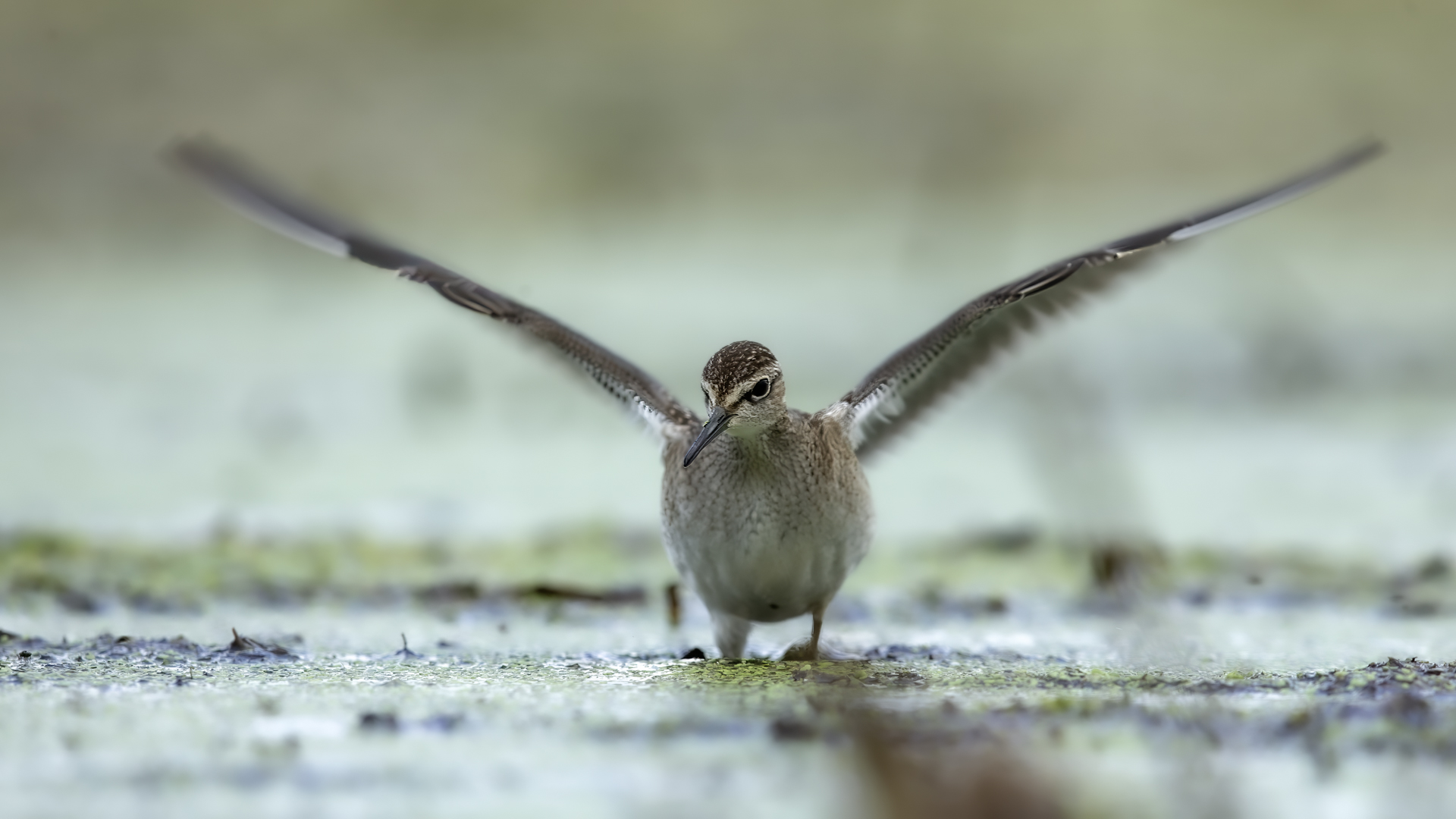 I was fortunate to find such an interesting place and hide so efficiently that wood sandpiper felt enough comfortable to approach even too close, at least to the distance that the lens was not able to focus properly, not to mention that the wood sandpiper did not fit within the frame, despite its diminutive size. As befits a plovers family those waders are very skittish and any reason make them escape. Fortunately they kept returning to let me take a picture of them, and in my case those photos are the best of this species. So, there is a progress in the presentation of this species, we hope that this is not the end.