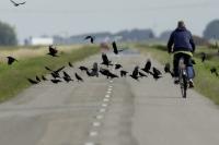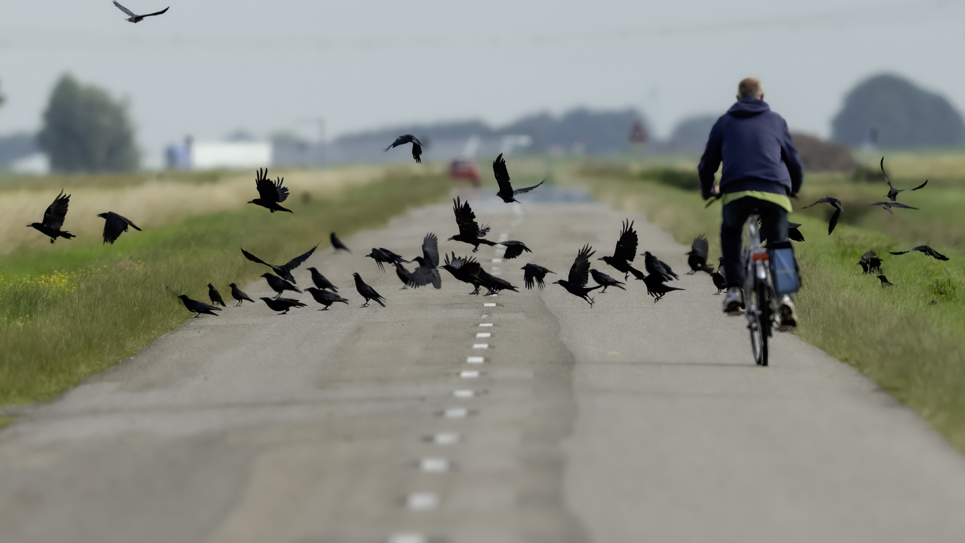And again there was no time for capturing this bird in Poland, where it is really rare. In the Netherlands, on the contrary, it occurs commonly there, like a rook or a jackdaw in Poland. I posted a photo of a flock of carrion crows preying on a road, not really afraid of a biker that was coming up. All images were taken by the way, during the journey between a hotel and the place of shooting baillon’s crake and pied avocets. For example, the picture with a cyclist from the place where bluethroats occur. Carrion crows are found in Western Europe, and the River Elbe is said to be the natural border of their occurrence to the east. And so it is indeed. In the Netherlands they can be found almost everywhere, including gas stations, but after crossing the border and entering Germany our encounters were less and less frequent. Carrion crows reach a weight of 0.7 kilograms with a wingspan of about one meter. So they are a bit heavier than our rooks, with very similar wingspan.