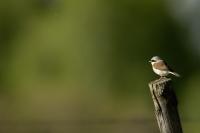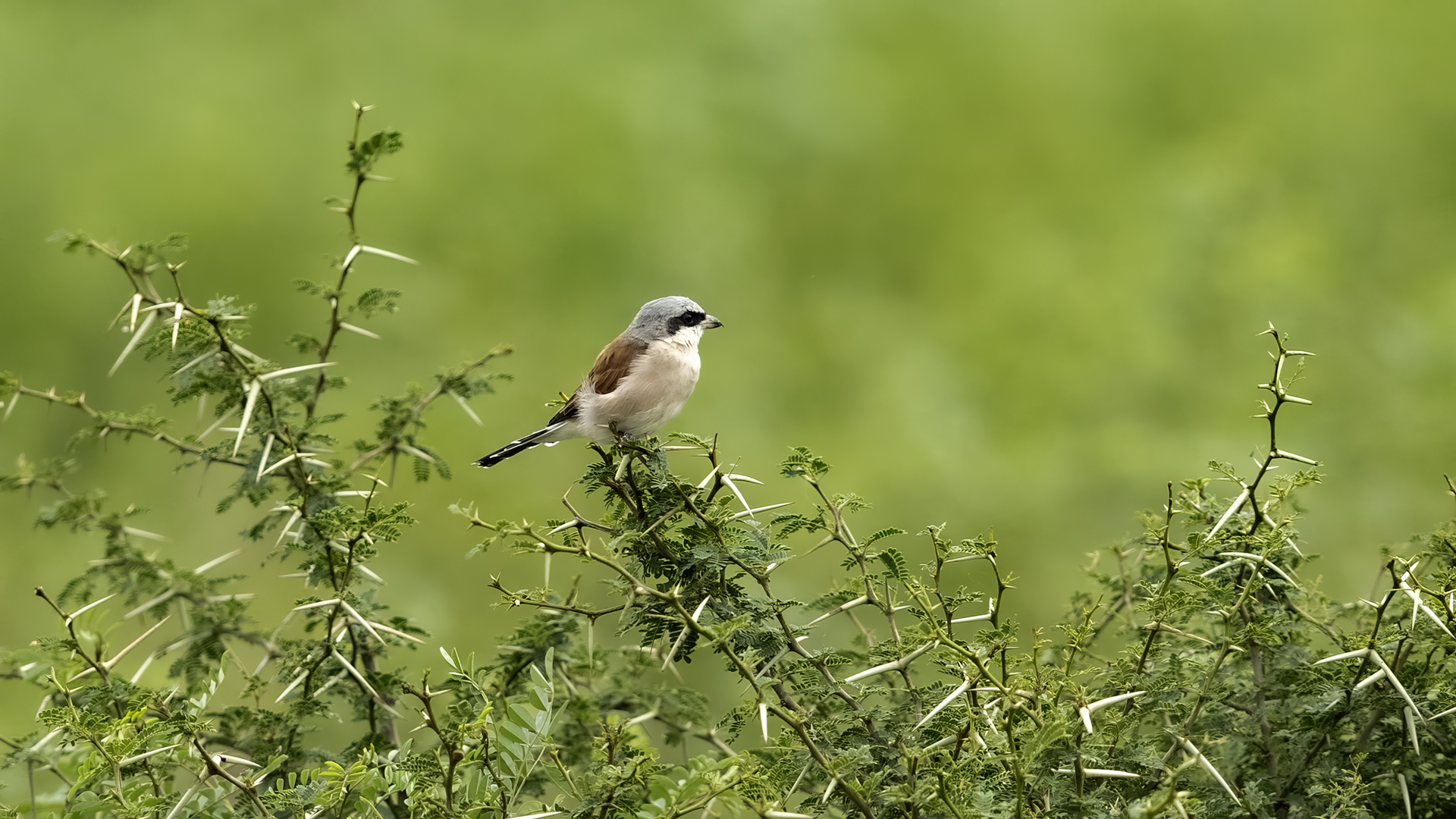 Although it is a lot smaller than the great grey shrike, it has much in common with this species when it comes to favorite menu and feeding habits. The red-backed shrike is in fact a carnivorous bird that eats insects, rodents and other birds. It stores excess food by means of impaling it on thorns of bushes so that it can come back to it later, when hungry. It is very difficult to photograph for two reasons. The first reason is its small size (a weight of about 30 g, wingspan not exceeding 30 cm), the second reason is the fact that they won’t allow a human to approach them too close, in fact they will keep quite a distance from you. Here, without a hide, well-selected site or luck a long telephoto lens won’t help.