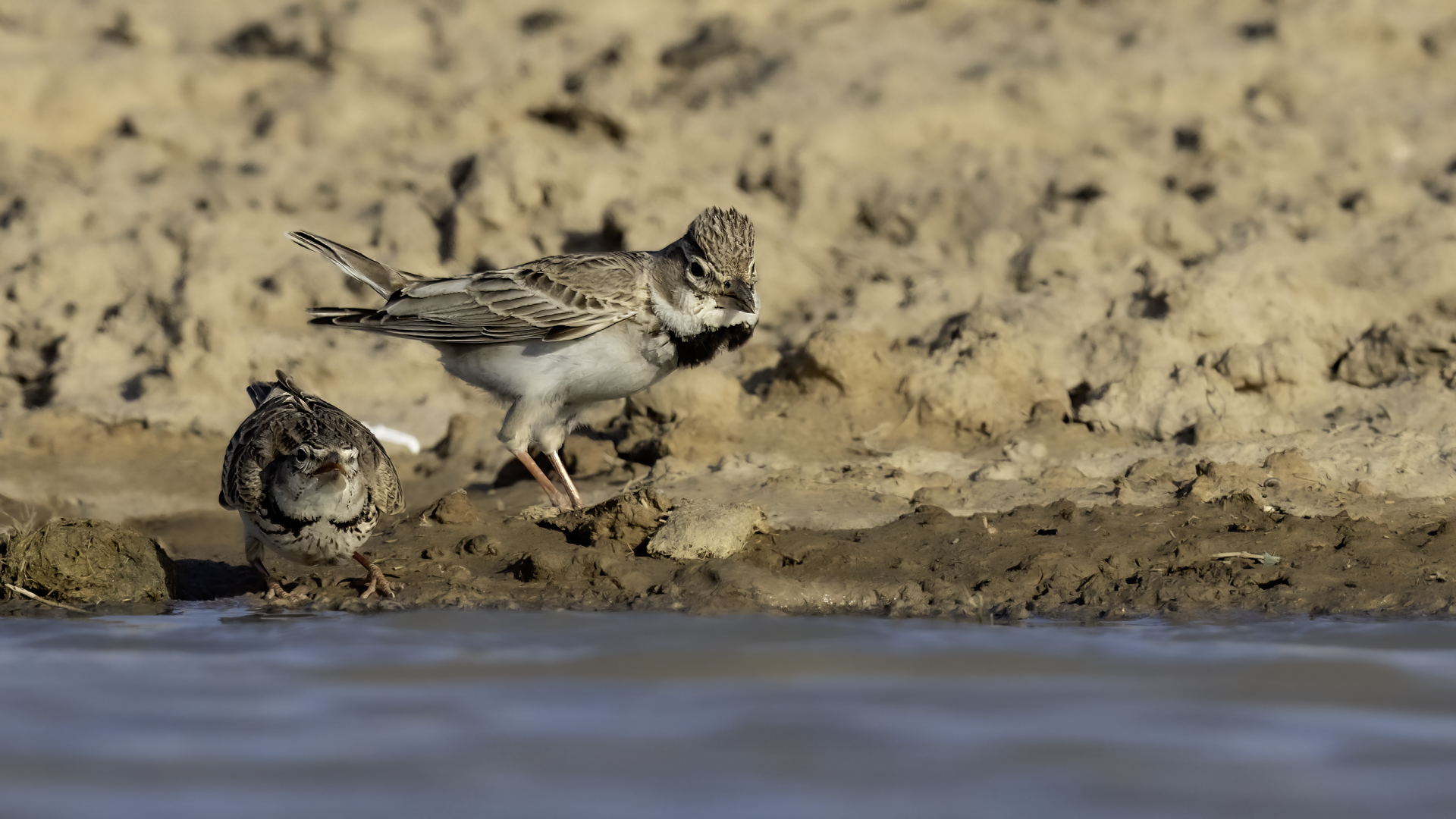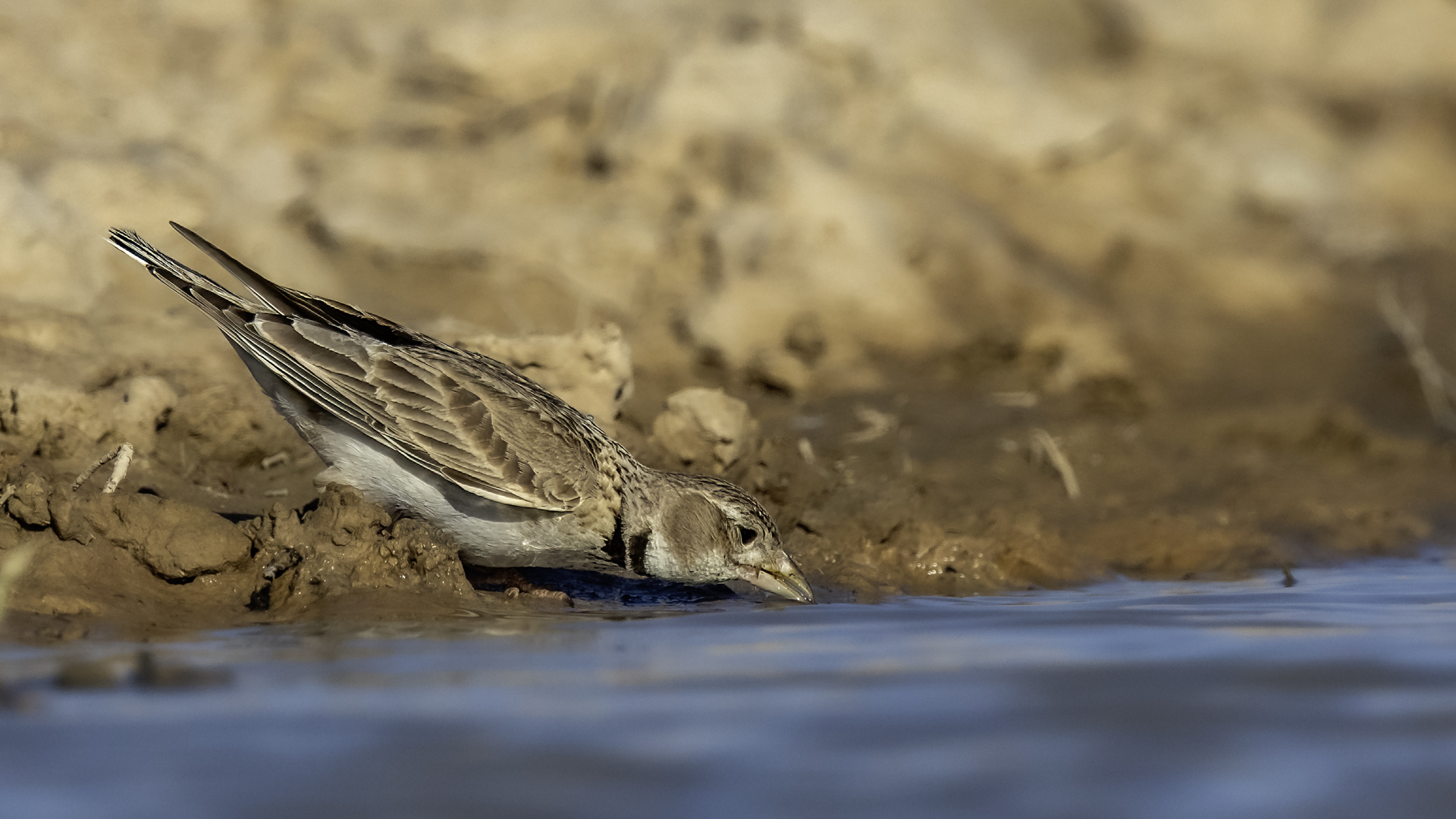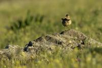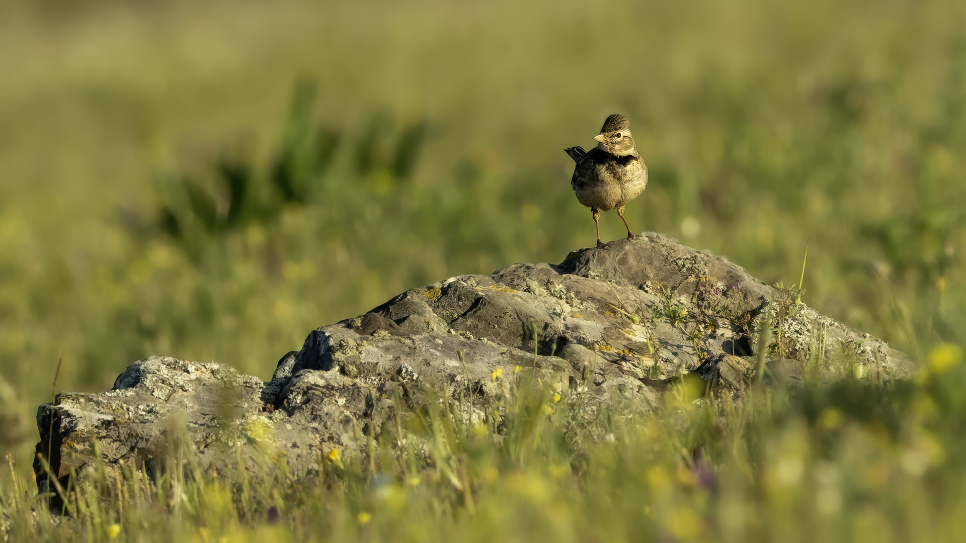 While I was sitting in an absolute darkness in a bee-eater's watching booth, right before the sunrise he was the only one to keep me company with his singing. In the morning, like our skylark, he would sit on a standing out rock and sing with engagement throughout whole neighbourhood. While I was recording other sounds he interrupted the rightful recording artists, but how was he supposed to know about his burdensome impact. He was such a frequent visitor that there was no problem with catching him “on tape”, he simply always performed in the background. In Poland Calandra Lark is very rare. Its counterpart on our fields and meadows is a Nightingale, when is comes to behavior and the voice. Calandra Lark weighs around 60 grams with a wingspan of around 30 centimeters.