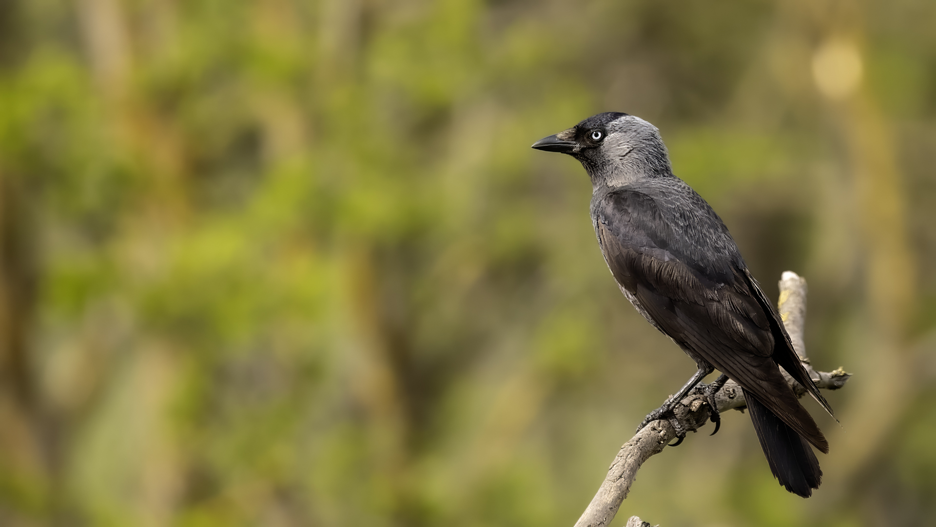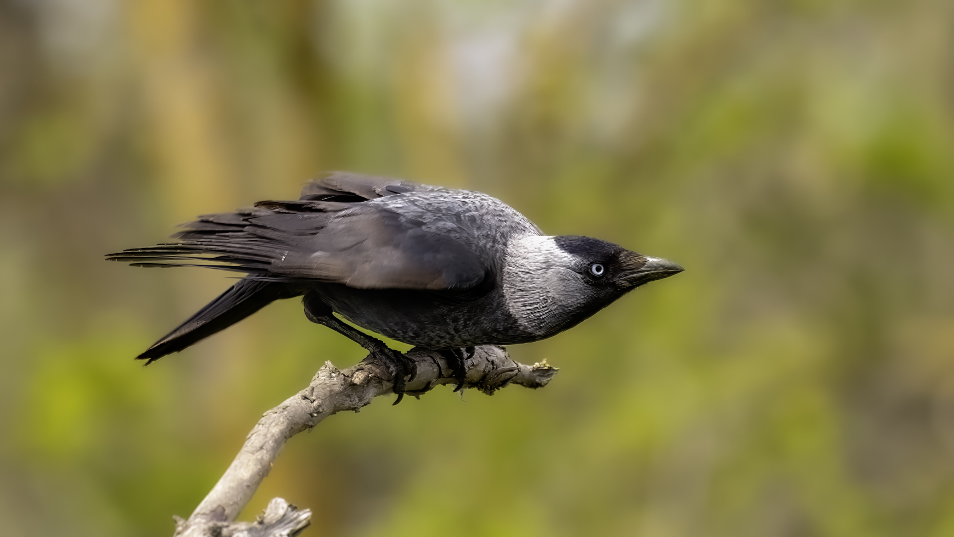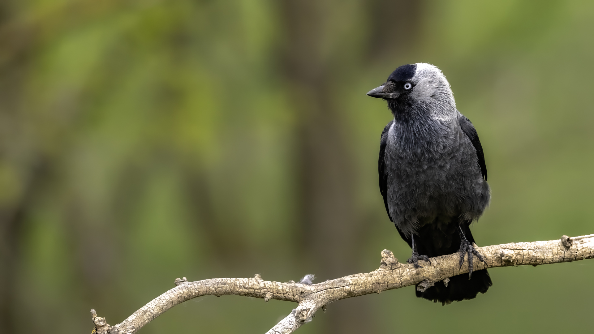 The western jackdaw is, next to the rook and the sparrow, another urban bird, which can be very easily photographed. From a certain distance, the jackdaw is seen as a black, perhaps dull bird. Everything changes when you reduce shooting distance or increase focal length. The jackdaw’s eye is amazing. The white iris makes this bird look „serious” and dignified. Their wing covers are dark-blue, the neck is almost grey, and the belly is graphite-grey. Such details can be observed only when you shorten the distance and use properly subdued light (see my notes for the rook). The jackdaw belongs to medium-sized birds. It has a wingspan of less than 70 cm, and a weight of less than 250 g. We can enjoy watching it all year round, as it doesn’t migrate for winter.