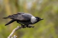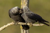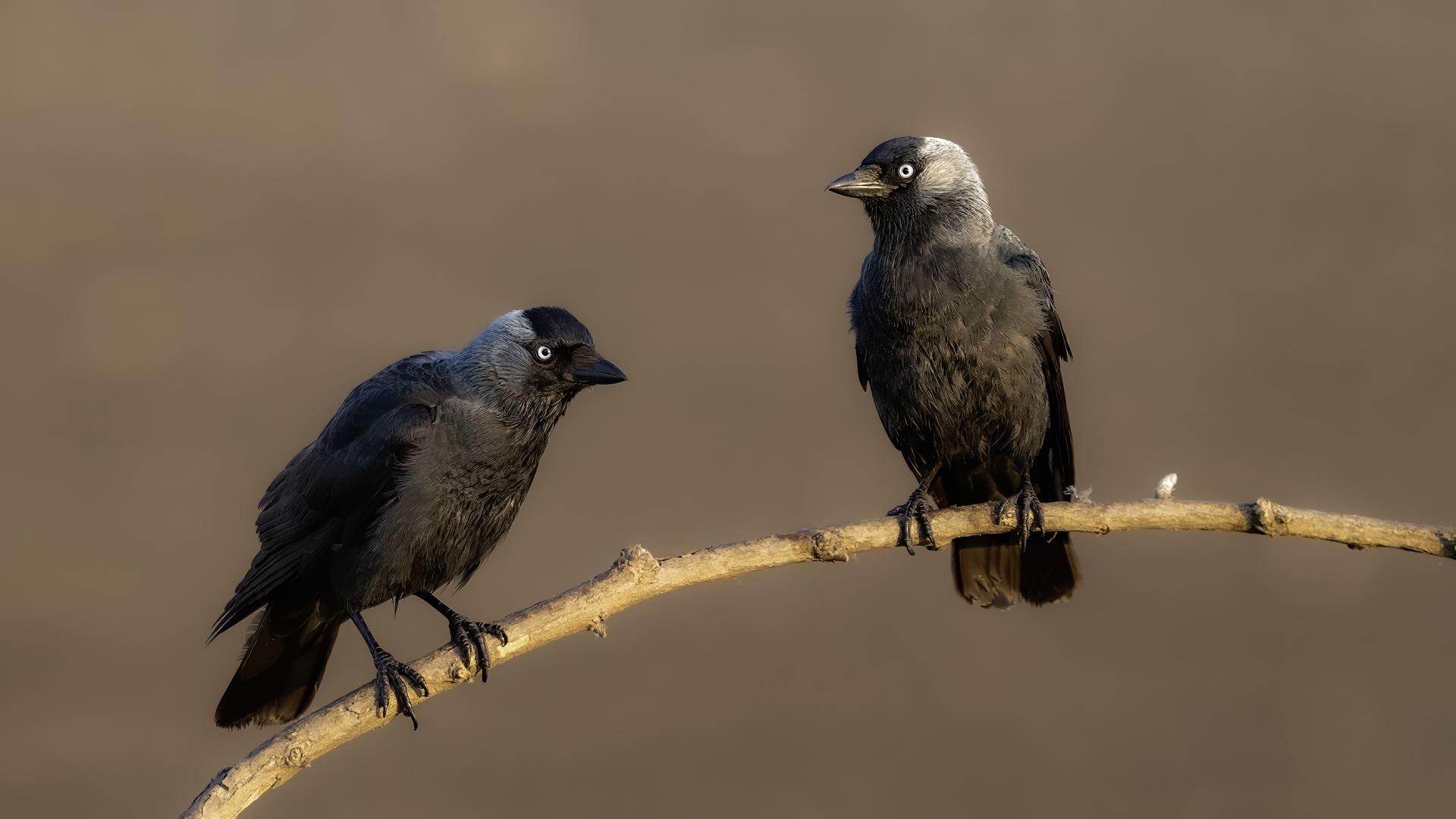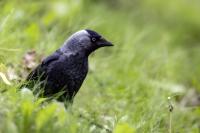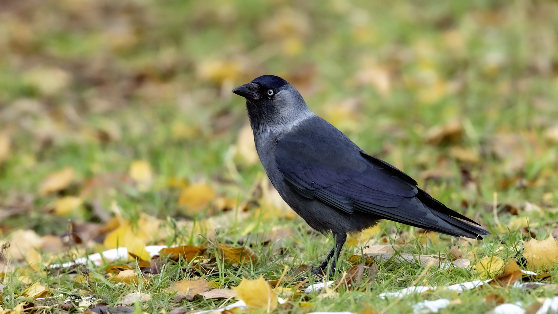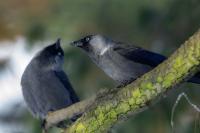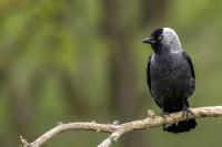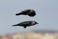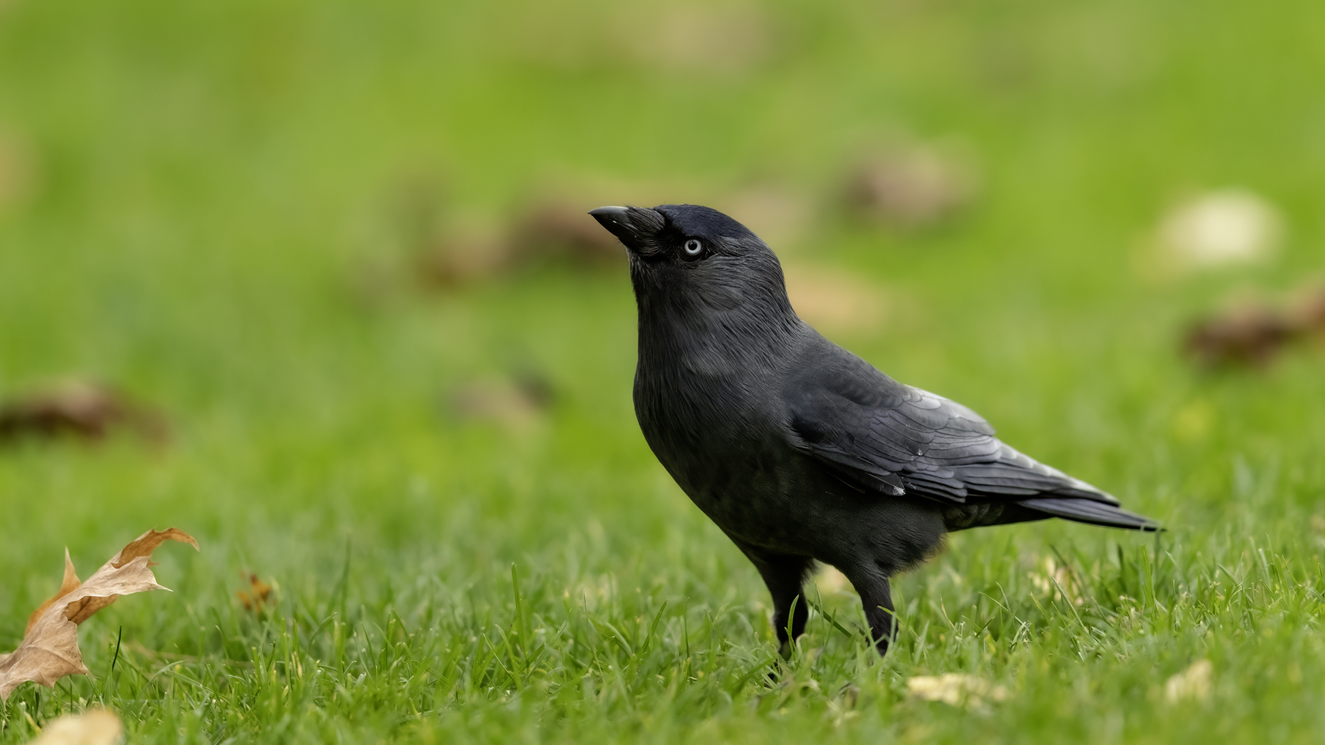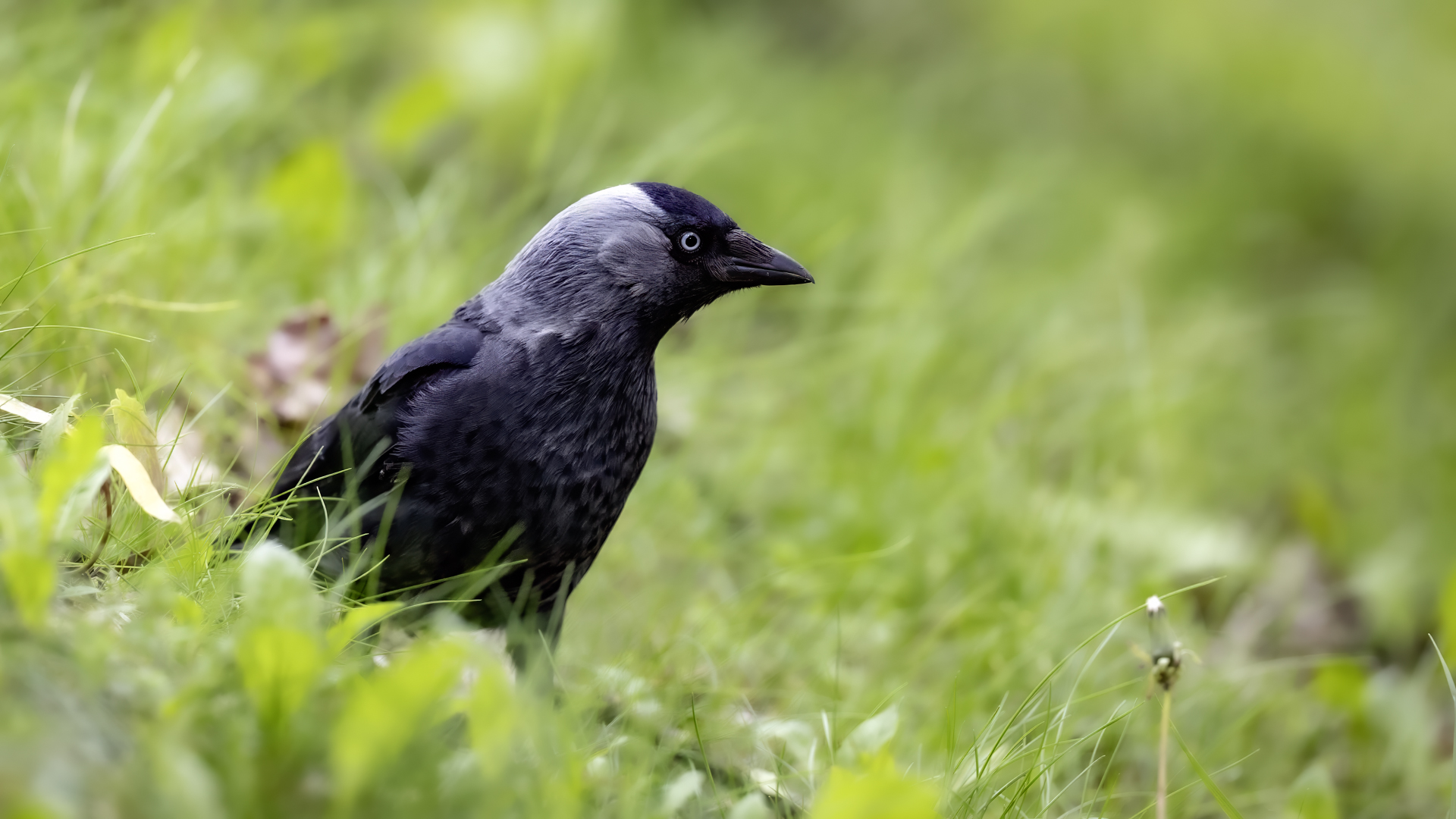 The western jackdaw is, next to the rook and the sparrow, another urban bird, which can be very easily photographed. From a certain distance, the jackdaw is seen as a black, perhaps dull bird. Everything changes when you reduce shooting distance or increase focal length. The jackdaw’s eye is amazing. The white iris makes this bird look „serious” and dignified. Their wing covers are dark-blue, the neck is almost grey, and the belly is graphite-grey. Such details can be observed only when you shorten the distance and use properly subdued light (see my notes for the rook). The jackdaw belongs to medium-sized birds. It has a wingspan of less than 70 cm, and a weight of less than 250 g. We can enjoy watching it all year round, as it doesn’t migrate for winter.