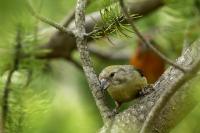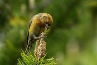 Less than 100 grams of weight and 30 cm of wingspan but how much it differs from the whole passerine family, because of its distinctive bill. In Poland I could not see crossbills, but thanks to Johann and his friend (Orn – I send you my greetings and thanks for commemorative pictures of the photo and recording session) I managed to take quite a lot pictures of crossbill’s family. Yes, it was recording session as well, for it was no problem to record the Crossbill’s voice, actually its young. Almost grown-up crossbill was sitting next to an adult bird and was giving out loud sounds, what was easy to record. Crossbills (males –in red, females - olive-brown) were feeding in the company of four of their children. This is how the family gallery of common crossbills was created on my website, composed of photos taken during my stay in Iceland.