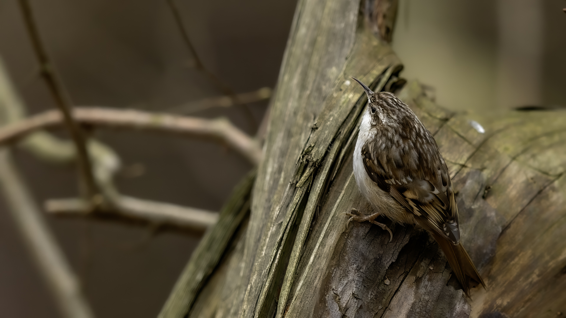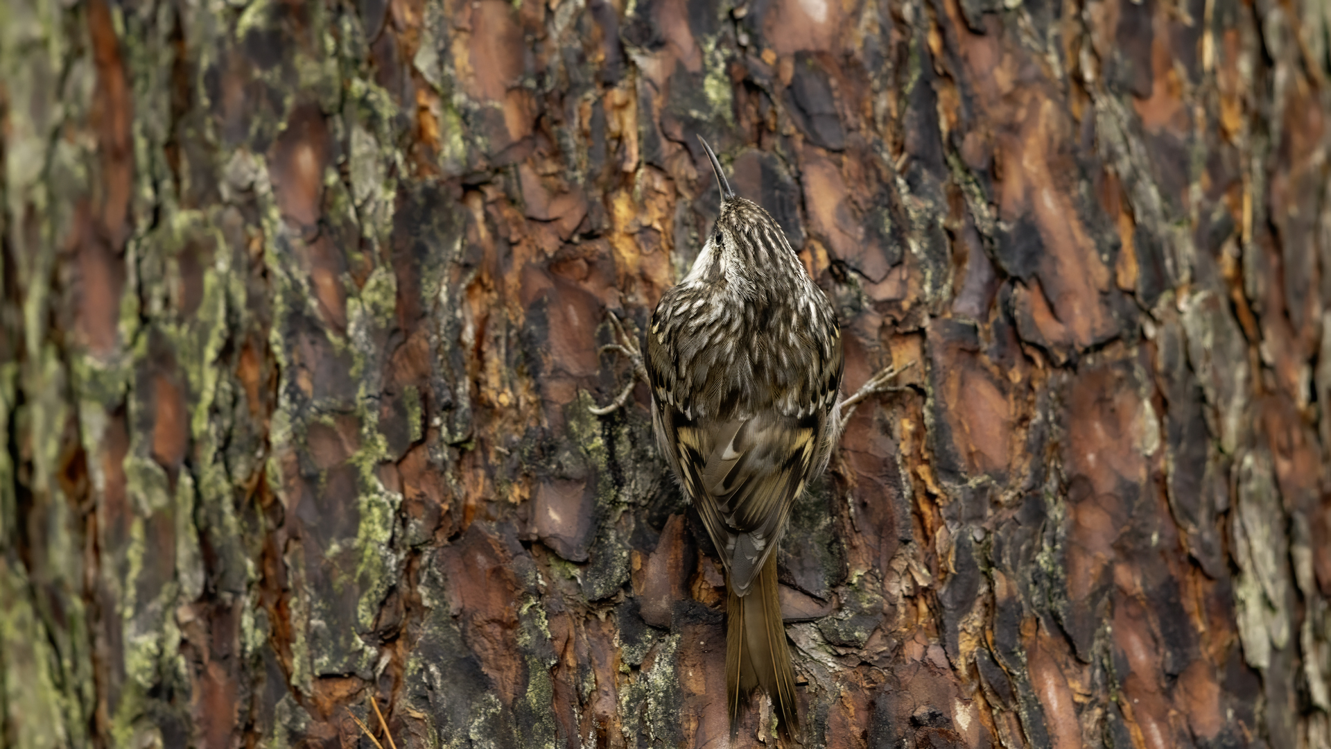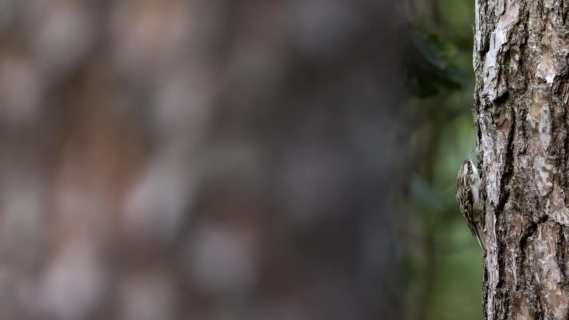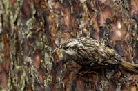Personally, distincting an Eurasian Treecreeper from a Short-toed Treecreeper is a challenge for me. That is why the description of both of them is of the same contents. According to literature an Eurasian Treecreeper most commonly appears in Europe and Asia, while a Short-toed Treecreeper, more thermophilic, inhabits Europe, specifically its Mid and Southern part. Fundamentally, they differ by the length of the rear claw and it would be best if they simply sat beside each other to make the task that much easier. I assume that the Short-toed is more common in Europe, that's the reason for my qualification of this species. Because Treecreeper does not migrate during the winter, time of impoverishment of the species in the forests, we can focus our attention on it. It is interesting to photograph the Treecreeper in a frost of a dozen degrees. Silence, it almost squeals through your ears, no sounds and in such surrounding you can hear almost piercing scratching on a bark. And as the crackling frost strenghtens voices it also strenghtens our notion of what is out there sitting in the woods. Pupils expand, not sure if it's from concentration and looking out or from dread. And here sits a little, 10 grams cleaner, cleaning the bark from insects. In such conditions, with subtle moves it is not even worth masking. After a while in the frost a Treecreeper ought to reward our sanguineous nose. Let's hope the battery and the camera's body will hold...