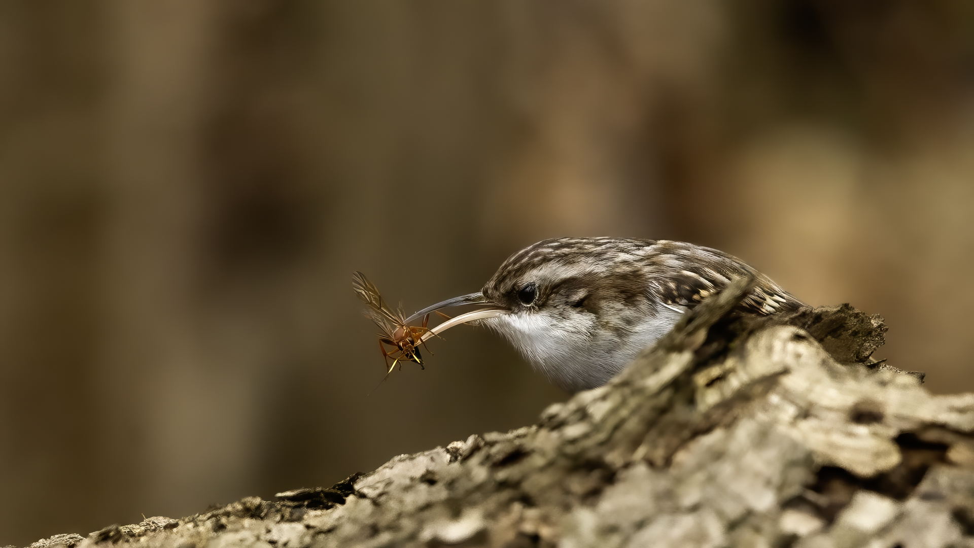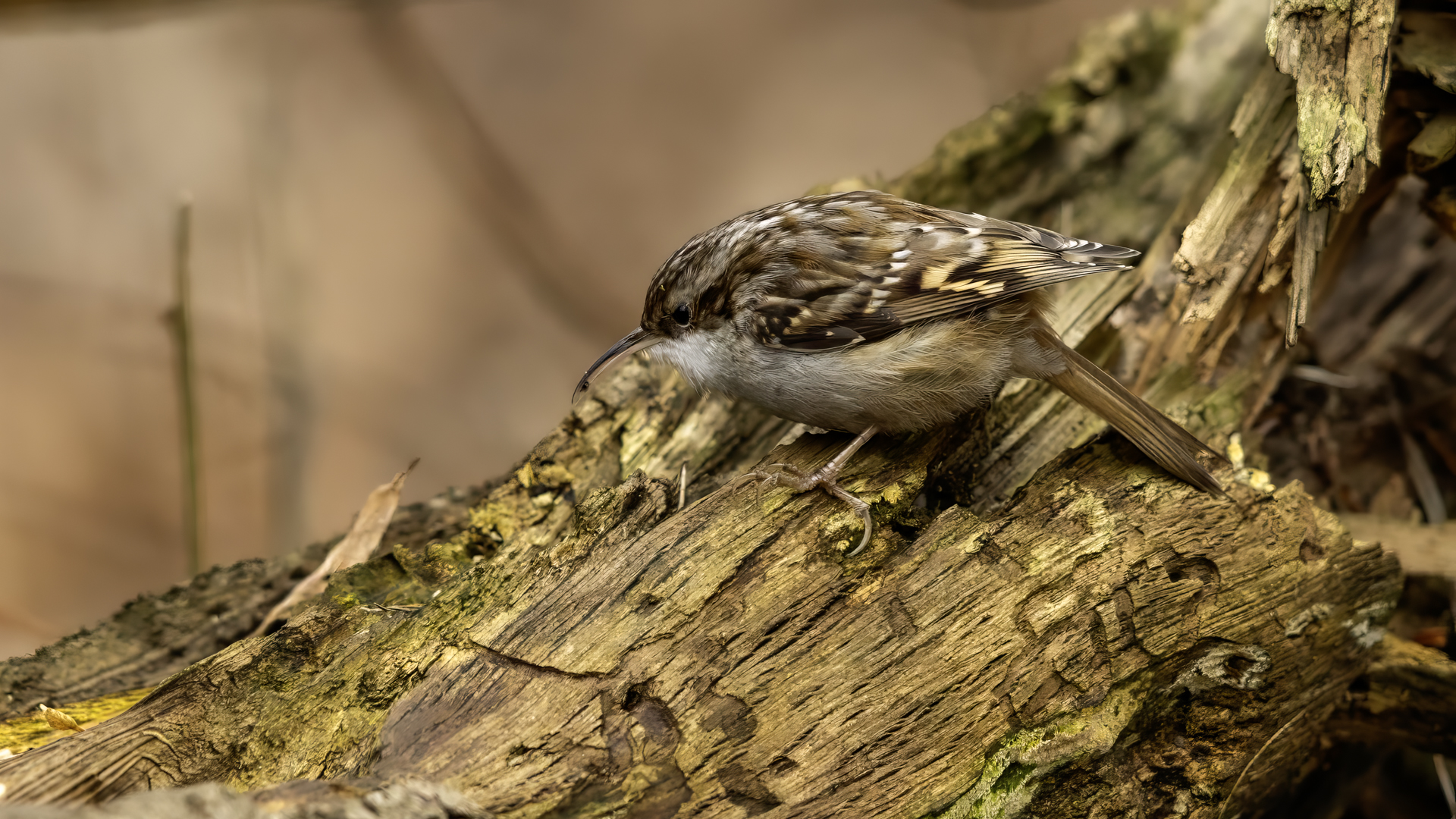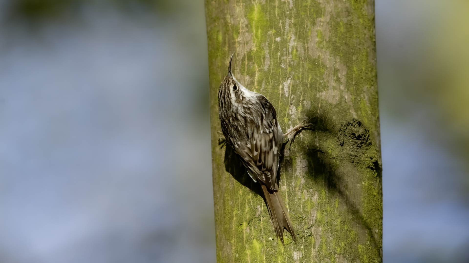 Personally, distincting an Eurasian Treecreeper from a Short-toed Treecreeper is a challenge for me. That is why the description of both of them is of the same contents. According to literature an Eurasian Treecreeper most commonly appears in Europe and Asia, while a Short-toed Treecreeper, more thermophilic, inhabits Europe, specifically its Mid and Southern part. Fundamentally, they differ by the length of the rear claw and it would be best if they simply sat beside each other to make the task that much easier. I assume that the Short-toed is more common in Europe, that's the reason for my qualification of this species. Because Treecreeper does not migrate during the winter, time of impoverishment of the species in the forests, we can focus our attention on it. It is interesting to photograph the Treecreeper in a frost of a dozen degrees. Silence, it almost squeals through your ears, no sounds and in such surrounding you can hear almost piercing scratching on a bark. And as the crackling frost strenghtens voices it also strenghtens our notion of what is out there sitting in the woods. Pupils expand, not sure if it's from concentration and looking out or from dread. And here sits a little, 10 grams cleaner, cleaning the bark from insects. In such conditions, with subtle moves it is not even worth masking. After a while in the frost a Treecreeper ought to reward our sanguineous nose. Let's hope the battery and the camera's body will hold...