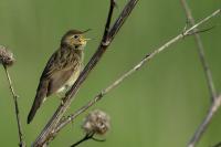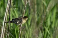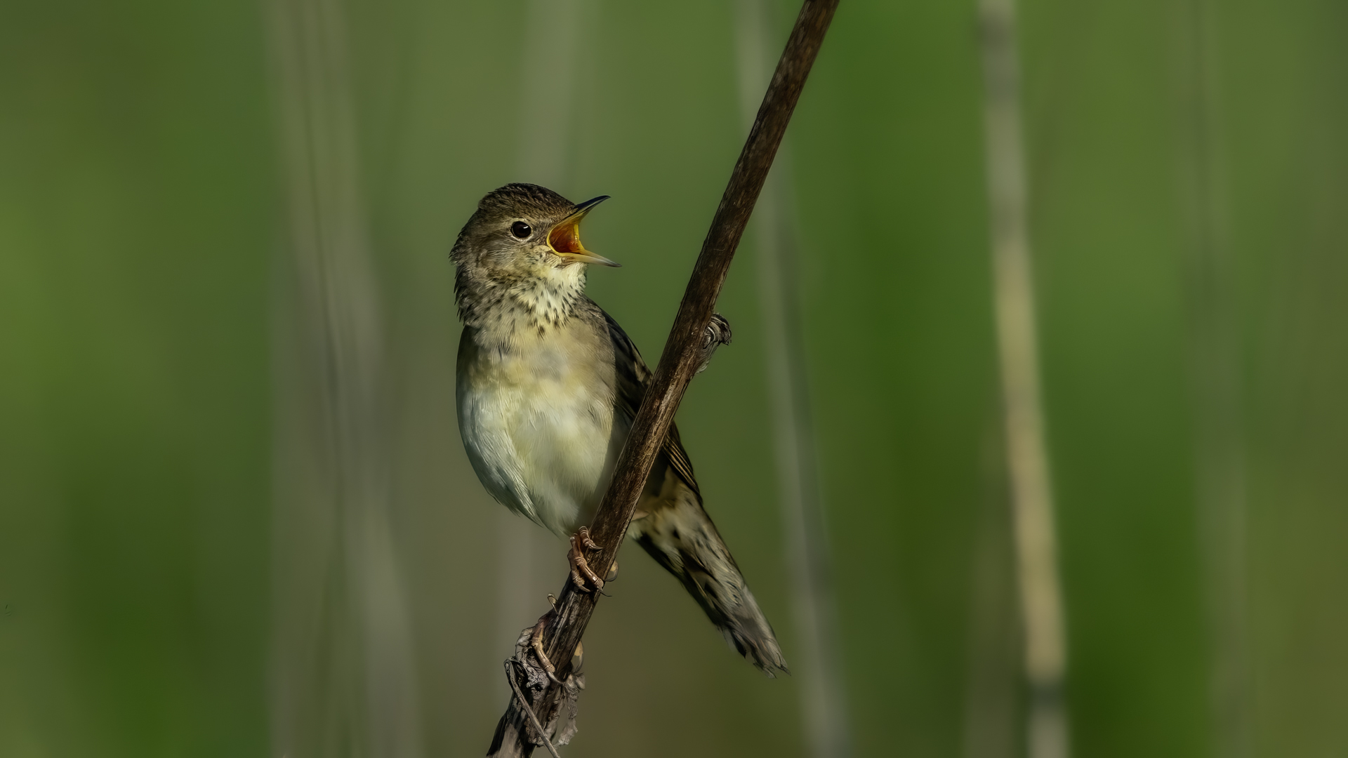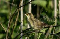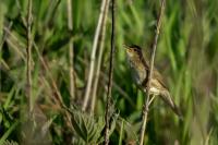 It was not easy to take the pictures shown here. The one things is that the Common Grasshopper Warbler is a rarity in Poland. The second thing is that it is inclined to wander around grass and I could barely spot it. However, I could it hear it from the distance. Fortunately, it left the tufts of grass from time to time and it was possible to take the photos. It was thanks to the European Stonechat that was eating nearby. Patience was needed, but in the anticipation of the Common Grasshopper Warbler leaving its hiding, I found time passing quickly and conversations about experiences in taking photos more interesting (greetings to Robert). The name of the Grasshopper Warbler comes from the sound it makes. Its song resembles the sound made by the Grasshoppers and is so loud that on that occasion I first recorded the voice and only later were the photos taken. It was not easy to record its sound on a wide meadow in the morning and not all background noises were removed from it. This, however, provides the sound background to the photographs shown here. There is no need to hide the sheer joy that follows from the successful photo session of such a rare bird. Not only do the pictures remain, but also there is a great number of them to choose from and there is a voice recording. The weight of the Common Grasshopper Warbler is about a dozen grams and its wingspan is about 20 centimeters. It builds the nests only on the ground. Feel invited to view the gallery and listen to this bird’s voice recording. This is a new species on my webpage.