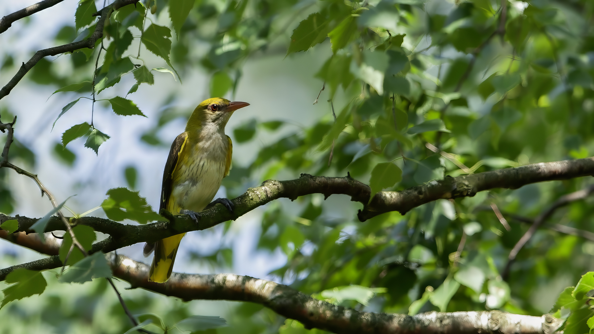 It is a bird which I will be referring to many times if it lets me of course. It is hard to photograph an oriole, because its favorite places are crowns of the tress and it can be spotted in Poland only from May to September. My dream is to take a photo of a female and a male together. A yellow-black male and an olive-grey female would be a great matching. A trill of a male oriole is music to my ears. Often heard in the woods, also in Polish communist films scenes recorded in the forest the orioles singing in the background, but most of people do not know that it was that bird. While sitting in the look-out, its voice whiles away the hours without making you feel bored or irritated while waiting, compared with the sound of the Savi's Warbler. It is a bit easier to photograph them in May, in a time when males compete for females jumping from branch to branch, when they can be easily approached and photographed. Orioles’ wingspan is less than 0.5 meters, with a body weight of about 75 grams. They are reserved and difficult birds to observe. The only useful facilitation is that when males sing their song, they sit quite still in the crown of the trees. When we hear it, slowly moving towards the sound, maybe we will find a line of eye contact with a beautiful male, sitting among the trees heavily overgrown with fresh leaves (May / June). Note that using focal length is more than welcome and the photographs taken from the bottom will not be the apogee of joy and contentment. But you have to start with something…