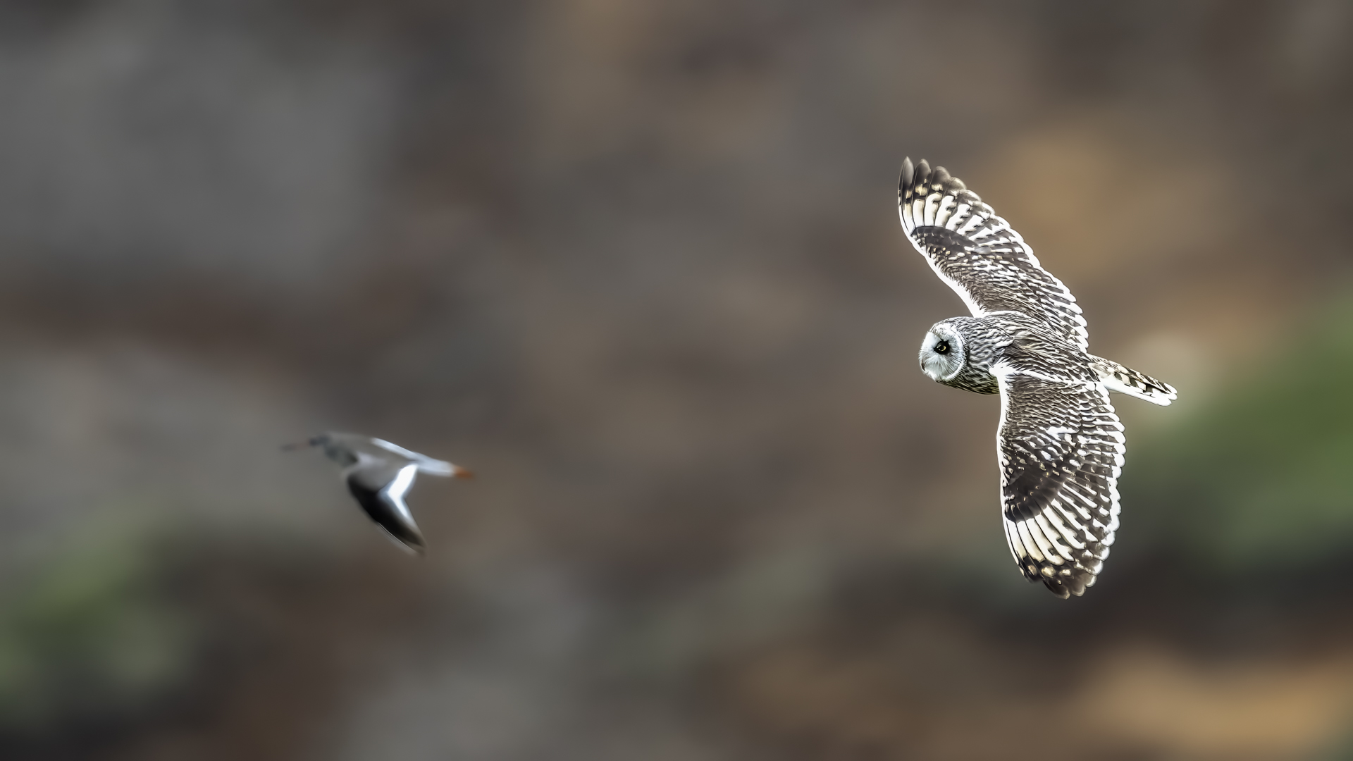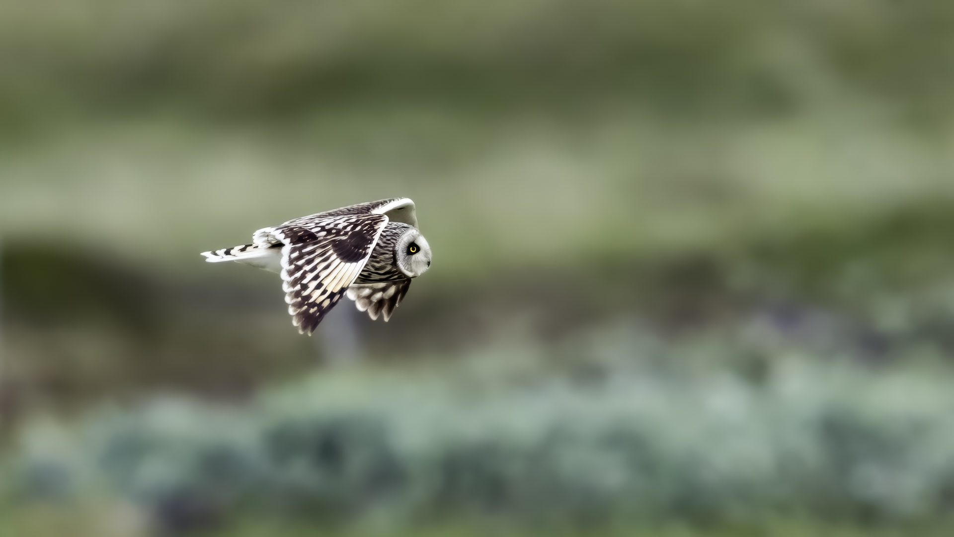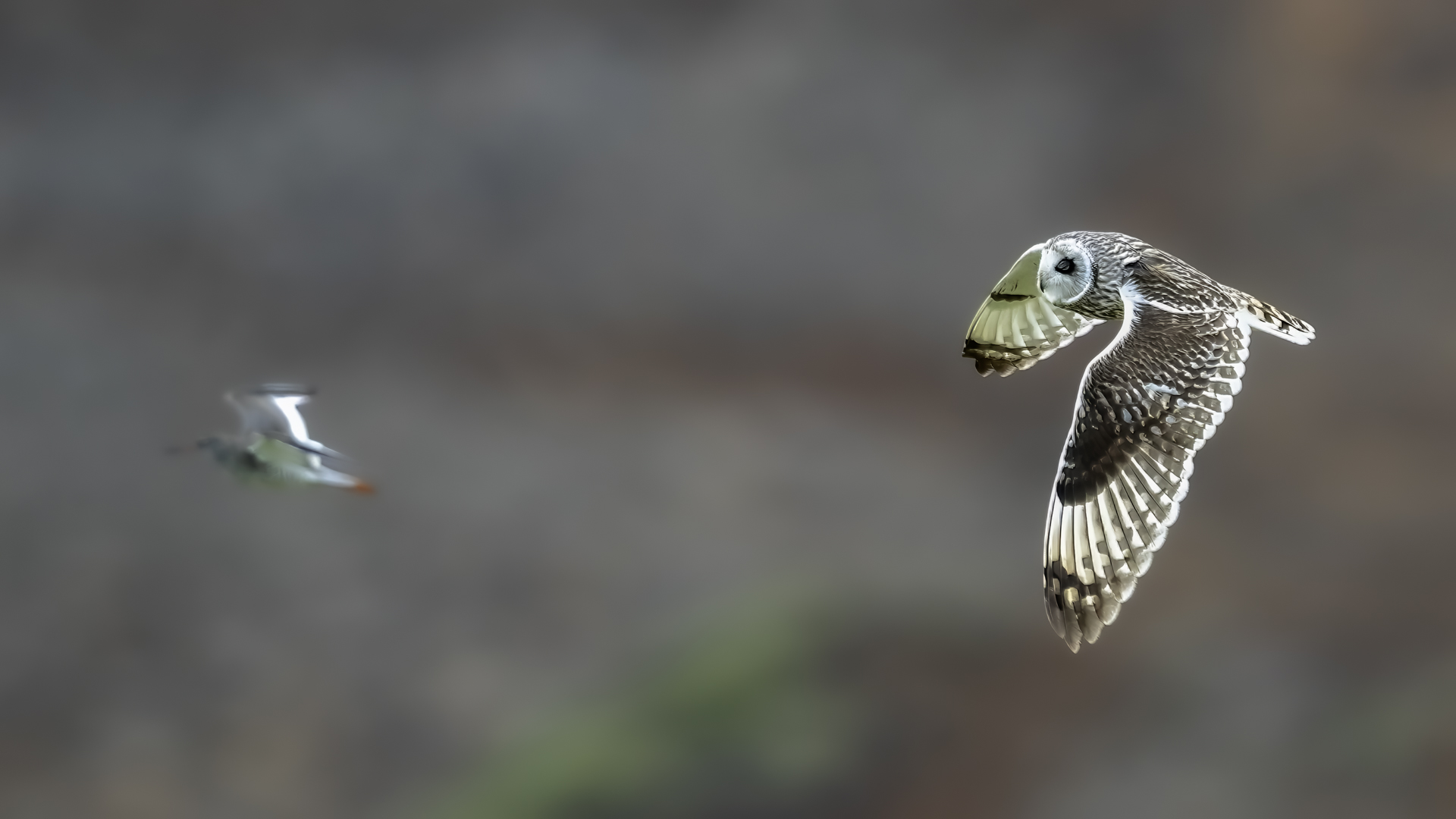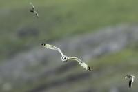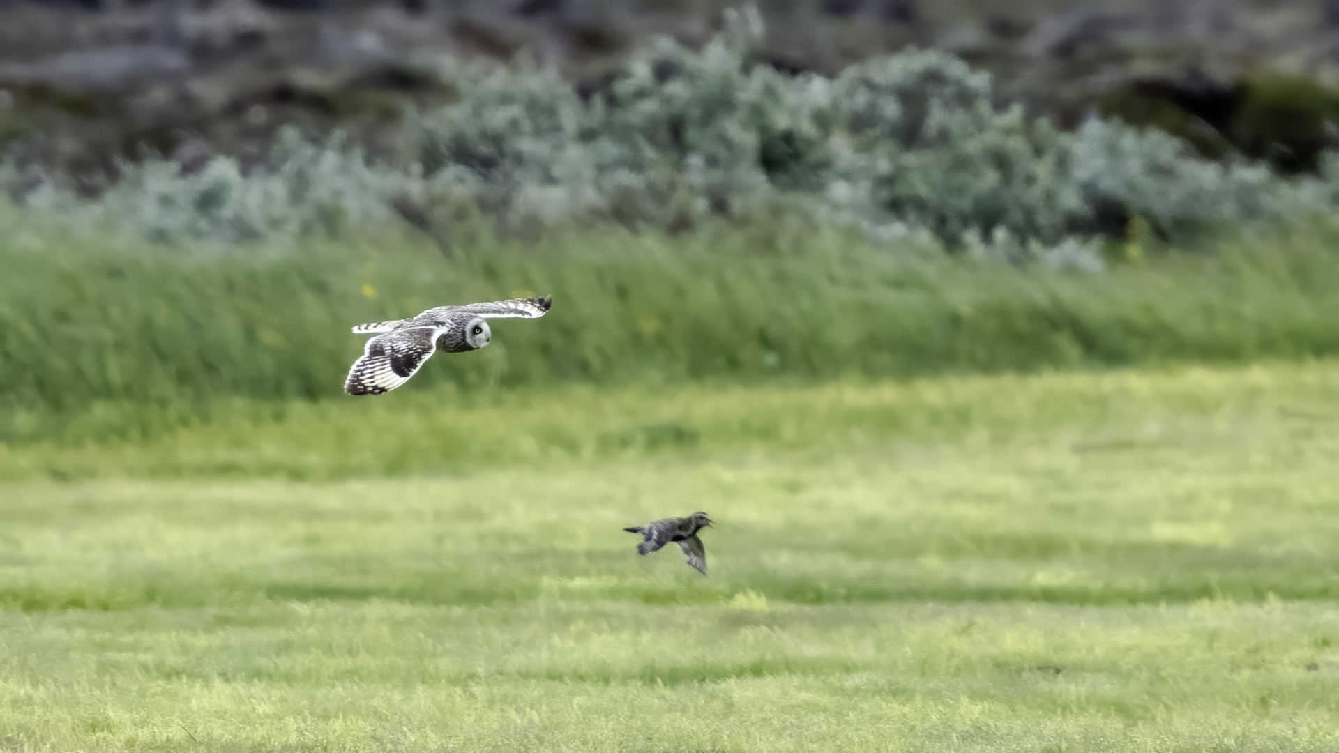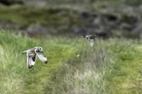 Also this time I encountered a short-eared owl three times in Iceland, each time it was spotted at first from the public road. But one of those meetings was special. It changed my gallery, documentary so far. We could observe how the owl behaved, which hunted in this area - let's say - around us. On other occasions it could be seen for a moment and we could only watch it from a distance, amazed how large is the area it hunts across. Alex, this time you noticed this owl, thank you and best regards. In the other two cases, although we were looking for the bird patiently, it did not make a full circle and did not come back to appear in front of our cameras lenses. It was a good hunter, as during this successful photo session we saw two effective hunts. Unfortunately, it was always a bit too far, though once it was so interested in us that flew just above our heads. The owl sat on the roadside fence posts from where observed the area and started the next hunt. When flying it was always accompanied by other birds - its potential prey. They were probably assuming that it was better to control the threat at close range than to be startled and end up as its meal. Terns, redshanks and redwings assisted the owl in flight. Finally, I took a few interesting photos and the previous documentary gallery of this beautiful bird fell into oblivion. My impressions after this meeting will be long remembered, and the short-eared owl goes to the news.