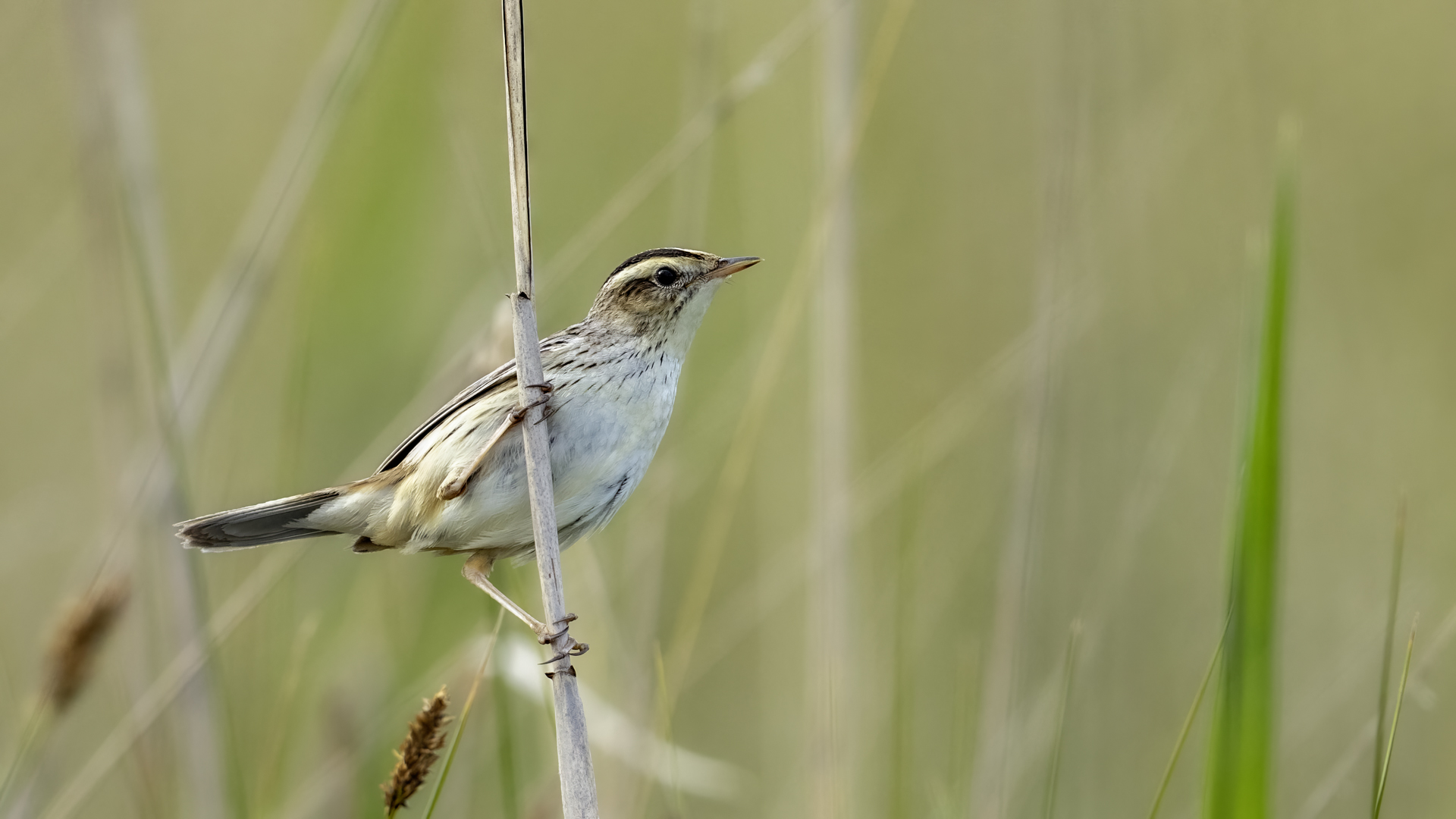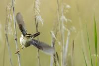 Aquatic warbler finally went to my collection Polish fauna. Finally because i've already tried to photograph it, but my biggest achievement to this moment was hearing the voice of a male without photographing it. Without help and kindness it would still be my plan to photograph Aquatic warbler. Many thanks to Mrs. Ewa and Ania and Mr. Waldek because only thanks to their help, knowledge and care for Aquatic Warbler breeding grounds, the presented gallery was created. I was also a bit lucky. The first 5 hours of waiting for Aquatic Warbler were not optimistic. The wind was quite strong and we had the impression that we were sitting masked in the bird desert. Nothing happened at all. In the meantime, to make matters worse, it rained for a moment and there was no indication that the bird would appear. Aquatic Warblers inhabit open swampy areas, wet meadows with single, short shrubs and grasses up to half a meter high. This strong wind caused that a dozen grams of filigree bird remained hidden in the grass on the ground. Fortunately, an hour before sunset, the wind died down and the entire wetland meadow came alive, and most importantly there was an Aquatic Warbler, or more precisely a male Aquatic Warbler. The first pictures are created and the better voice recording. We heard the Aquatic Warbler before (Jacek best regards), but from a fairly distant distance in the blowing wind, the voice recording was of a very poor quality. It was worth stopping for a moment to have a complete gallery with the sound of this rare bird. In recent years, Aquatic Warbler has been included in comprehensive species protection programs due to the radical decline in the population. Who knows, or thanks to the commitment of many people, you can still observe Aquatic Warbler in Poland. For me it is a photographed 384 species of bird belonging to the fauna of Poland, so another great holiday on (384/462). Species included in the Polish fauna are of greater importance to me than foreign, exotic ones. The years of waiting for the moment of the first meeting with Aquatic Warbler are intensified by the emotions associated with the creation of the first photos of Aquatic Warbler. Aquatic Warbler habitats in Poland constitute about a quarter of the entire world population of this species. Estimates of Aquatic Warbler are quite accurate, because singing males count, which are very active on their small terrain, assuming that the strong wind is not blowing of course :-). Males do not participate in the education of young. It would be quite exhausting for a male who may be the father of young in many nests in the area. Aquatic Warbler flies from Poland from European lairs for the winter and hibernates in Senegal on a fairly small area. The decreasing Aquatic Warbler breeding surfaces, the long exhausting migration means that the future of the Aquatic Warbler is still not optimistic ...