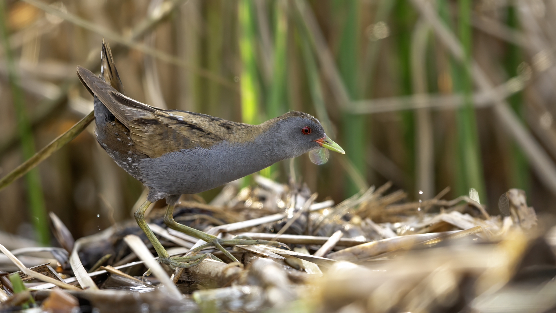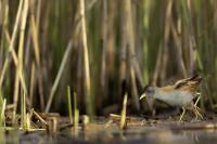 The last representative of the Rallidae family nesting in Poland has its gallery on my website at last. I had many attempts of searching for little crakes and reading information that might be helpful while photographing these birds (I attach two links at the end of this text). I have seen them twice, nay, once I was so close to a little crake when I was sitting camouflaged in a reed field, that the bird peacefully walked by in front of my lens. Of course, I wasn’t able to take any pictures, which is a pity as it’s a beautiful and exceptional bird, in its own way. It is unusual among other rails as its characteristic feature is sexual dimorphism. So far I have managed to take pictures of a male little crake. I hope that’s not the end and a complement to this gallery will be photos of a female little crake and her raven black young at the initial stage of their development. In the place where little crakes occur, if you sit peacefully in water, you can see little crakes searching for food and completely ignoring the human’s presence, even if he/she is not camouflaged. They are of tiny posture. As I looked at some photos of somebody else’s beautiful pictures of little crakes I didn’t really realize what size they are. Only a one to one encounter with a little crake gives you amazing impressions and makes you aware how tiny these birds are. The weight of a little crake does not exceed 70 grams with a wingspan of 40 centimeters. They are a little smaller than starlings. The male little crake approached my lens a number of times at a distance of about a meter, sometimes it would sit down nearby looking at the strange figure sitting in the water, and sometimes it would make its quite characteristic sounds, similar to the sounds of a water rail. I did not have any difficulties with recording its voice. The male sat down on my right and that’s how a good quality recording of its sounds was made – I encourage you to listen to it. Everything was possible thanks to the courtesy of Jacek, who knows so much about little crakes. It is hard to describe how much it takes to know about little crakes, how much time and energy one must devote to create such possibilities to photograph this bird. Jacek, thank you very much for the possibility to encounter little crakes and take the photos presented here. Thanks to your knowledge and work on the little crake outdoor photography site my starting gallery of the little crake is, at least for me, impressing and I will be coming back to it often. I wish it would be similar with other species, but as it often happens in nature photography, one must match many things in just a fracture of a second in order to be able to take a good picture. But such moments happen, and that’s why we photograph…