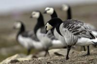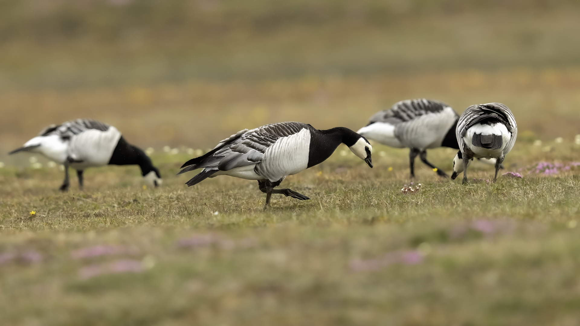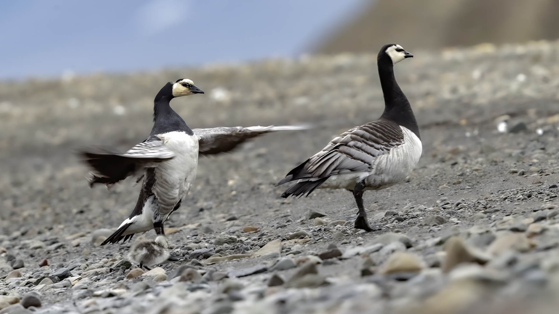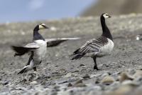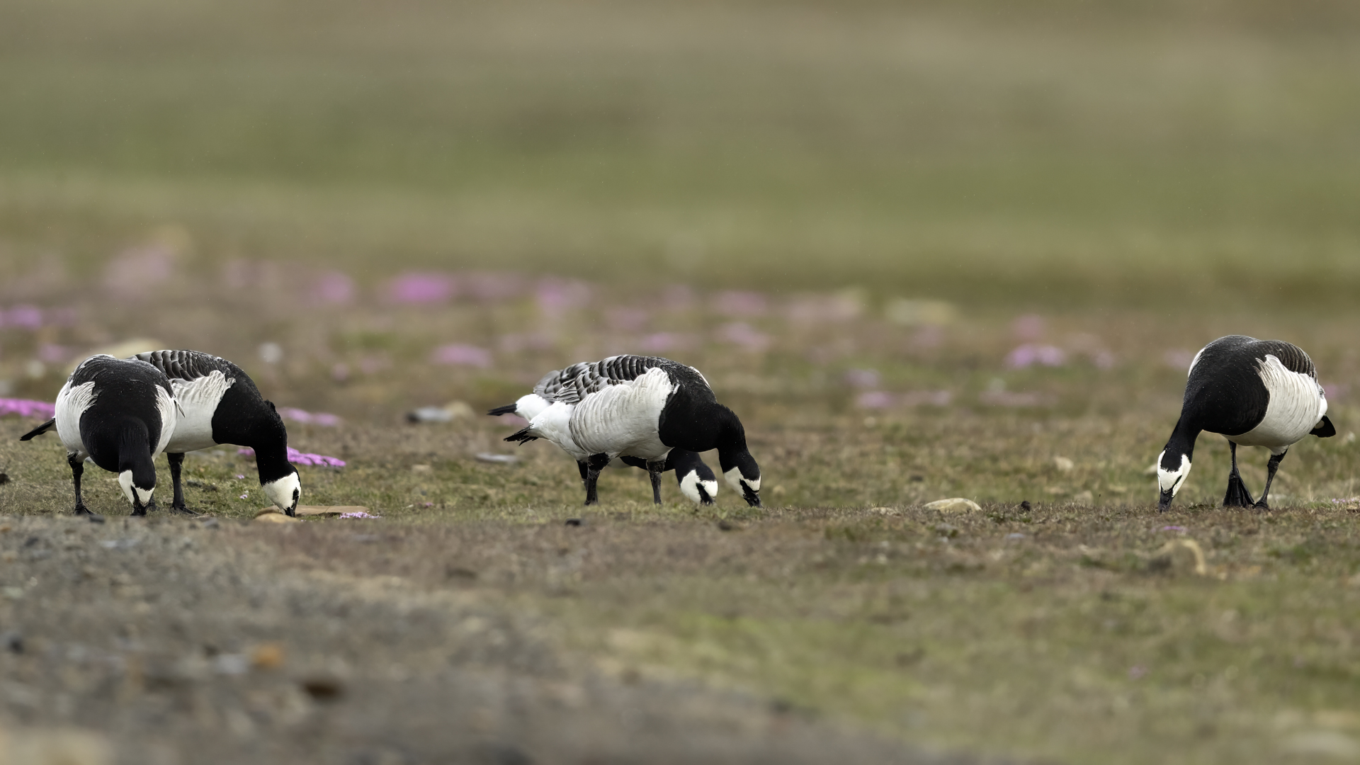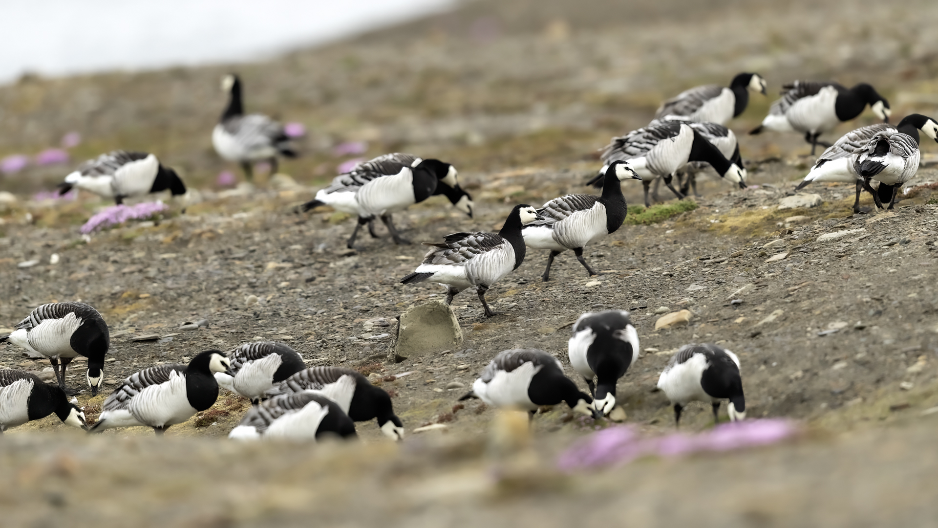 Galeria bernikli białolicej do ubogich na mojej stronie nie należała, ale jeszcze nie ma takiej galerii, której nie dałoby się poprawić. Zwłaszcza na Spitsbergenie, który jest naturalnym miejscem gniazdowania tych ptaków. Miejscami było ich sporo, ale ich zachowanie było podobne, jak w przypadku lisa polarnego. W miejscach oddalonych od siedzib ludzkich zachowywały znaczną odległość, bliżej ludzi, można było podejść i wykonać lepsze zdjęcia. Dodałem też nagranie głosu bernikli białolicej.
