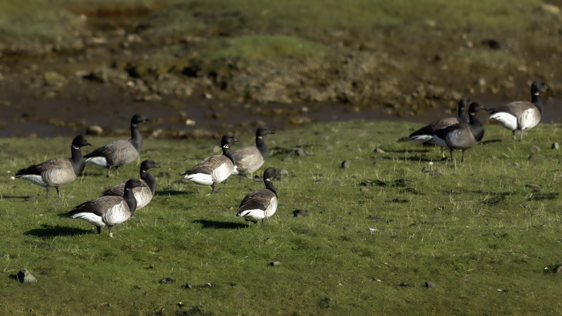Berniklę obrożna udało się spotkać na Islandii kilka razy. Nie zabiegałem o zdjęcia tego ptaka, bo w korelacji możliwości uwiecznienia nowych gatunków na Islandii, to drugie okazało się ważniejsze. Niemniej jednak, powstało kilka zdjęć stada bernikli, które pod tym względem wprowadzają pewną odmienność w mojej galerii tego gatunku.