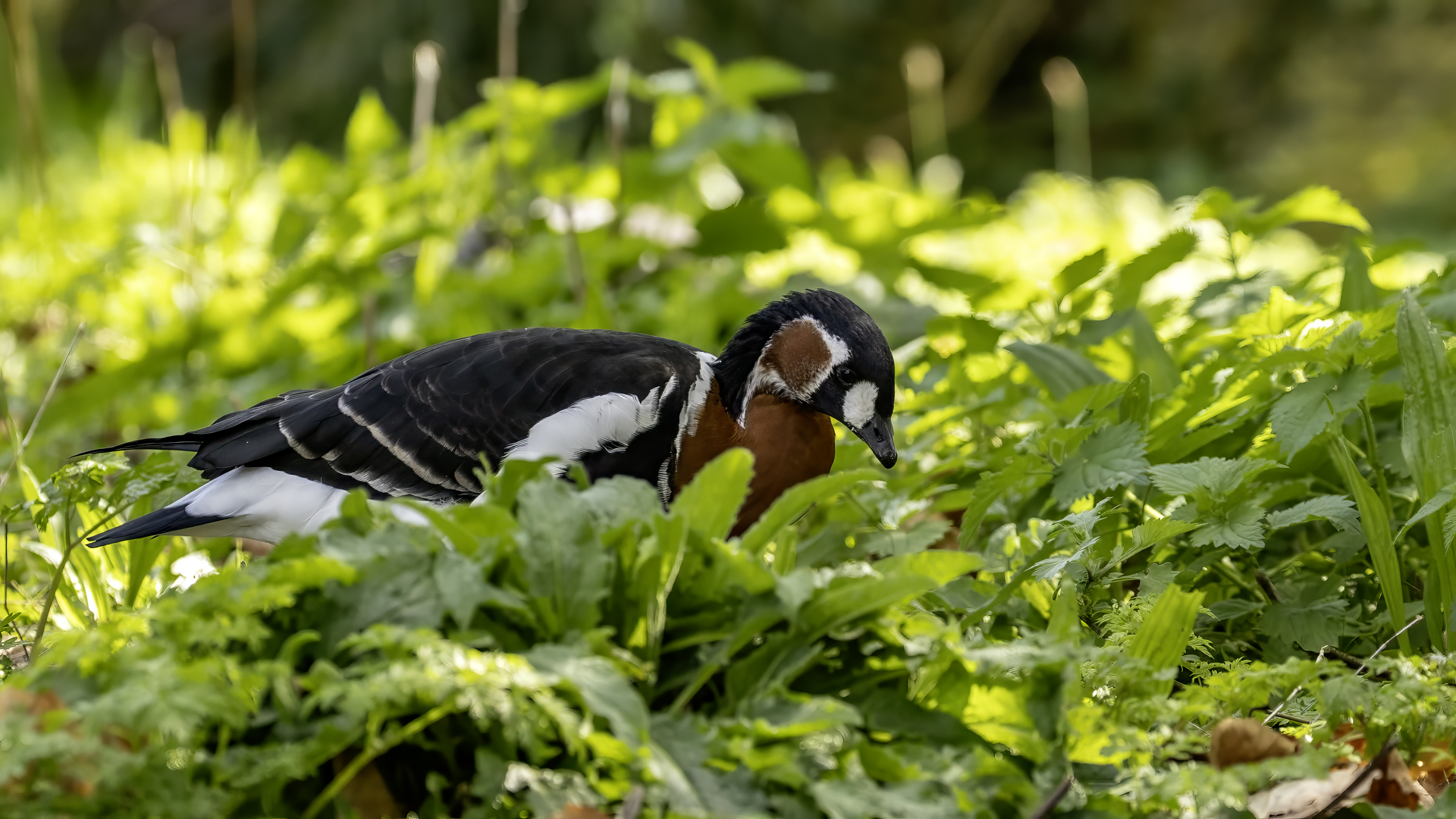 Chyba najpiękniejsza z bernikli dotychczas fotografowanych przeze mnie. Niestety mimo zastosowania konwertera 2x i 600-milimetrowego obiektywu odległość była tak duża, że widać mocne kadrowanie zdjęć. Ale to ważny dla mnie gatunek z dwóch powodów. Pierwszy to taki, że uwiecznienie tego ptaka jest dopełnieniem sfotografowania przedstawicieli rodziny bernikli sporadycznie występujących w Polsce. Druga, że to 400-setny gatunek ptaka zamieszczony na mojej stronie. Bernikla rdzawoszyja jest dość rzadko spotykana w Polsce, bo jej naturalnym środowiskiem jest zachodnia Syberia. Zimują na południu Azji, nad morzem Kaspijskim i w Zatoce Perskiej. Mam nadzieję, że będzie jeszcze okazja i uda się wykonać ciekawsze zdjęcia tej najmniejszej, ale jakże ciekawie ubarwionej bernikli. Tym razem nie było łatwo, bo trudność polegała na dostrzeżeniu jednej, jedynej bernikli, spośród setek, jak nie tysiąca ptaków. Kaczki krzyżówki, gęsi białoczelne, gęgawy, gęsi zbożowe, czajki, czaple siwe i białe, bekasy, biegusy, łabędzie krzykliwe, czarnodziobe- w jednym miejscu to przepiękny, ale rzadki widok w Polsce. Niesamowite, piękne, ciekawe miejsce, do którego trzeba będzie wrócić na wiosnę.  Bernikla rdzawoszyja osiąga masę ciała do 1,5 kilograma, a rozpiętość skrzydeł to około 1,2 metra.
