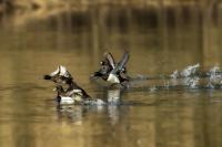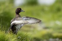 Gdy fotografowałem na Islandii perkozy rogate w ich sąsiedztwie pływały w niewielkiej odległości czernice. Światło na szczęście nie było kontrastowe i udało się uwiecznić subtelności ubarwienia głowy samca czernicy. Zdjęcia trafiły do galerii.