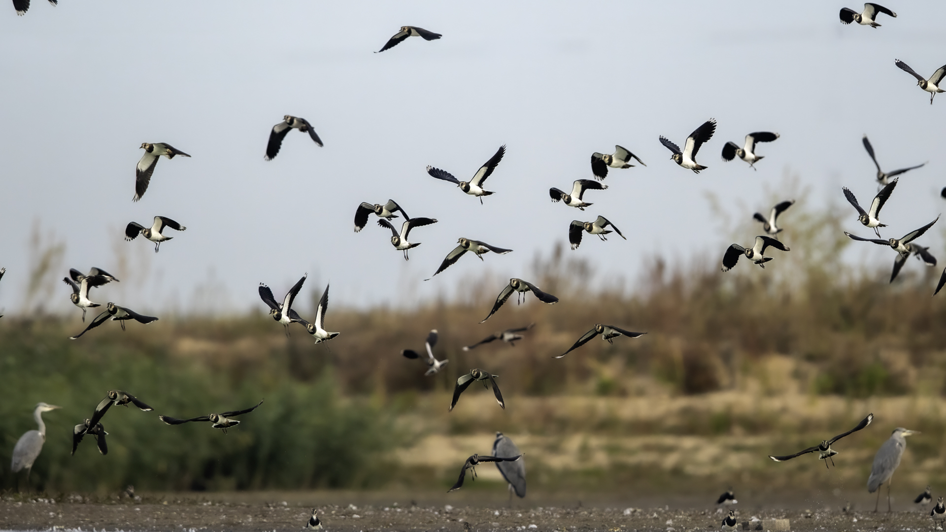 Dodałem zdjęcia podrywającego się do lotu stada czajek.