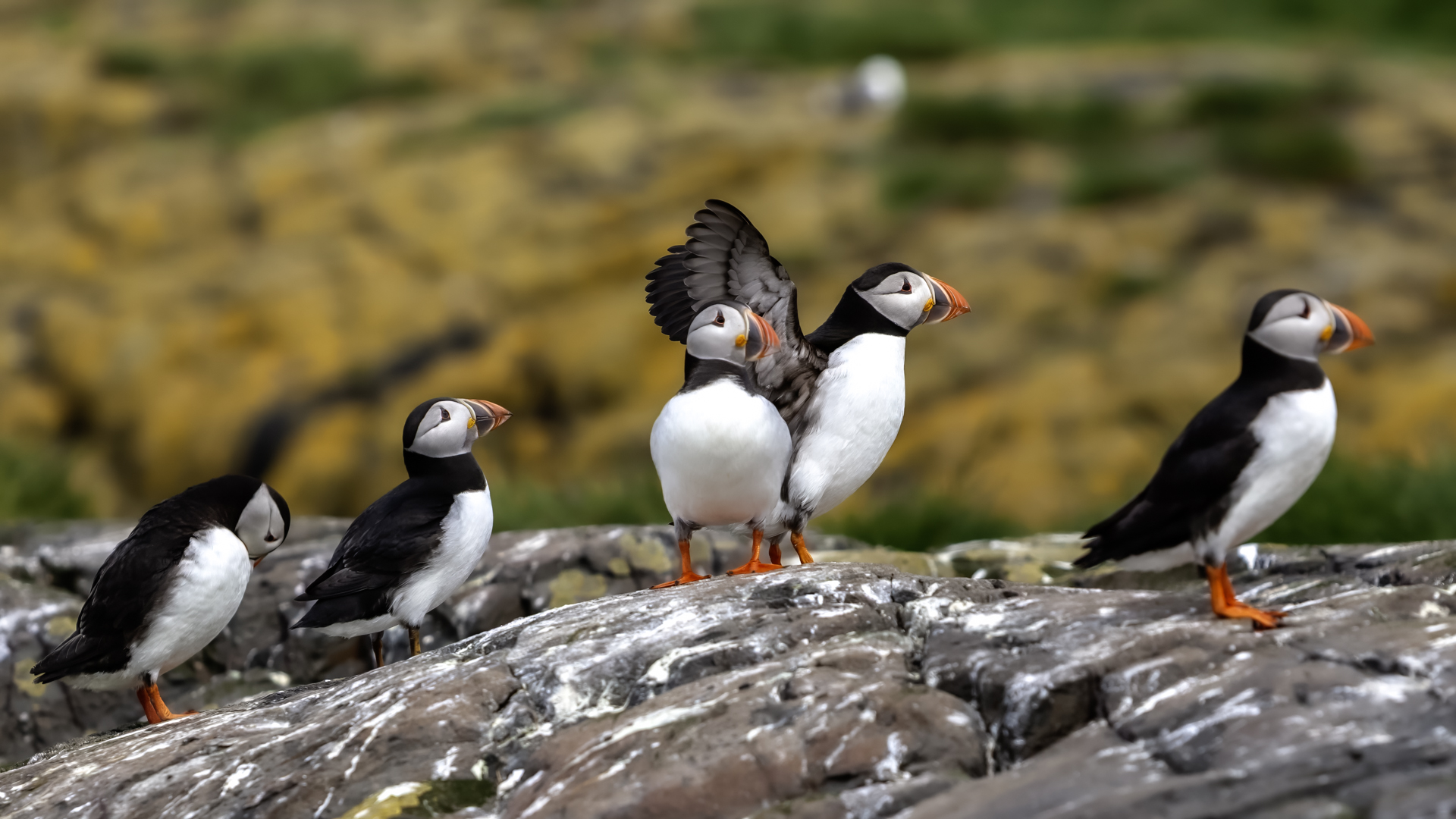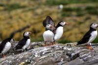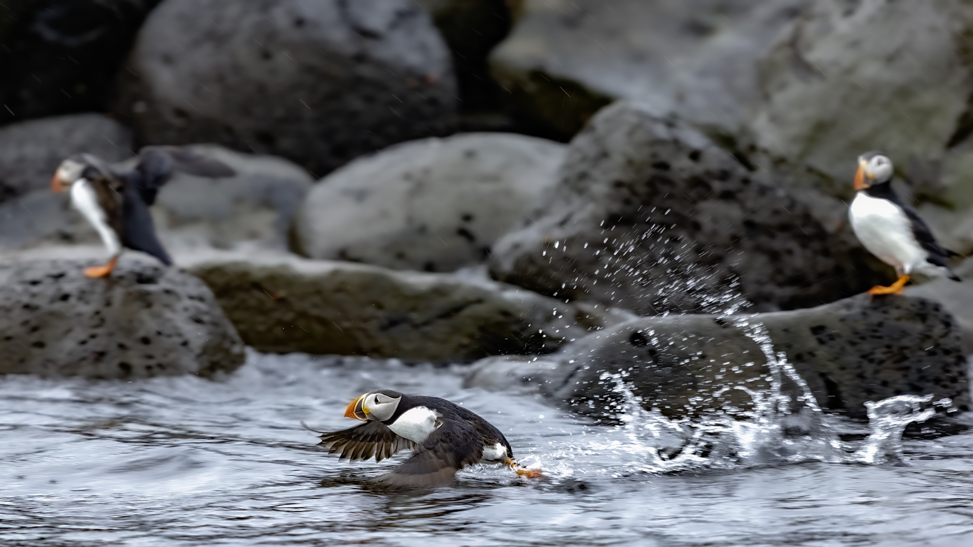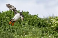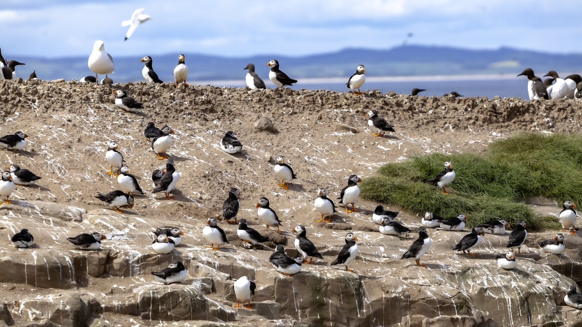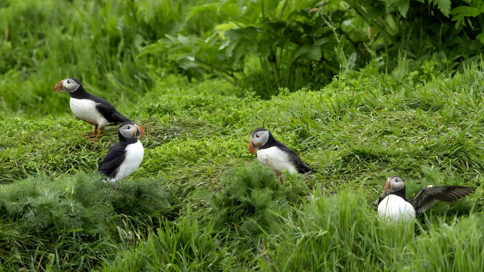 To moje już trzecie spotkanie z ptakami tego gatunku. Najbardziej owocne było pierwsze. Tym razem, mimo, że ptaków były setki, jak nie tysiące, odległość była zawsze dość znaczna. Ale udało się wykonać zdjęcia całych kolonii maskonurów oraz kilka dynamicznych ujęć w locie.