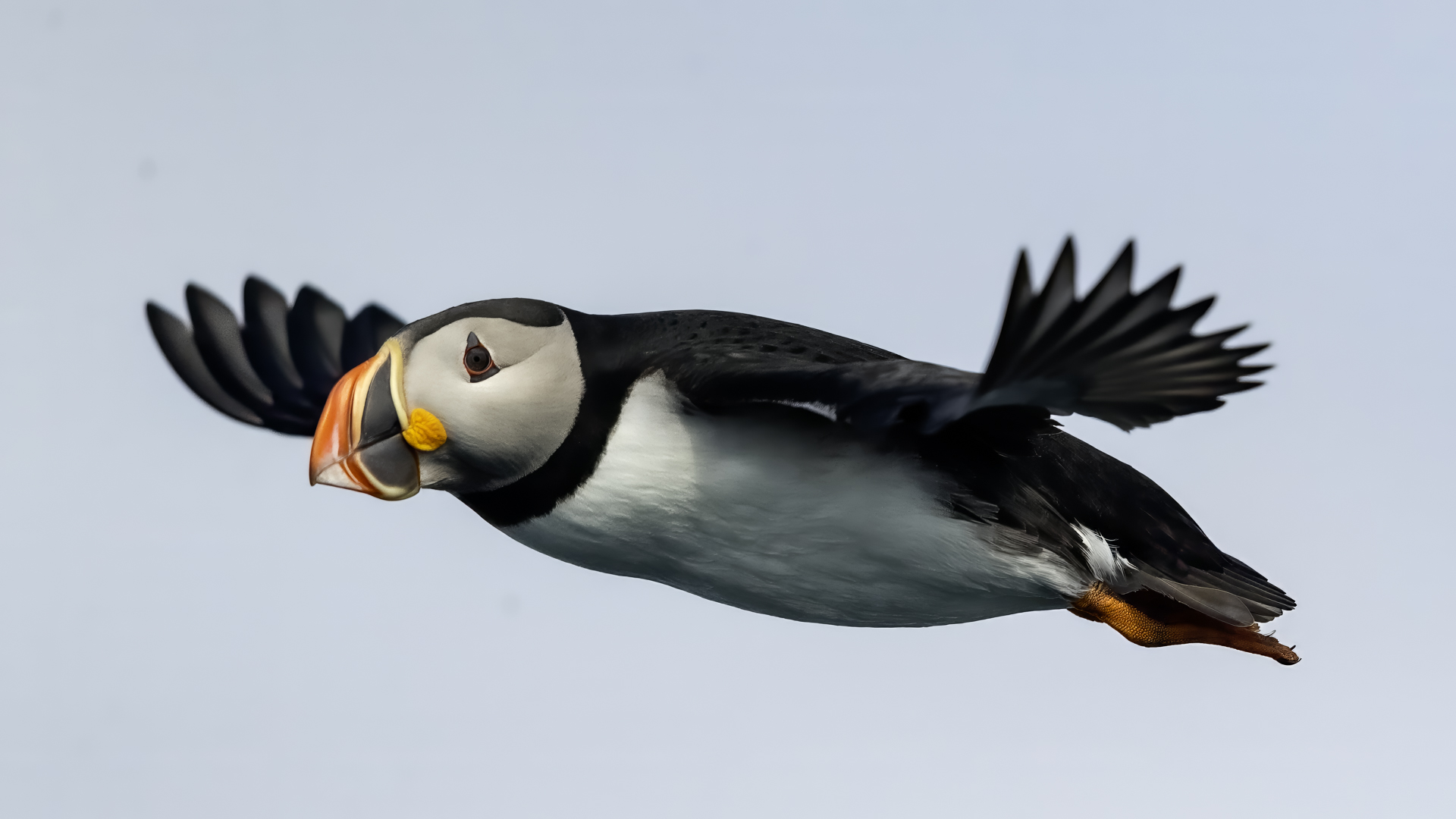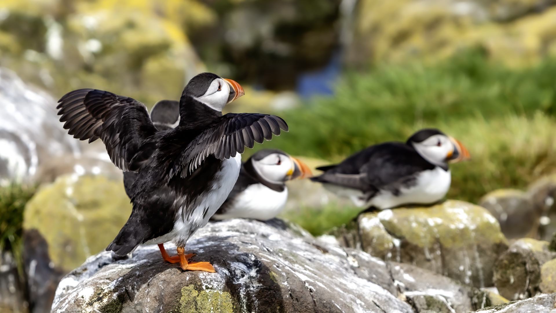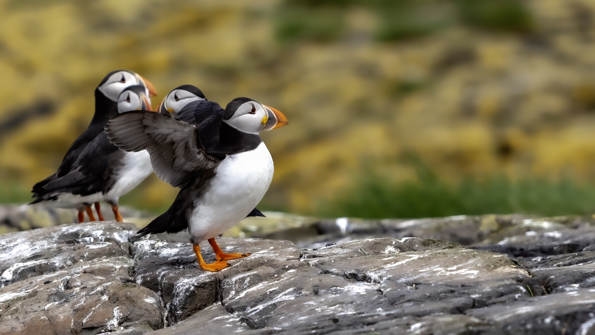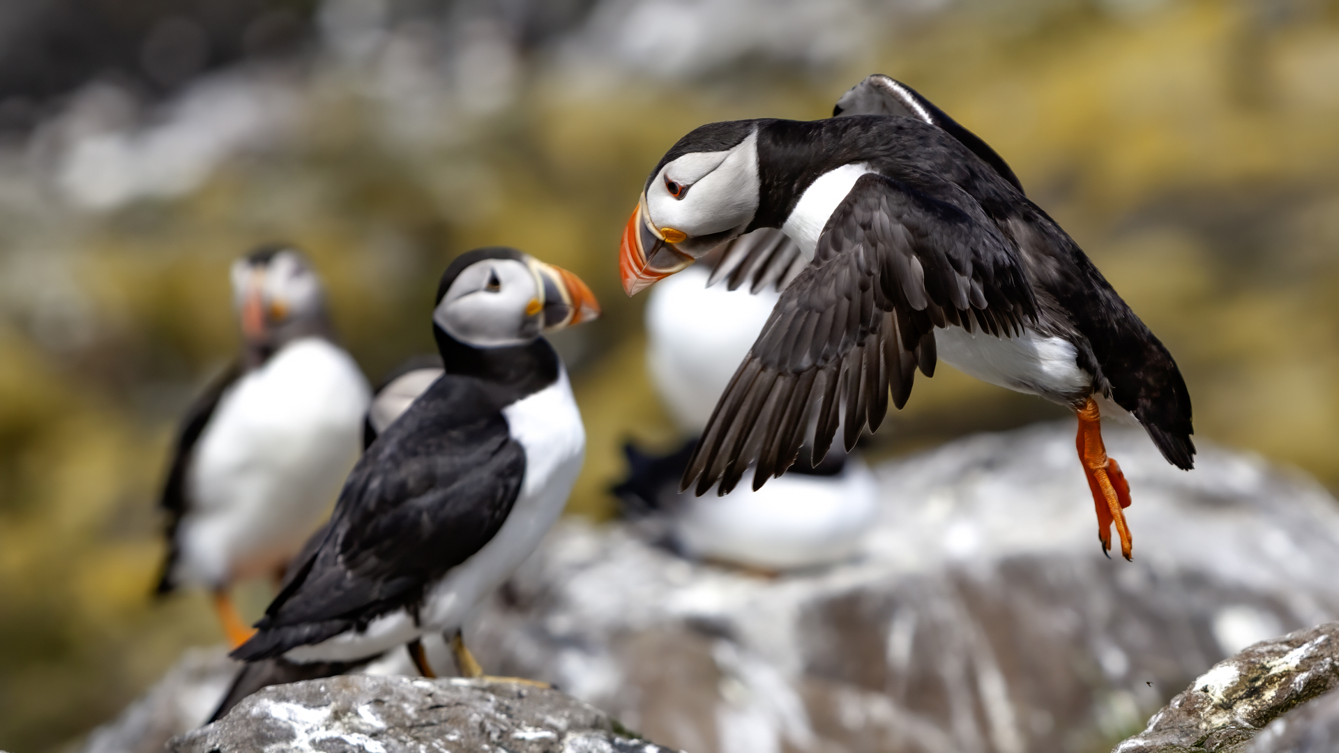 To moje już trzecie spotkanie z ptakami tego gatunku. Najbardziej owocne było pierwsze. Tym razem, mimo, że ptaków były setki, jak nie tysiące, odległość była zawsze dość znaczna. Ale udało się wykonać zdjęcia całych kolonii maskonurów oraz kilka dynamicznych ujęć w locie.