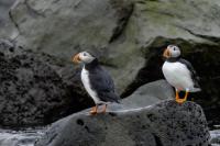 Wyjechać z Islandii bez zobaczenia maskonura to tak jakby być w Afryce i nie zobaczyć słonia. Wszędzie, zwiedzając Islandię widać pocztówki z maskonurami, maskotki maskonurów i inne pamiątki wykorzystujące urok tego bajecznie kolorowego ptaka, nie do pomylenia z innym gatunkiem. Podobno populacja maskonurów na Islandii liczona jest w milionach osobników. Niestety te duże kolonie są najczęściej w niedostępnych miejscach lub po prostu na małych nie zamieszkałych wyspach. Tym razem nasze spotkanie nie było tak bliskie, jak w Szkocji, bo obserwowałem ptaki z łodzi z kilkunastu, kilkudziesięciu metrów. Niestabilna łódź utrudniała wykonanie zdjęć, podobnie z resztą jak aura. Niemniej jednak, maskonurów były setki, jak nie tysiące i najtrudniej było zdecydować, którego na maskonura się zdecydować, by wykonać dynamiczne zdjęcia tego pięknego ptaka. Widok kolonii tych ptaków jest naprawdę nieprzeciętny i przy każdej okazji, warto skorzystać i wrócić do obserwacji tych ptaków. Zaszły zmiany w galerii, ale że dotychczasowe zdjęcia były dobrej jakości, to nie przebudowywałem galerii, ale dodałem na jej końcu nowe zdjęcia z Islandii