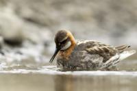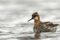 Ciekawy filigranowy ptak żerujący na wodzie w strefie przybrzeżnej, ale także na oczkach wodnych i  jeziorach. Ciekawy z dwóch powodów. Pomijam jego urok, ale gdy siedziałem spokojnie na brzegu jeziora bez większych problemów zawsze przypływał po chwili na odległość pozwalającą wykonać zadowalające zdjęcia. A odległość ta musiała wynosić zaledwie kilka metrów, bo jest to nieduży ptak. Niewiele większy od wróbla, bo waga jego to około 45 gramów, a rozpiętość skrzydeł to około 35 centymetrów. Porównanie z wróblem w przypadku Islandii chyba nie jest trafione, bo na Islandii nie ma wróbli. Tak, jest to pierwszy kraj, w którym nie widziałem wróbli, czy mazurków. Drugim powodem jest odwrócony dymorfizm płciowy. Zazwyczaj to samce w przyrodzie są ciekawiej, barwniej wybarwione, aby jak najlepiej się zaprezentować w walce o względy samicy. U płatkonogów to samica ma piękniejsze ubarwienie niż samiec. Ze znalezieniem płatkonogów nie było problemów. Zdarzyło się raz, że przy drodze wjazdowej do niewielkiego miasta, przy skrzyżowaniu ulic, gdzie był niewielki staw naliczyłem 6 płatkonogów. Prezentowane zdjęcia powstały przy okazji fotografowania innych ptaków, m.in. perkozów rogatych czy lodowca.
