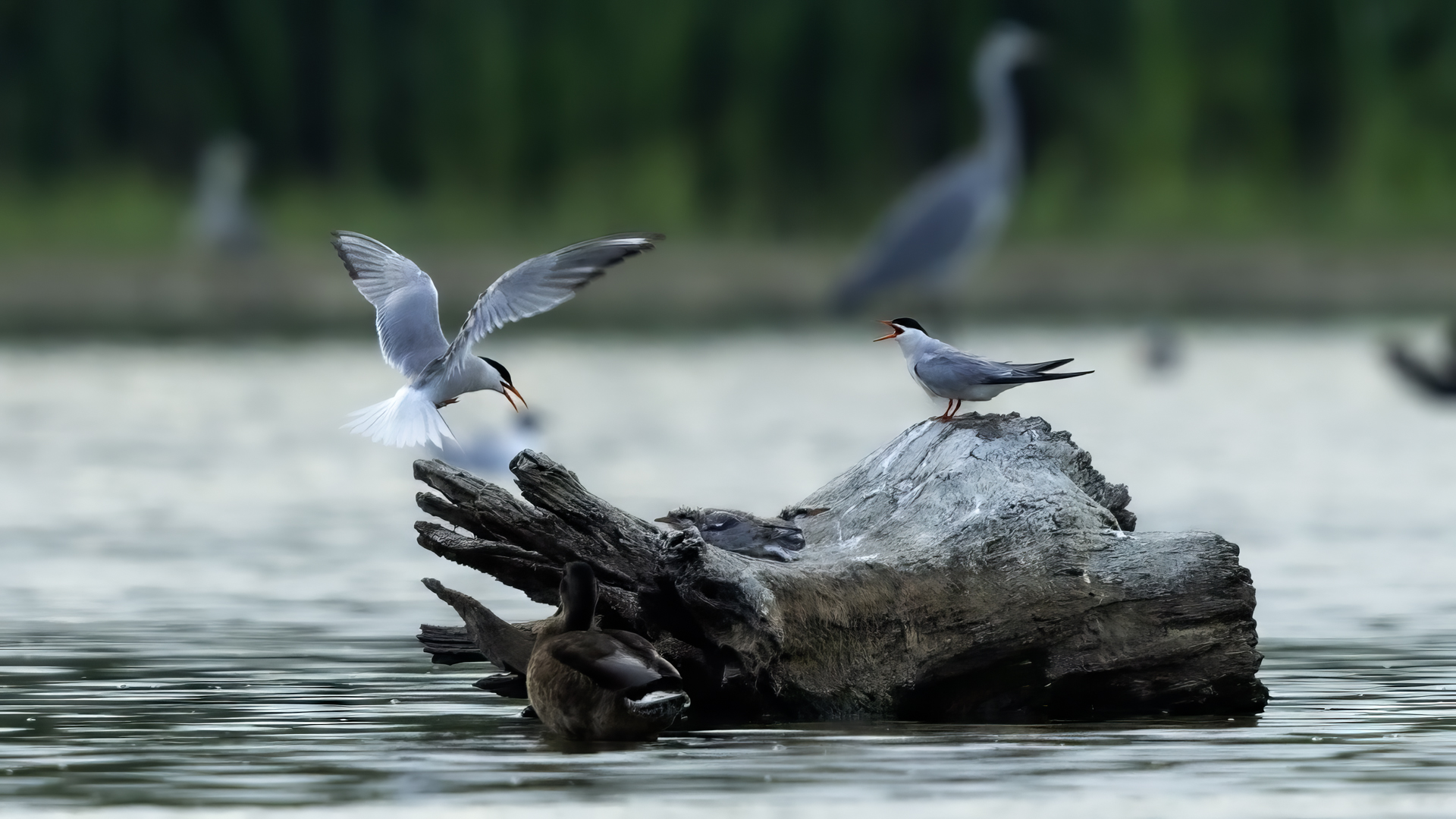 Fotografowałem już w wielu miejscach, ale na barce rzecznej, która jest jednocześnie ptasią kolonią to jeszcze nie. Miejsce i wrażenia niesamowite. Tak bliski kontakt z przyrodą zawsze musi zrobić wrażenie. Na niewielkiej przestrzeni kilkadziesiąt par rybitwy rzecznej założyło gniazda. A na dachach czatowni mewy śmieszki miały swoje. Jedno z takich gniazd miałem kilkanaście centymetrów nad głową podczas fotografowania. Do samej czatowni zaglądały do mnie czasami podrośnięte pisklęta rybitw. Znudzone oczekiwaniem na rodziców chodziły po pokładzie barki. Jedno nawołanie rodzica i maluch pospiesznie wracał do miejsca karmienia. Nie można przecież przegapić posiłku przyniesionego przez niego. Z tymi posiłkami było już duże zamieszanie. Jak rodzic przyniósł małą rybką nie było problemów. Pisklę natychmiast połykało ją i po problemie. Większe ryby, sprawiające problem w połknięciu, stwarzały zamieszanie i zagrożenie dla potomstwa rybitw. Po przyniesieniu takiej dużej zdobyczy, maluch przez dłuższą chwilę próbował połknąć posiłek. Dwójka rodziców czuwała nad jego bezpieczeństwem, bo chętnych do przejęcia zdobyczy było wielu. Niestety trwało to tak długo, że nawet oni się zniechęcili pilnowaniem malucha. W tym czasie inna rybitwa zaatakowała pisklę i była na tyle agresywna i zdeterminowana, że po nierównej walce wyrwała małemu posiłek z przełyku. Po takiej jednej potyczce maluch nie przeżył. Rybitwa wysiadująca jaja nieopodal podeszła do niego, kilkoma dziobnięciami upewniła się, że maluch nie żyje, zabrała go do dzioba, zrobiła krótki lot nad wodą, gdzie go wyrzuciła. Ciekawym też było obserwowanie „nieudanego” karmienia młodej rybitwy. Jeżeli w chwili karmienia, a właściwie podawania złowionej rybki pisklakowi, ta upadła na piasek i była cała nim obklejona, po chwili rodzic, tak opiaszczoną rybę, zabierał do dzioba, wykonywał krótki lot nad wodą, by opłukać zdobycz z piasku. Po oczyszczeniu z piasku wracał ze „starą” zdobyczą na kolejną próbę karmienia. Nie wiem, czy piasek szkodzi pisklakom, czy jedzą wyłącznie świeżo złowione ryby, ale raz dało się zaobserwować cztery próby karmienia, każdorazowo po spłukaniu tej samej zdobyczy. Tych kilka godzin spędzonych wśród kolonii rybitw usytuowanej na 808 kilometrze Wisły (między Świeciem a Chełmnem), a tyle ciekawego udało się zaobserwować i zobaczyć jakimi prawami rządzi się kolonia tych ptaków. Tak, jak ptaki rywalizują o pokarm, są dość zaborcze wobec siebie i cudzych piskląt, jednoczą się, gdy pojawi jakikolwiek intruz w okolicy. Nawet gołąb, który przysiadł na chwilę na czatowni spowodował wspólny atak na niego i przegnanie go z ptasiej kolonii. Na barce stworzono idealne warunki do obserwacji ptaków. Z fotografowaniem już tak łatwo nie było. Uzyskanie dobrej perspektywy wiązało by się z koniecznością fotografowania ptaków z kilkudziesięciu centymetrów. Tak, tyle dzieliło mnie od „pierwszej linii” gniazd rybitw, do których dzieliła mnie niewysoka przegroda. Dobrze, że zabrałem kilka obiektywów, nie wiedząc czego się można spodziewać w tych nowych dla mnie warunkach. Przydał się ostatecznie najkrótszy 70-200 mm i konwerter. Fotografowanie w pozycji leżącej dla tak licznej populacji na tak małym terenie chyba nie ma większego sensu i brakowało też miejsca na to. Podniesienie obiektywu do pozycji siedzącej daje większe pole obserwacji, ale z nieciekawej perspektywy. Niemniej jednak z tej pozycji powstało wiele dynamicznych ujęć, takich jak najbardziej cenię i do których lubię wracać. Udało się też na potrzeby naukowe zrobić kilkadziesiąt zdjęć rybich zdobyczy oraz zdjęcia obrączek ptaków. Tych kilka godzin spędzonych w kolonii rybitw rzecznych pozwoliło na wykonanie zdjęć do ciekawej i nie dokumentacyjnej już galerii rybitwy rzecznej. Pierwszej spośród galerii rybitw, którą wykonałem z czatowni. A wszystko znów dzięki ludzkiej życzliwości. Jarku, Jurku serdecznie dziękuję za zaproszenie na taaakie spotkanie z naturą, które było kompletnie nowym dla mnie doświadczeniem. Zapewniam, że było warto, ale zobaczcie i posłuchajcie sami, zapraszam do galerii….