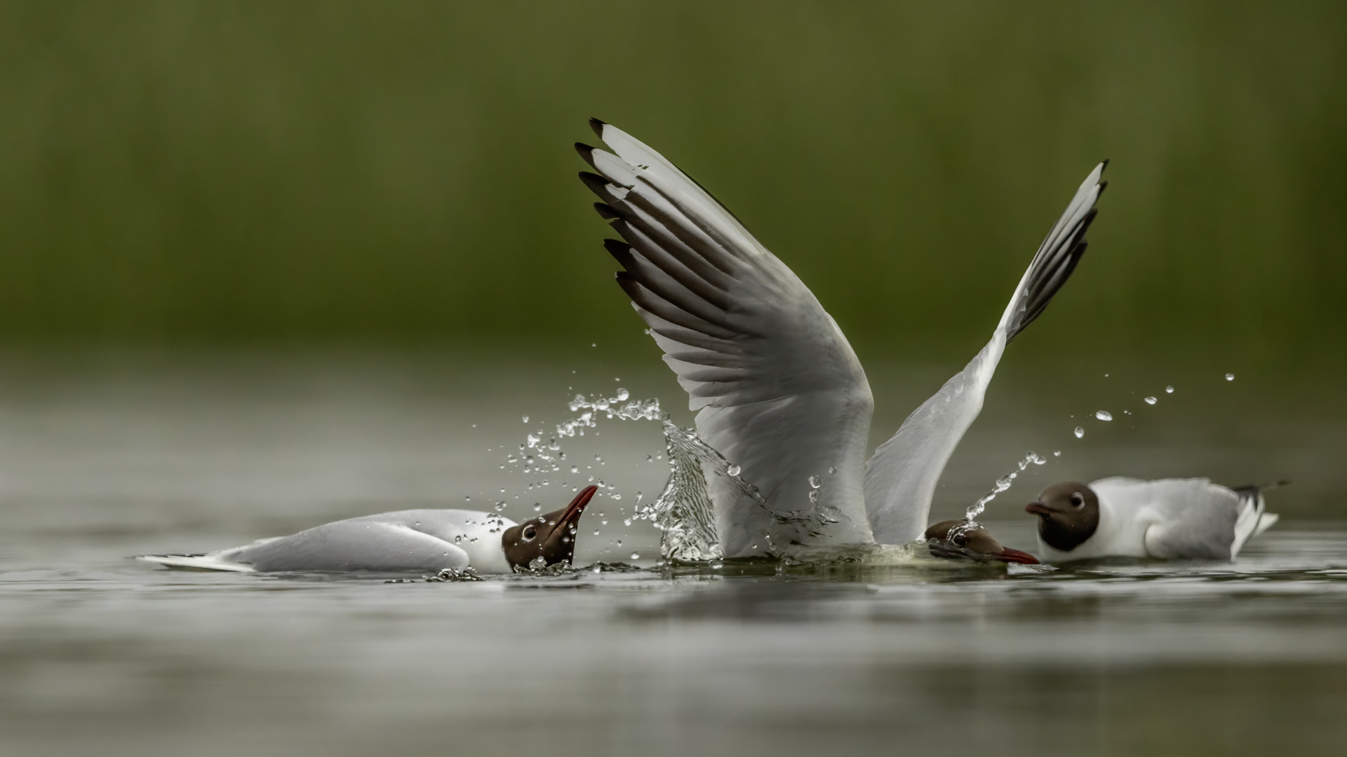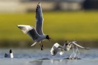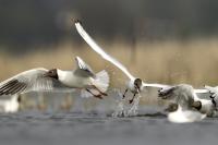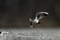 Mewy śmieszki tak się u nas zadomowiły, że można je chyba fotografować przy wszystkich zbiornikach wodnych i co gorsza przy wysypiskach śmieci. Tym razem był to staw rybny (Panie Karolu dziękuję). Mewy były sfotografowane niejako przypadkowo, moim celem były perkozy, głowieńki, czernice. Mewy były bardzo czujne, zwłaszcza widząc, że jakiś inny ptak coś upolował. Natychmiast nadlatywały próbując odebrać zdobycz myśliwemu. W ostatnim czasie przy okazji wyczekiwania na inne gatunki, udało się zrobić dynamiczne ujęcia tego ptaka, zasilające galerię mewy śmieszki.