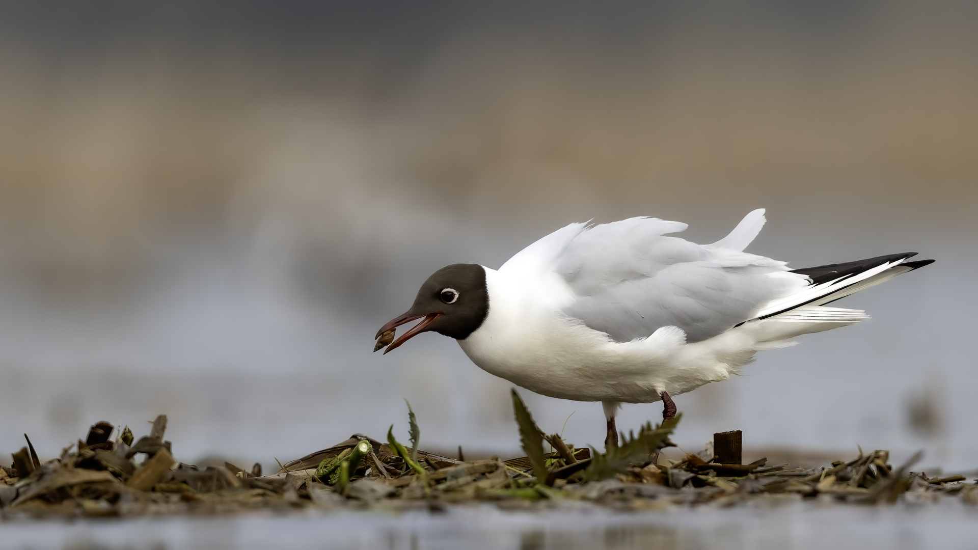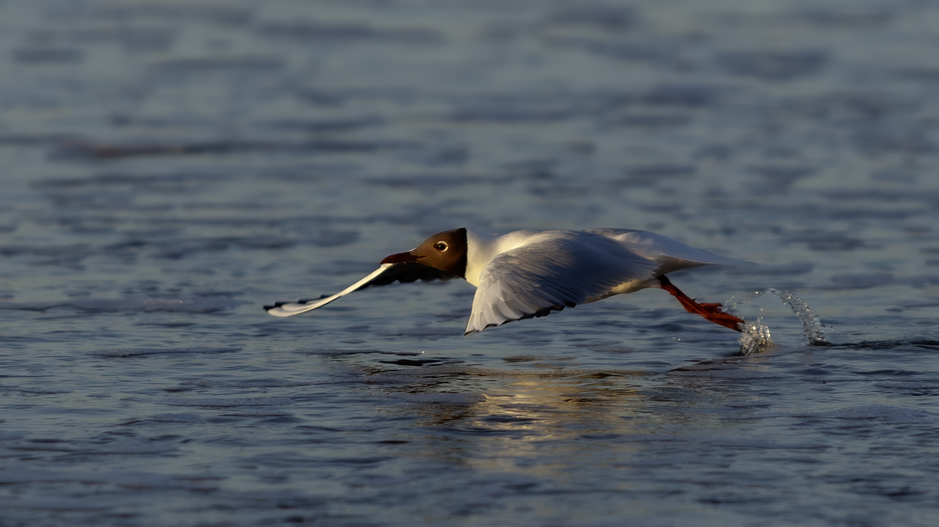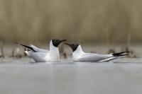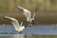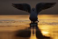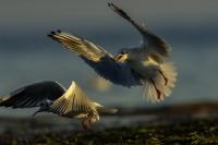 Niemal wszystkie zdjęcia tego ptaka powstały niejako przypadkiem, przy okazji fotografowania innych gatunków. Niemniej jednak przy okazji wrześniowego fotografowania ptaków na przelotach na polskim wybrzeżu udało się „pstryknąć” jedno zdjęcie do którego pewnie będę wracał nie raz. Spacerujące mewy zauważyły, że pod siatką maskującą na plaży, o wschodzie słońca ukryty jest człowiek. Jak to odkryły, to zachowały się tak jak to przedstawia załączona fotografia dwóch mew podnoszących się do lotu z wydającymi ostrzegawczymi okrzykami, oświetlone słabym, pomarańczowym światłem wschodzącego słońca. Na nagranie nie było już czasu, ale kilka zdjęć zasiliło moją galerię.
