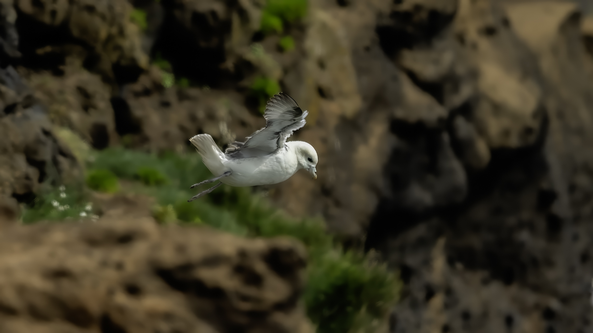 Na loty fulmarów można patrzeć bez końca. Przepięknie szybują. Widziałem na Islandii wiele kolonii fulmarów, a ich populacja jest szacowana na Islandii na milion par (2014). Nie są płochliwe i łatwość ich fotografowania nad brzegiem morza kojarzy mi się tylko z naszą mewą śmieszką, której fotografowanie jest w Polsce podobnie proste. Mowa oczywiście o zdjęciach statycznych. Zdjęcia ptaka w locie, to już inna sprawa. Szkła o średniej ogniskowej zdecydowanie lepiej się sprawdzają i pozwalają  osiągnąć lepsze efekty. Fulmar należy do rodziny burzykowatych, jego rozpiętość skrzydeł może przekraczać jeden metr a masa ciała może osiągać 700 gramów.
