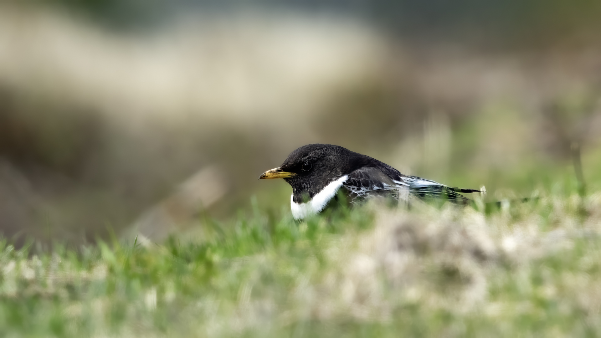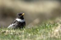 Wreszcie po czterech latach nastąpiło moje drugie spotkanie z drozdem obrożnym. Tak samo przypadkowe i nieplanowane jak pierwsze, ale o ile bardziej owocne. Powstało wreszcie kilka dobrych zdjęć tych pięknych ptaków, no i nagranie głosów drozdów. Podziękowania dla Kaliny i Jacka za informację z obserwacji drozdów. Drozdy występowały u podnóża Śnieżki, ale po czeskiej stronie. Było ich kilka i niestety były dość płochliwe. Ciekawe, że można było powoli zmniejszać dystans do ptaków żerujących na trawie na otwartej przestrzeni i zrobić prezentowane zdjęcia. Kiedy wzbijały się w powietrze, prawie zawsze siadały potem w takiej gęstwinie, że trudno było o zdjęcie. Kilka godzin prób i jedno-zdjęciowa galeria zmieniła się nie do poznania, i to z nagraniem głosów drozdów obrożnych.