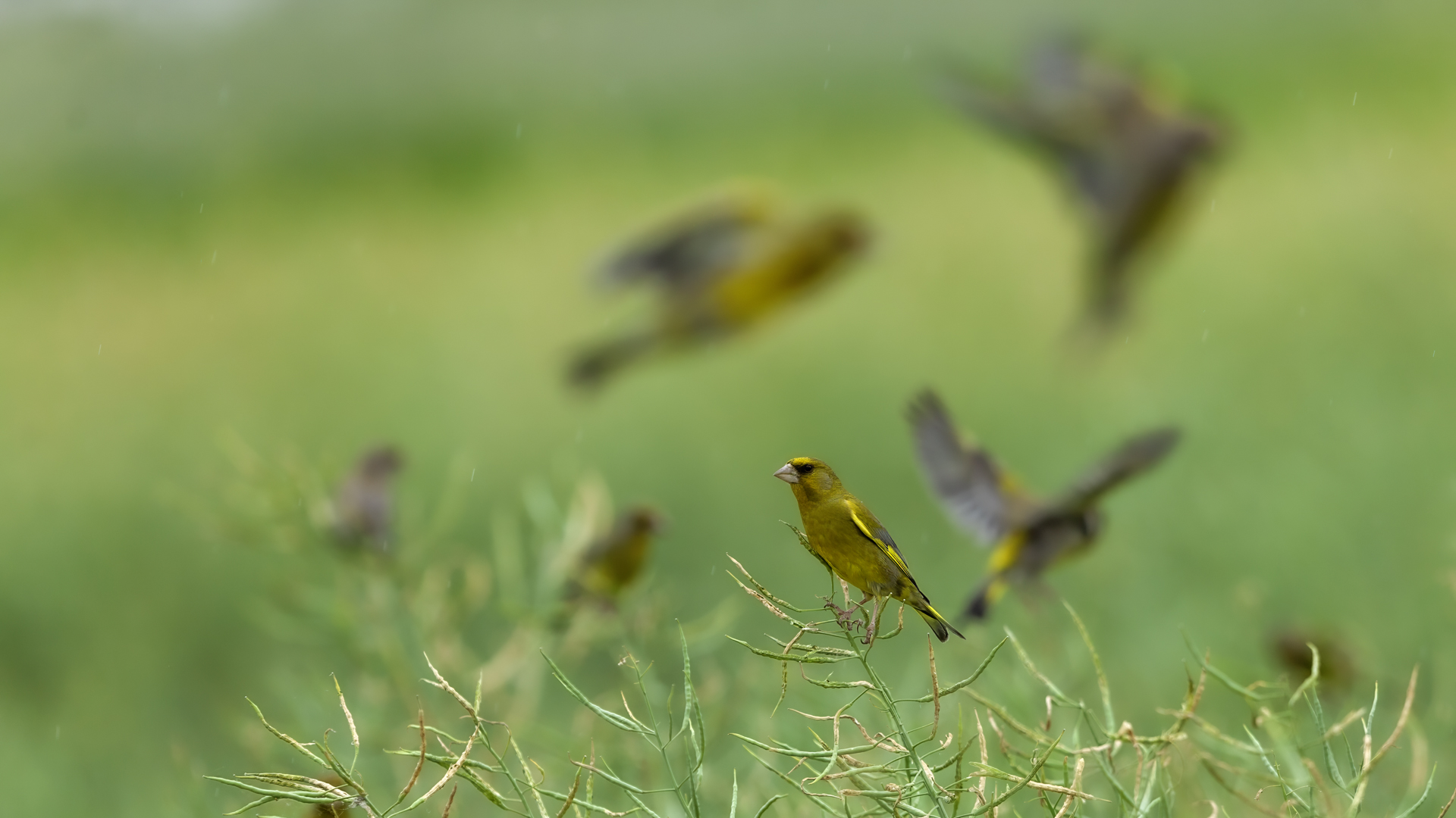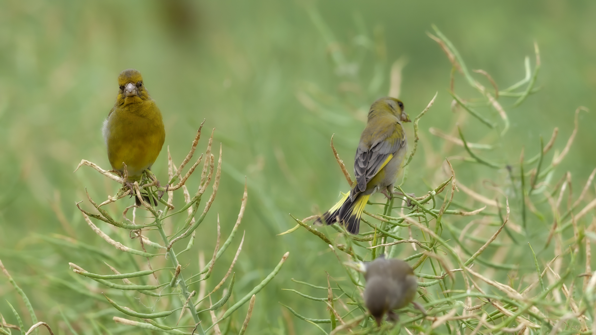 Obserwując pola i widząc „eskadry” wróblowatych ptaków, jest duże prawdopodobieństwo, jeżeli jednak brak będzie jaskrawych „szczygłowatych” akcentów, że będą to dzwońce. Obserwowałem, je na polu z dojrzałym rzepakiem. Z daleka łatwo je pomylić z wróblami, bo wielkością są niemal identyczne, z bliska widać już ich oliwkowy urok. Masa ciała dzwońca to około 30 gramów i osiągają rozpiętość skrzydeł niespełna 30 centymetrów. Jeżeli będziemy się spokojnie zachowywać, to bez maskowania, a najlepiej z samochodu pozwolą na zrobienie zadowalających zdjęć, nie mówiąc już o zimie, kiedy w czasie silnych mrozów pojawiają się w miastach na drzewach i krzewach i zrobienie zdjęcia z 7-8 metrów nie jest problemem.