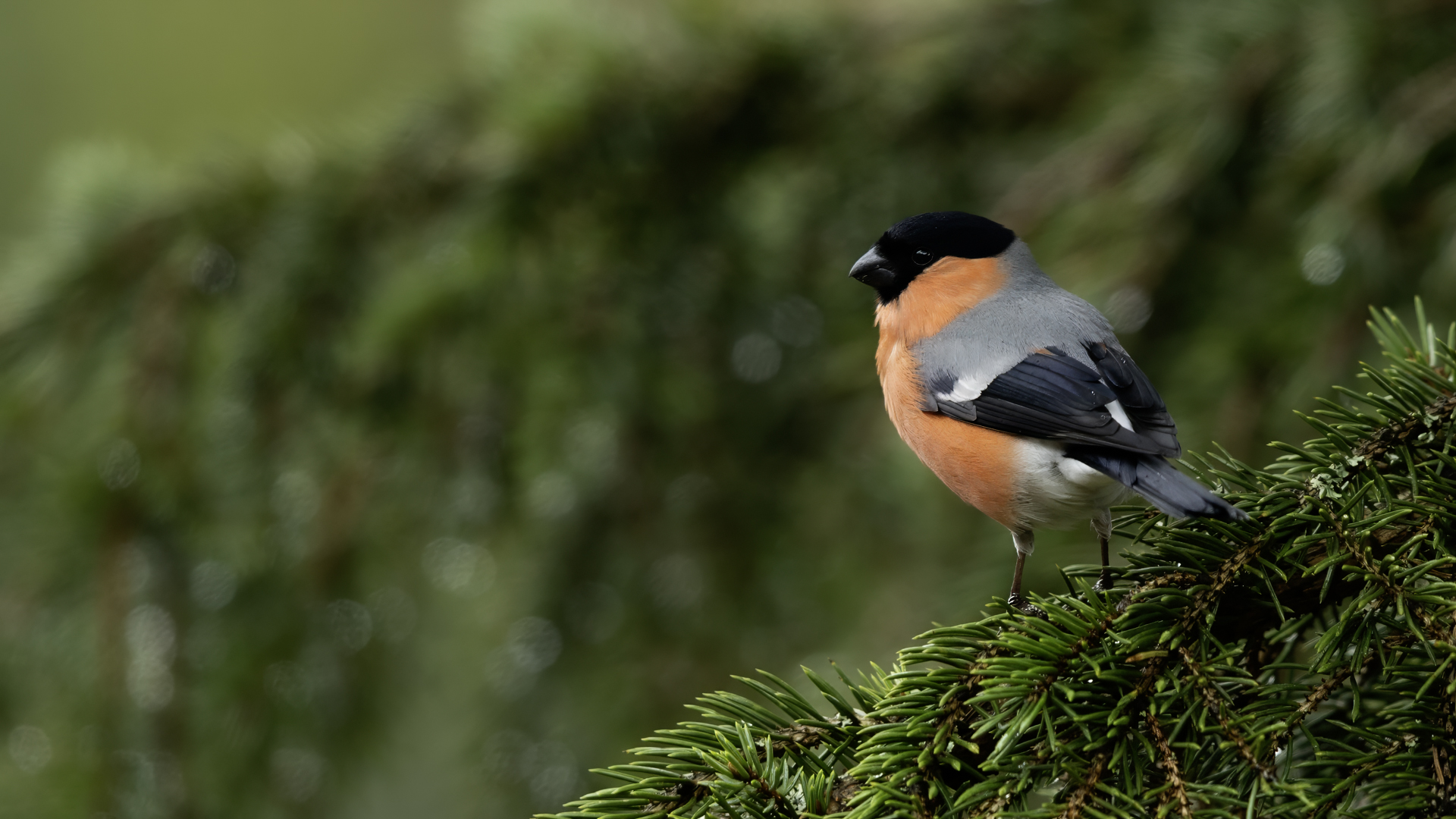 Dodałem praktycznie jedno zdjęcie gila, ale było to najbliższe moje spotkanie z tym ptakiem. Godzinę po wschodzie słońca gil usiadł na świerku przy moim balkonie w hotelu w Zakopanem. Światła było nieco za mało, a zdjęcie wykonane było bez statywu, "z ręki", co wpłynęło na jego jakość. Ale soczysta zieleń świerku w zestawieniu z barwami gila musi się podobać i musi trafić na pamiątkę tego spotkania do mojego wirtualnego pamiętnika.