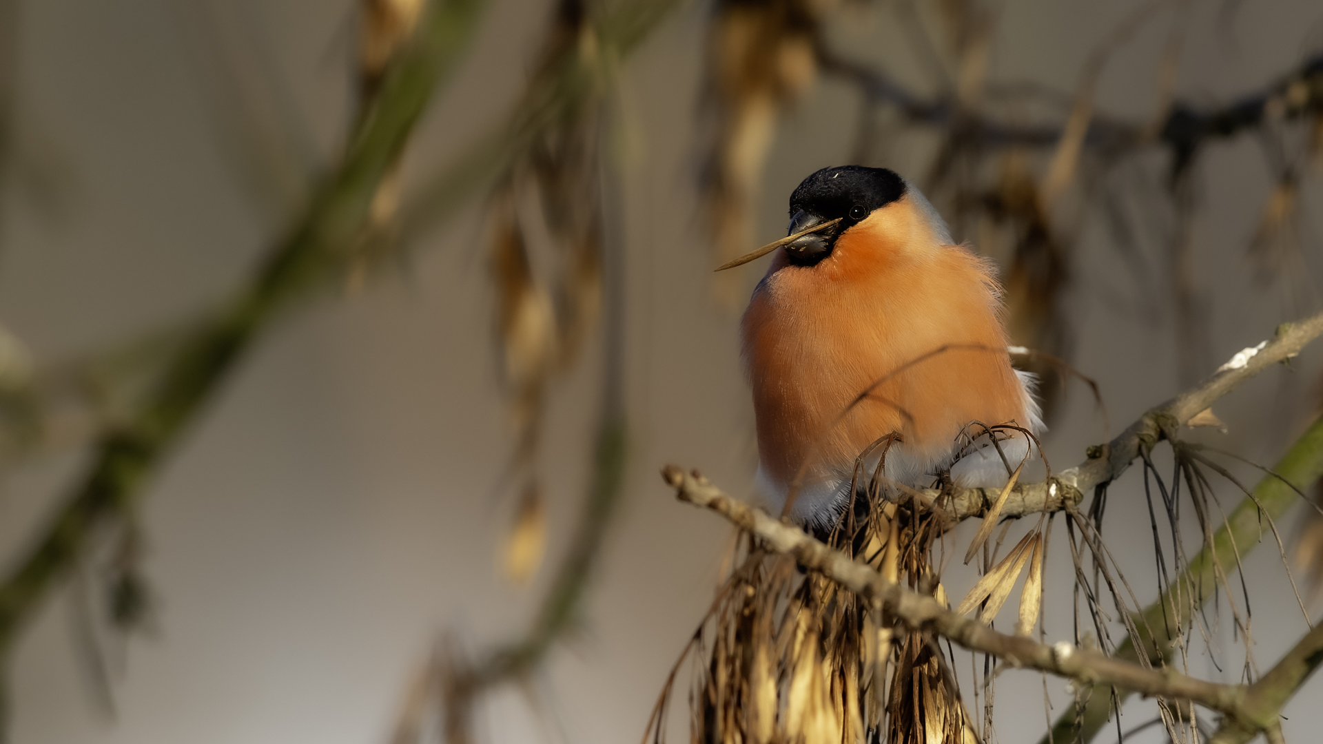 Z uwagi na panujące mrozy można było się tego spodziewać, że uda się sfotografować gile. Na początku małe stadko żerowało na jesionie i to o tyle dobrze, że prawie na wysokości wzroku. Powstało kilka zdjęć z bliskiej odległości o ciekawej barwie światła. Po chwili stadko zredukowało się do jednej pary, ale za to pozwalające sobie wykonać zdjęcia z bardzo bliskiej odległości. Patrząc na dotychczasowe zdjęcia i ilość nowo-powstałych, należało przebudować galerię, co niniejszym uczyniłem i zapraszam do niej.