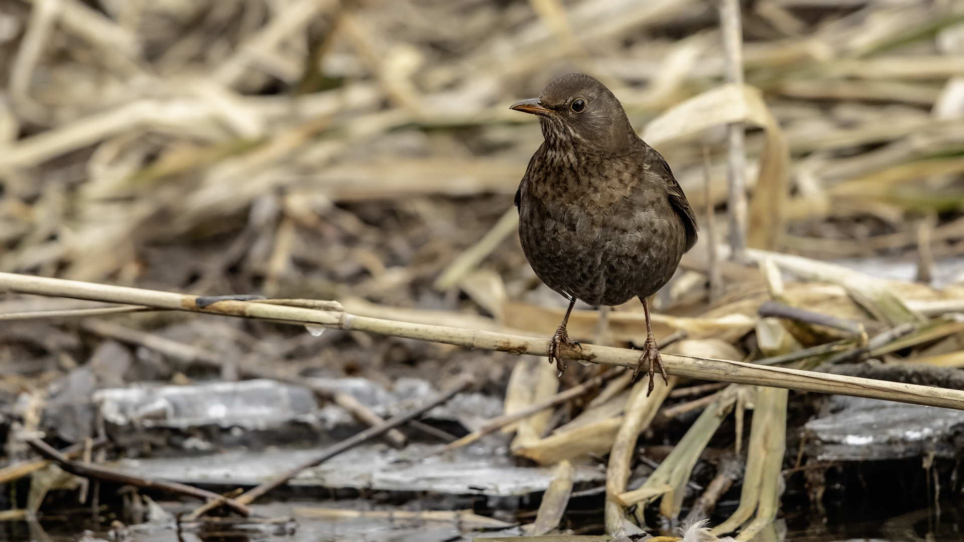Kosa, a właściwie samicę kosa zapamiętam na całe życie z racji tego, że pierwsze moje, moim zdaniem naprawdę udane przyrodnicze zdjęcie, moją „nową” 400-setką nad Wartą zrobiłem właśnie samicy kosa. Latem przed szóstą rano, bez maskowania usiadłem pod zwalonym drzewem ustawiłem statyw i skierowałem obiektyw w prawo na mini plażę, na której wysypałem trochę ziaren. Po godzinie obserwowania się nawzajem z kosem, pliszkami i wykonaniu kilku zdjęć pliszki siwej, ale ze znacznej odległości wyszła samica kosa i wręcz rozpoczęła pozować. Wschodzące słońce pięknie oświetlało połowę ptaka, fotografowanego z 6-7 metrów. Po godzinie fotografowania chciałem zobaczyć, czy w głębi do pliszek siwych nie dołączył jakiś ptak, bo dotychczasowa ich aktywność się wzmogła, a zwalone pnie utrudniały obserwację. Powoli podszedłem kilka metrów w kierunku zwalonych drzew, a kos do tego stopnia mnie zaakceptował, że musiałem uważać, aby go nie nadepnąć. To było naprawdę bliskie spotkanie z naturą, nie mówiąc już o przepływającej nurogęsi z gromadką młodych na rzece. Takie zdarzenia spowodowały, że fotografia przyrodnicza coraz bardziej mnie wciągała dając wiele radości i satysfakcji, ba nawet można powiedzieć o uzależnieniu. Samce kosa są kruczo czarne z charakterystycznym intensywnym żółtym dziobem i żółtą otoką oka. Zimą łatwe w fotografowaniu, bo przy dużych mrozach, wespół z kwiczołami pozwalają na dość bliskie do nich podejście. Masa ciał kosa to około 100 gramów, przy rozpiętości skrzydeł około 40 cm.