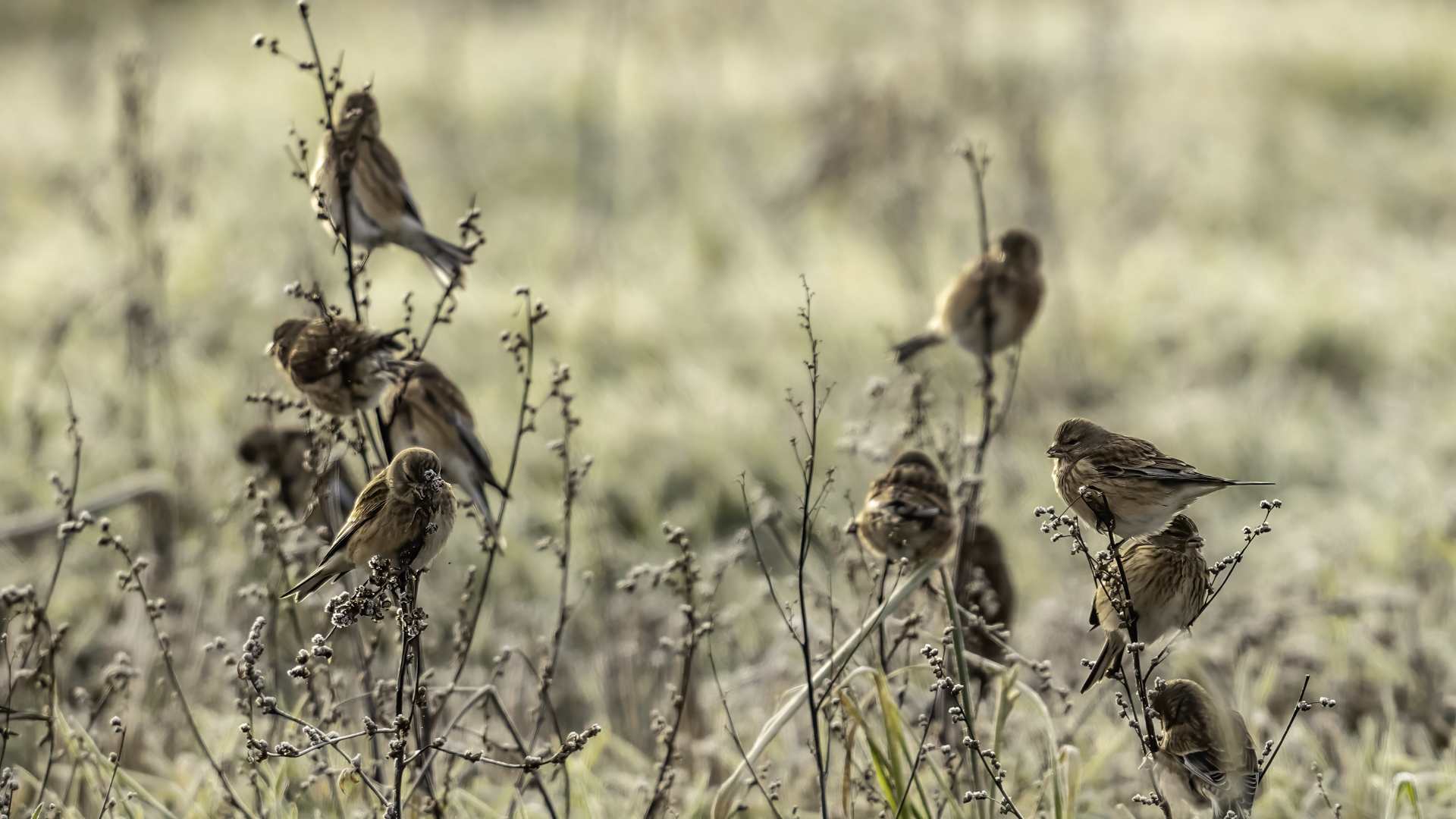 Na przestrzeni ostatnich lat powstało kilka przypadkowych zdjęć makolągwy. Te zdjęcia oraz te wykonane w grudniu 21’ były powodem do przebudowy galerii. Tym razem ptaki żerowały stadnie. Stado liczyło 60 osobników. Niestety stado było bardzo płochliwe i nerwowe- powodem był krogulec, który kilka razy próbował swoich sił łowieckich na moich oczach.