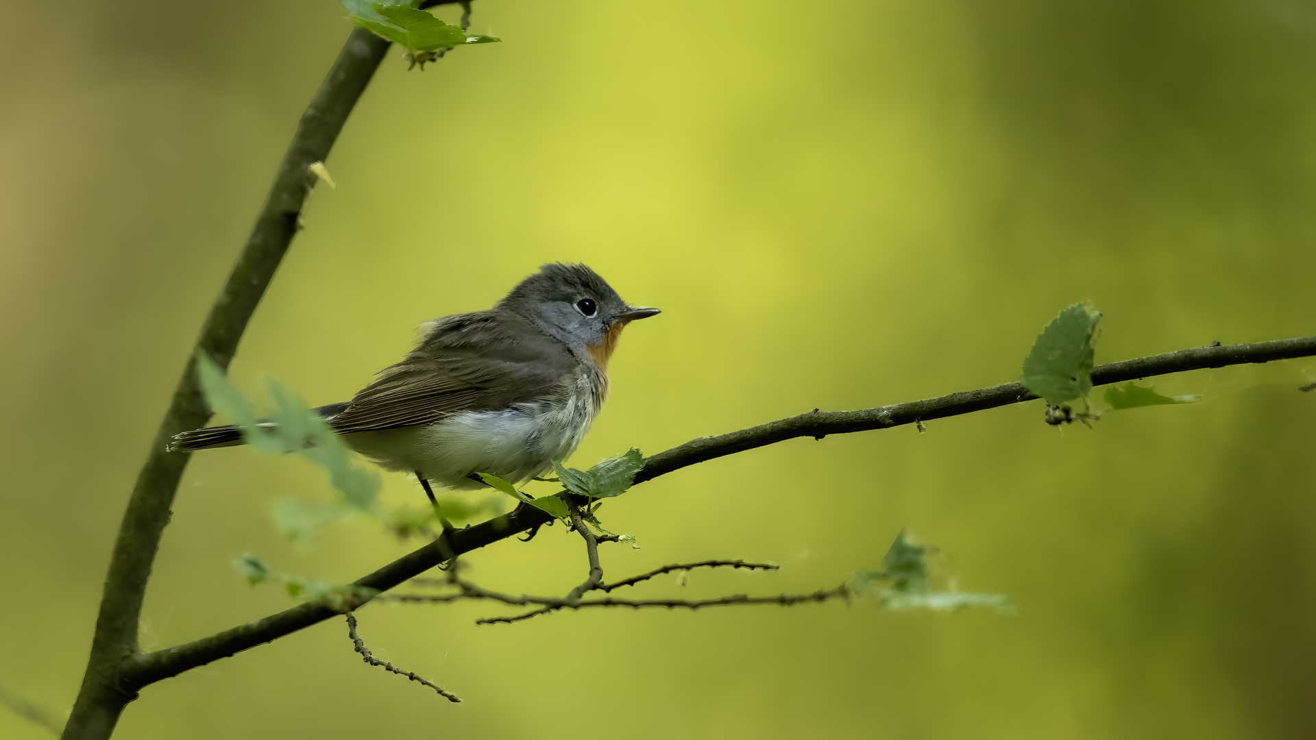 WRESZCIE! Wiele razy chodząc po lesie rozglądałem się za muchołówką małą i nic. Nie udało się zrobić zdjęcia, prócz jednego, dokumentacyjnego. Ta jego wartość dokumentacyjna była jednak na tyle kiepska, że zdjęcie nie doczekało się publikacji na mojej stronie. I tu znów wkroczył Kerem, chodząc po parku za kowalikami tureckimi wskazał miejsce w którym słyszał muchołówkę małą. Chwila wyczekiwania i udaje się zrobić pierwsze, ale jakże piękne zdjęcie tego urokliwego ptaszka. Ptaszka, bo masa ciała muchołówki małej to około 10 gramów, a rozpiętość skrzydeł to około 20 centymetrów. Jest więc znacznie mniejsza od naszego wróbla. Później udało się wykonać zdjęcie samicy muchołówki.