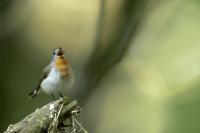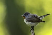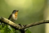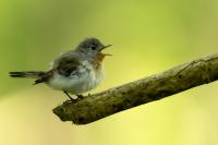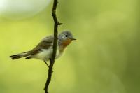 Wreszcie po 9 latach nastąpiło moje długo oczekiwane spotkanie z muchołówką małą. Galeria dotąd dokumentacyjna otrzymała status bardzo dobrej. Wreszcie bo mieć dokumentacyjną galerię tak pięknej muchołówki nie dawało mi powodów do zadowolenia, satysfakcji. Ze znalezieniem muchołówki nie ma problemu, pod warunkiem, że ptak zamieszkuje miejsce, gdzie się go wypatruje. W Wielkopolsce wiele razy nasłuchiwałem w lesie i niestety nie udało się znaleźć muchołówki małej. Samce muchołówki pięknie śpiewają i łatwo o identyfikację ich głosu i jej znalezienie. W lesie Krzysztofa, gospodarza warsztatów fotograficznych, można rzec, że jest istna kumulacja występowania tych ptaków. Wzdłuż leśnej drogi co 100-200 metrów słychać było śpiewającego samca. Powstało bardzo dobrej jakości nagranie głosu, które zostało dodane do galerii. Jak już ptaki są, to można powiedzieć, że nie ma problemu ze zrobieniem zdjęć. Niestety to nie prawda w przypadku muchołówki małej. Mimo pięknej pogody, w lesie trudno było o dobre warunki oświetleniowe i trzeba było użyć wysokich nastawień ISO, co nie dawało jeszcze komfortu z czasami naświetlania. Na szczęście spotkań było wiele i z setek zdjęć udało się wybrać te najciekawsze, dobrej jakości, które wreszcie pokazują cały urok muchołówki małej. Poswatała galeria o statusie bardzo dobrej z ścieżką dźwiękową śpiewu samca muchołówki małej- WRESZCIE!