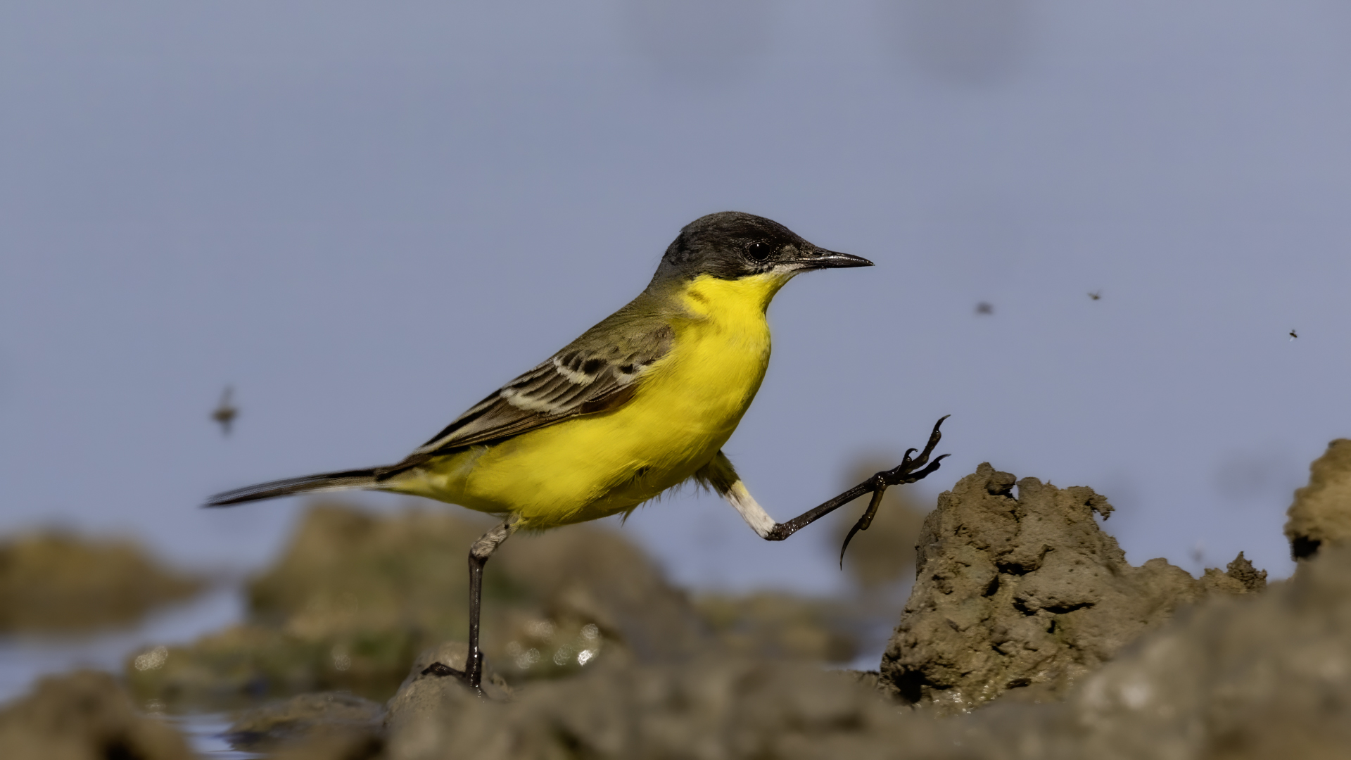 Oj, pliszek żółtych i siwych było kilkanaście w zasięgu wzroku podczas wyczekiwania za brodźcami, łęczakami, rokitniczkami i kto wie co tam jeszcze mogło się pojawić. Podchodziły tak blisko, że autofocus przestał ostrzyć. Najciekawsze ujęcie pliszki żółtej udało się wykonać podczas próby przegonienia znad brzegu młodego dzwońca. Pliszka w roli agresora, nie ma co, brzmi dość groteskowo, ale zobaczcie sami...